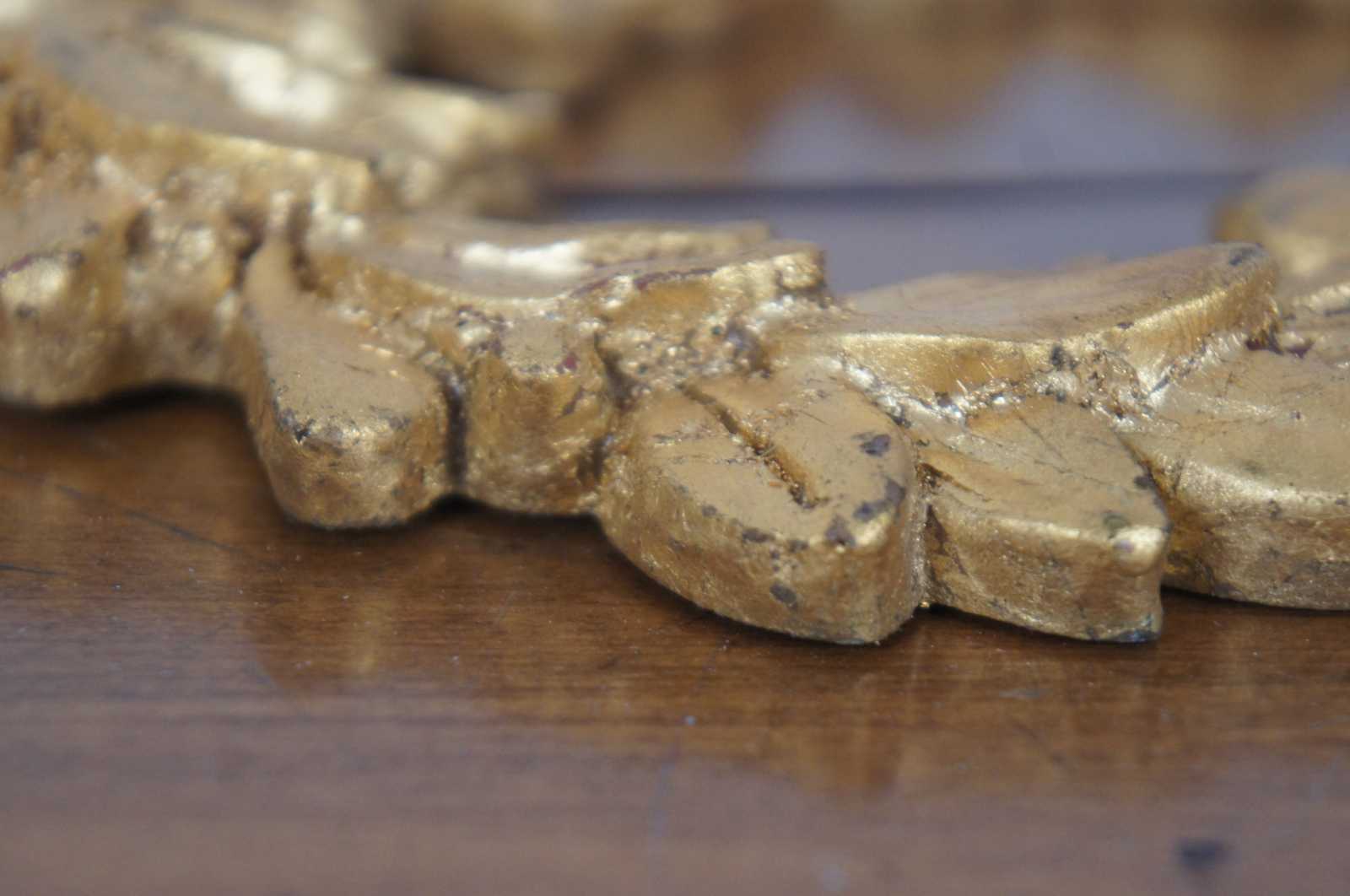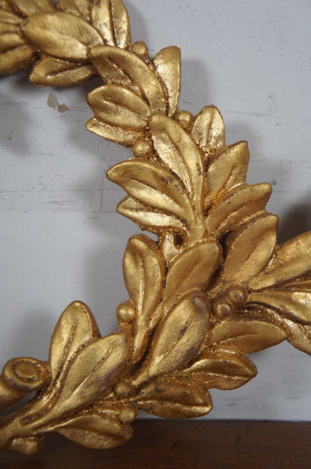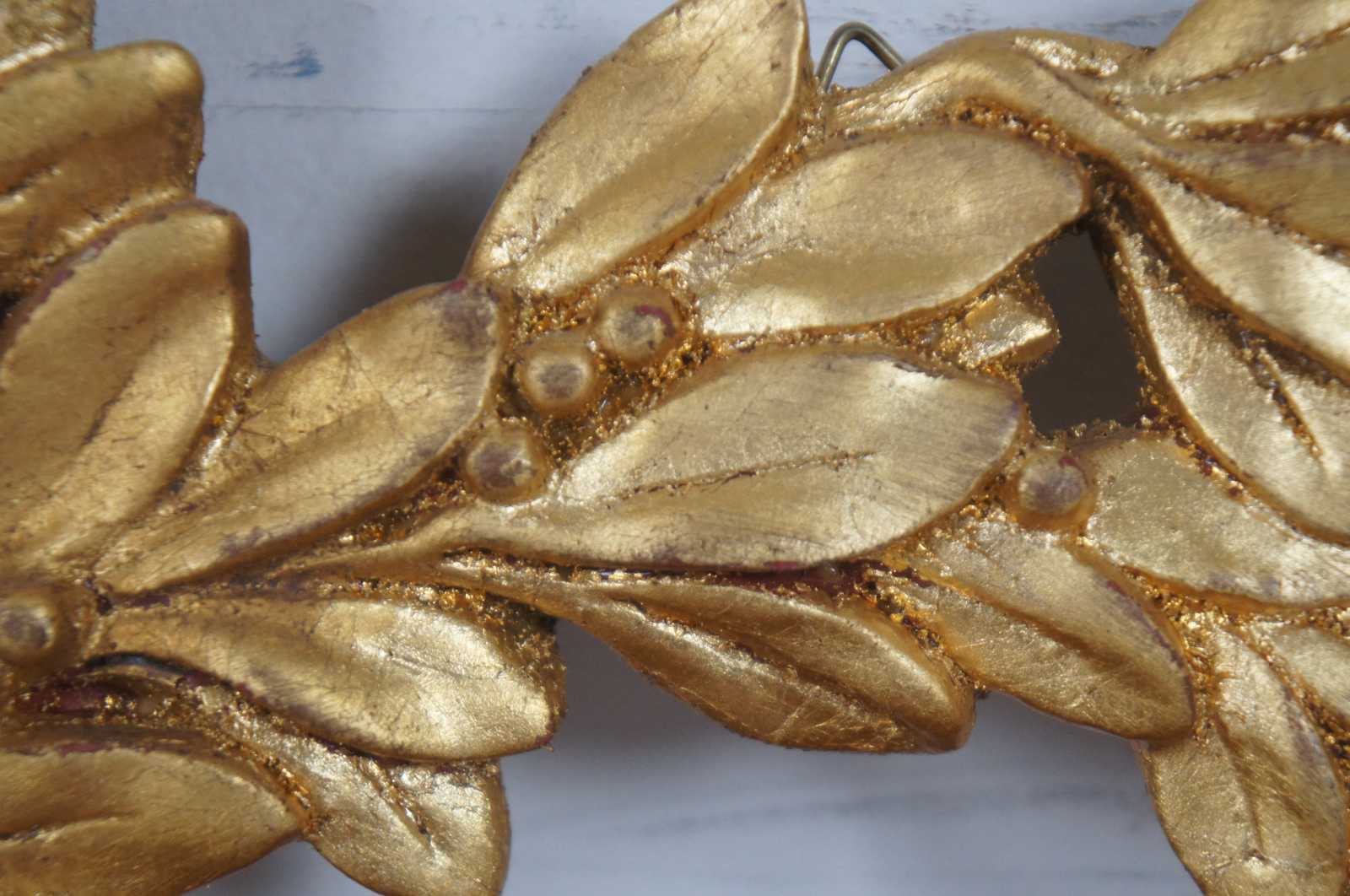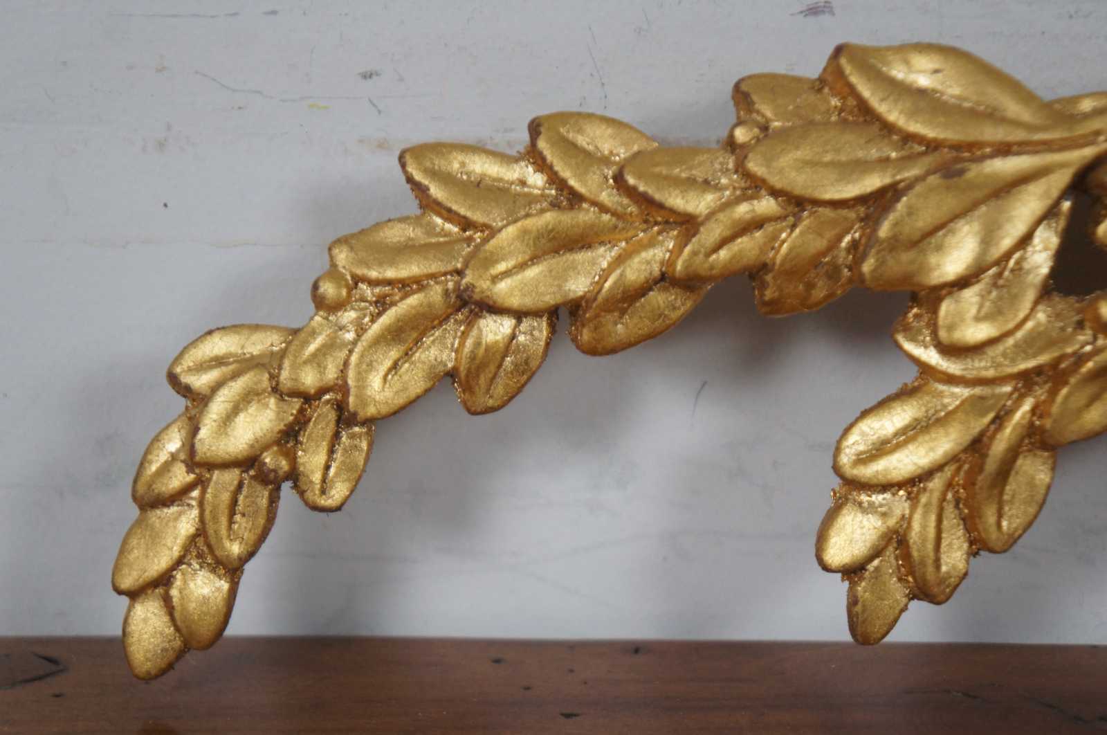 Elegant vintage Louis XVI Neoclassical style carved giltwood garland wall plaque or architectural pediment carved in the shape of sweeping laurel wreath branches.