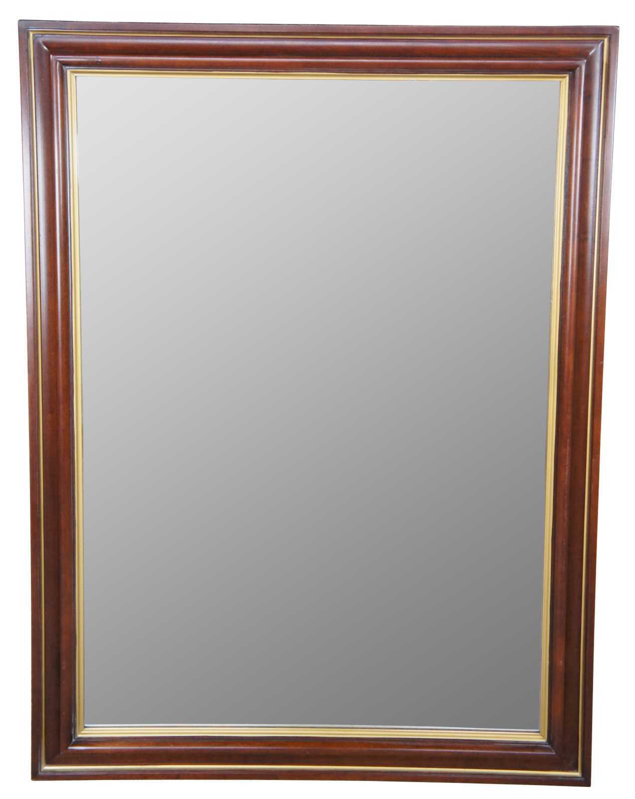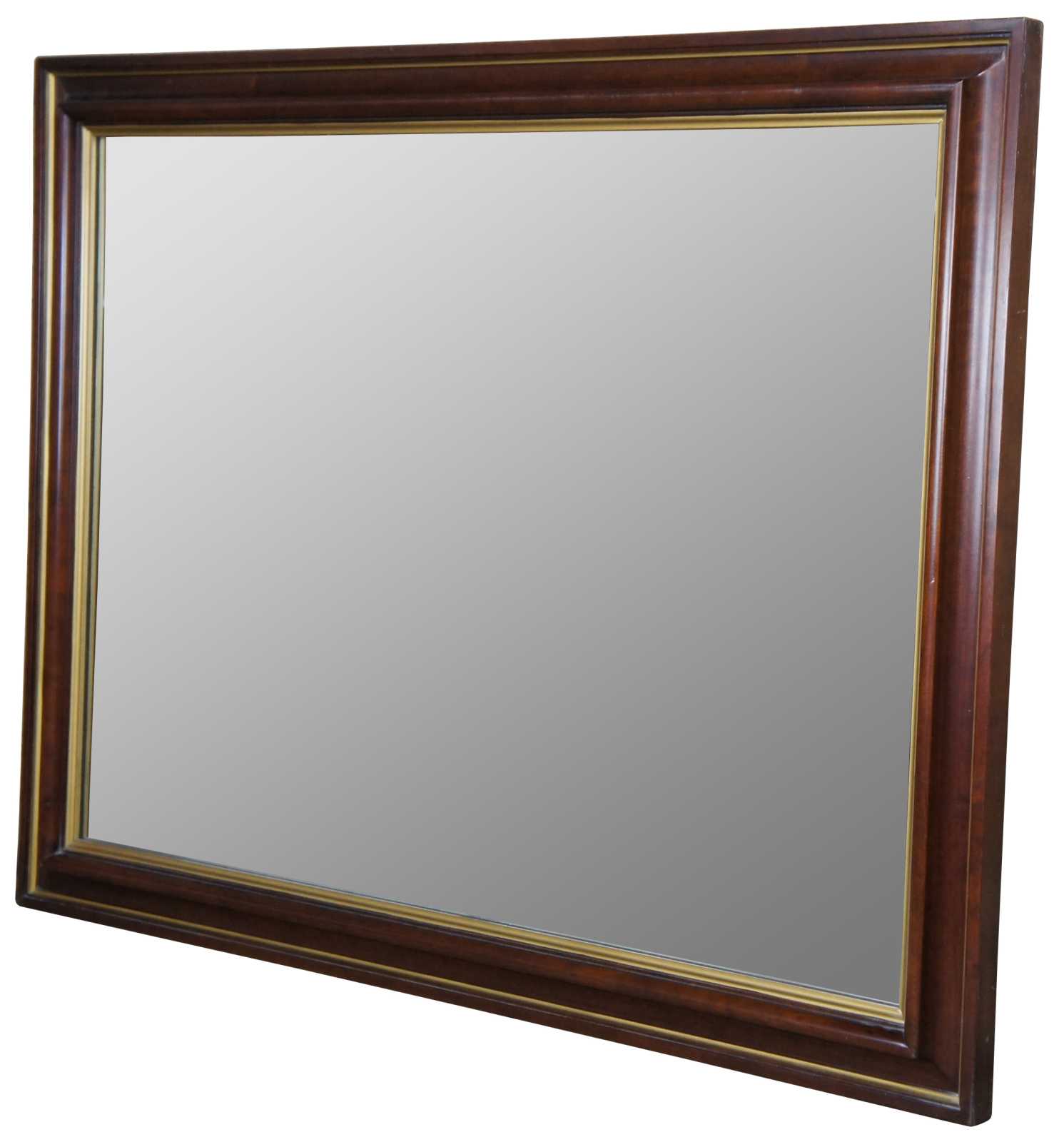 Vintage Statton Trutype Americana Old Towne dresser wall mirror, circa 1990s. Made of cherry featuring rectangular form with gold accents.