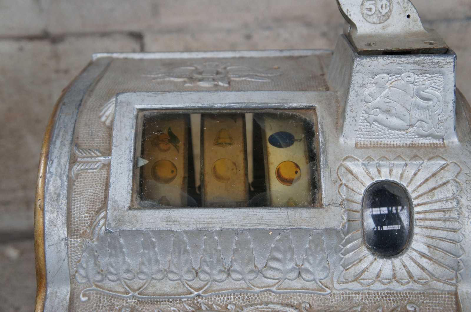 Antique Mills Gooseneck 5 Cent Slot Machine. For parts, not tested.