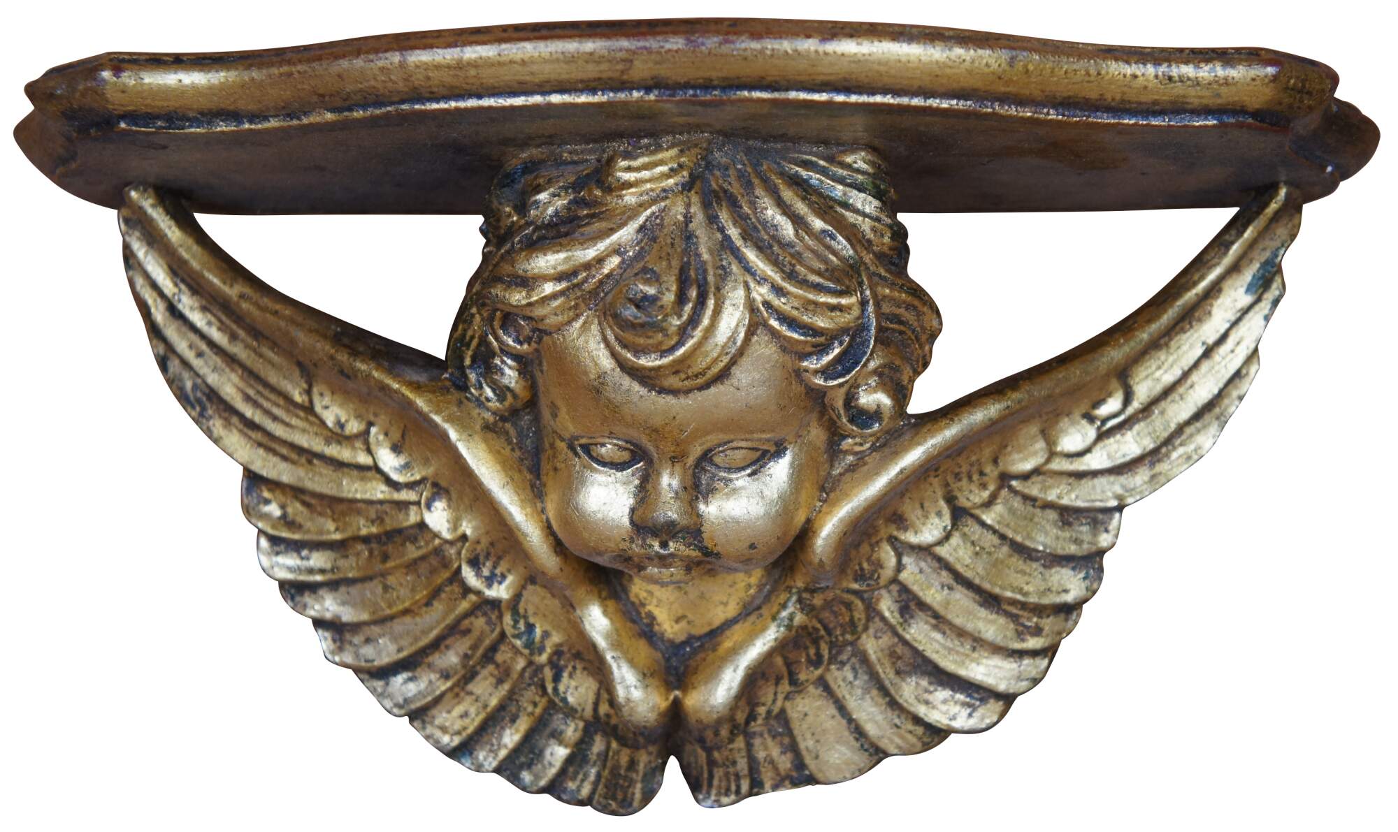Pair of two vintage cherub/angel/putti wall sconces or shelves painted gold, Made in Italy.