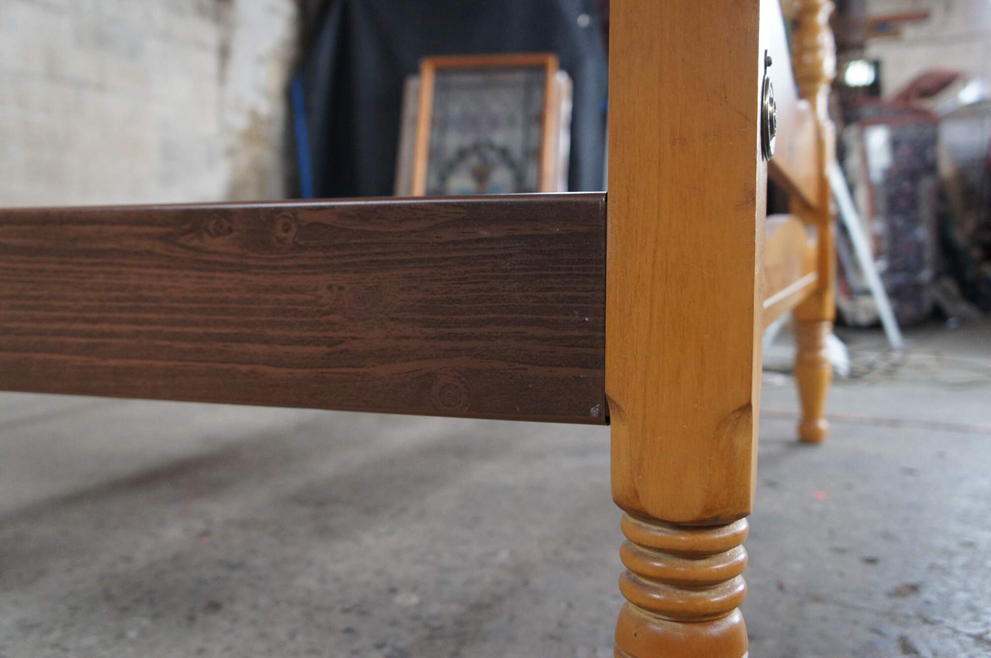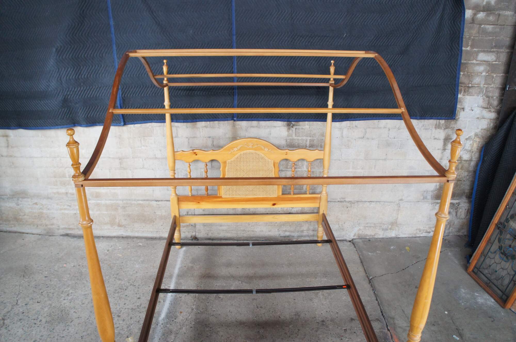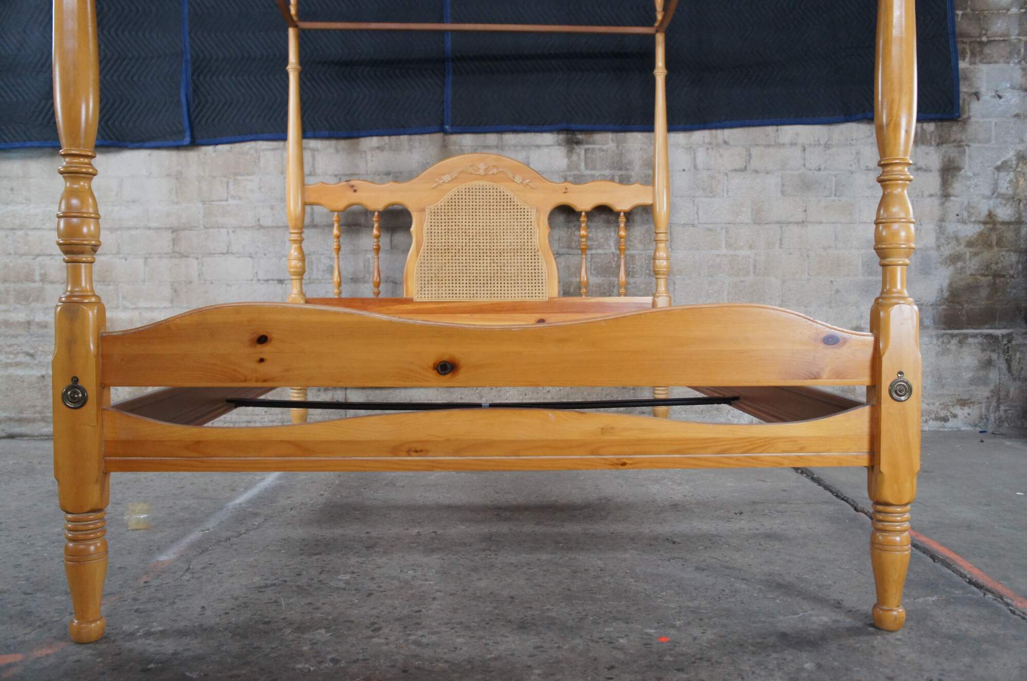 Henry Link Pine Canopy Bed, circa 1980s. Part of the Chardonay Collection. Features a spindled and cane back, larger turned posters with trophy finials and an arched canopy.