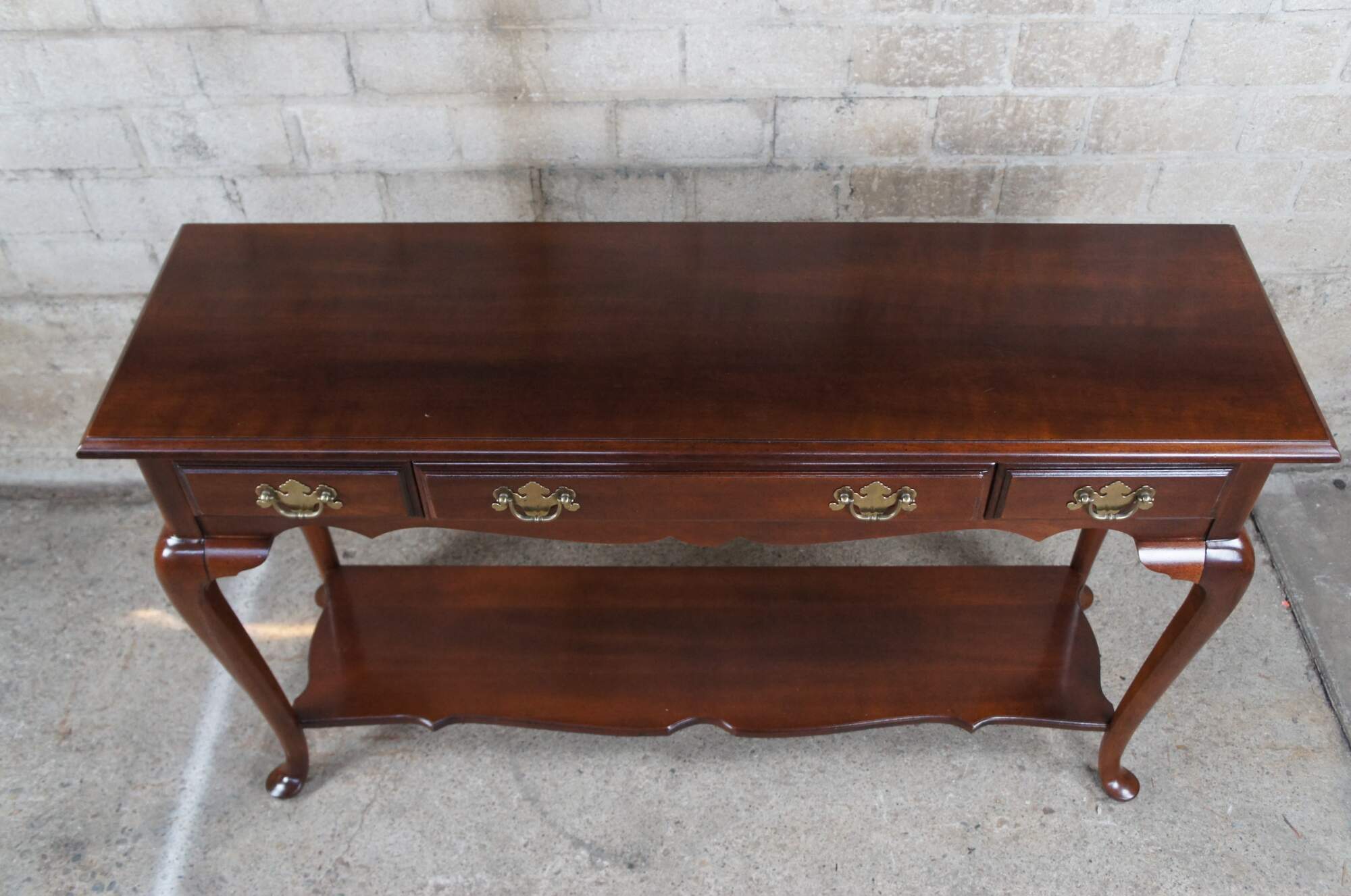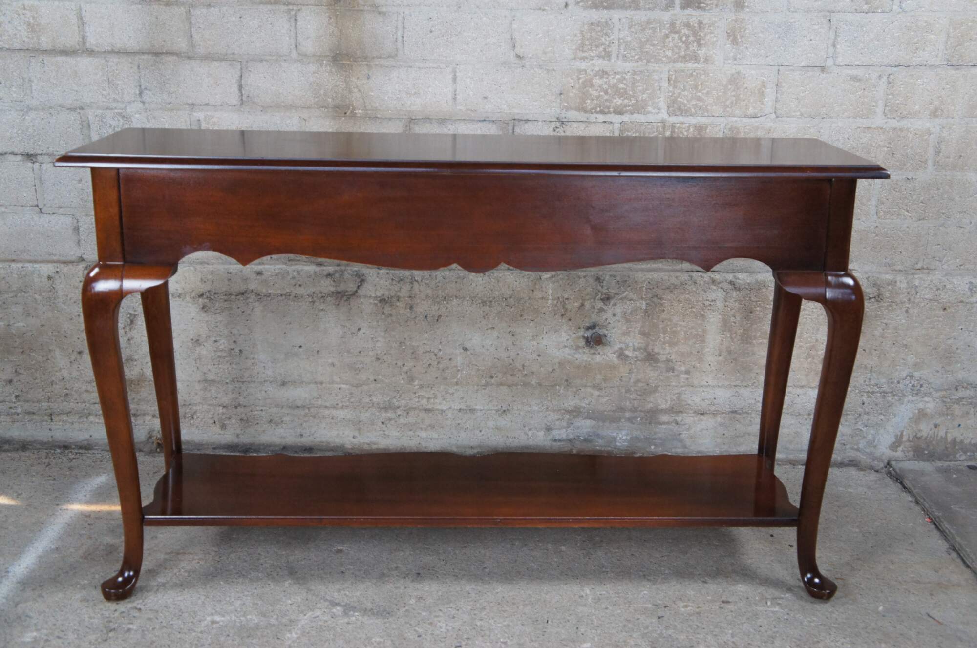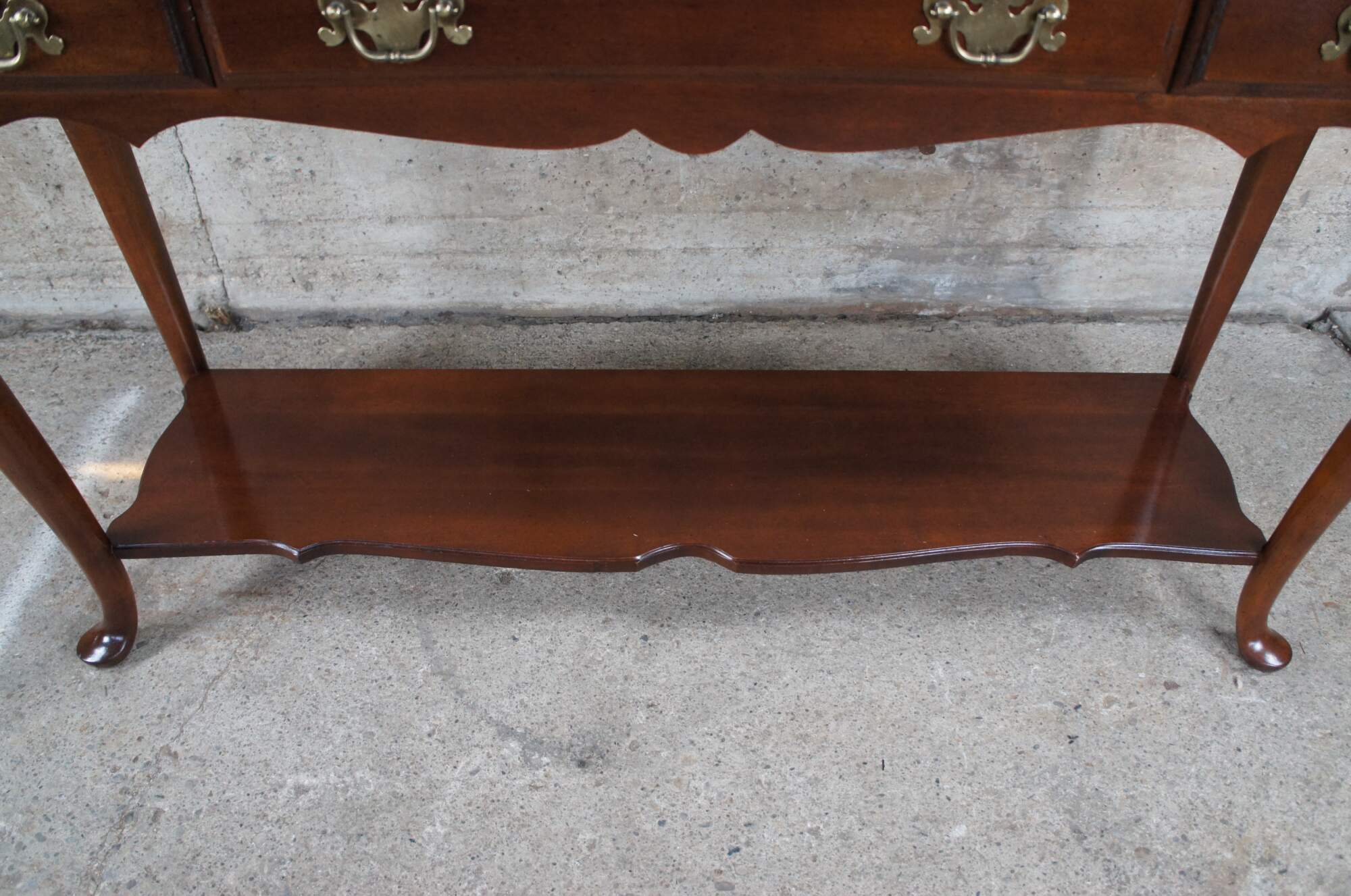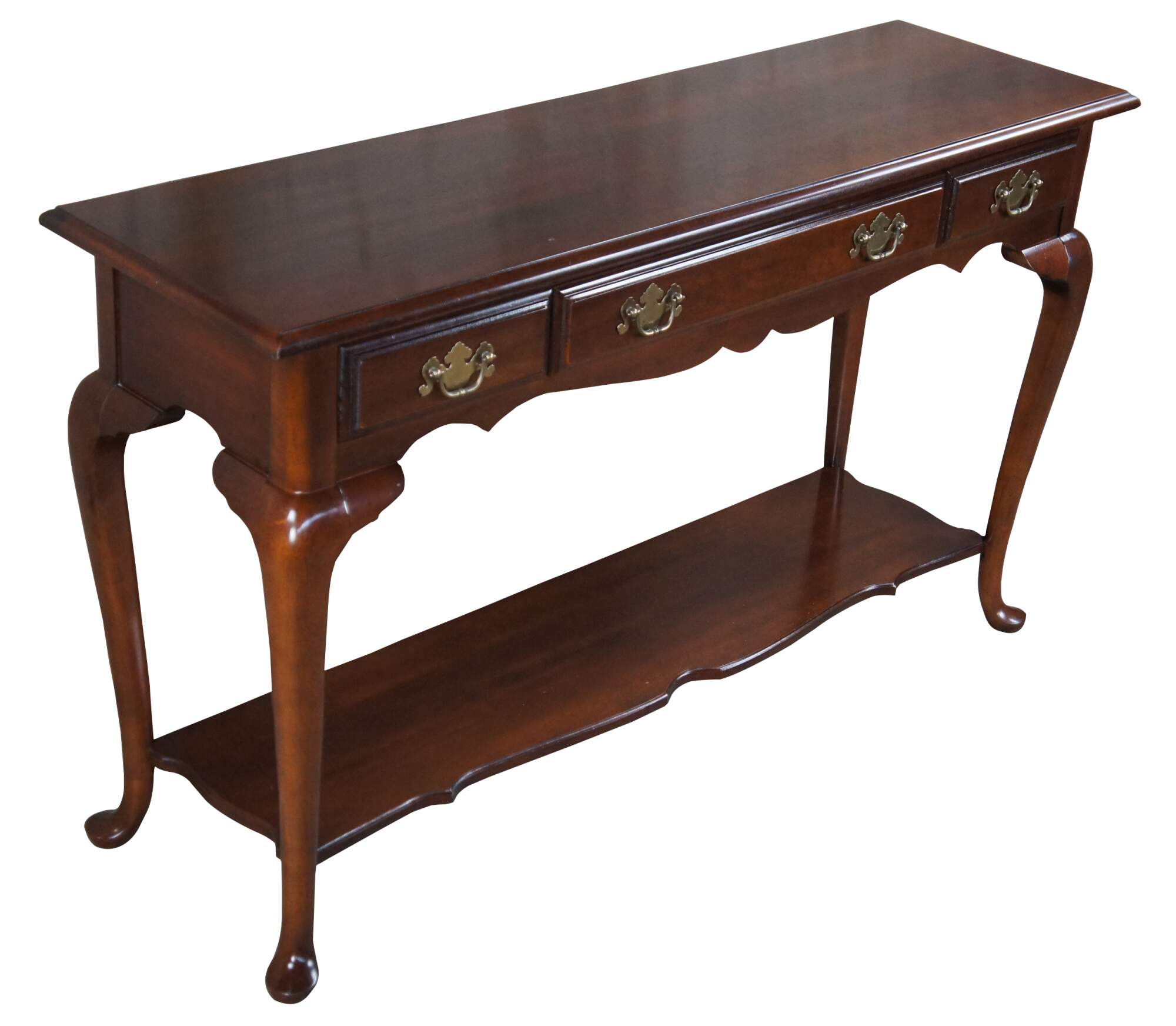 Vintage Bassett Furniture sofa table, sideboard or console. Made of cherry featuring Queen Anne styling with serpentine form an pad feet.