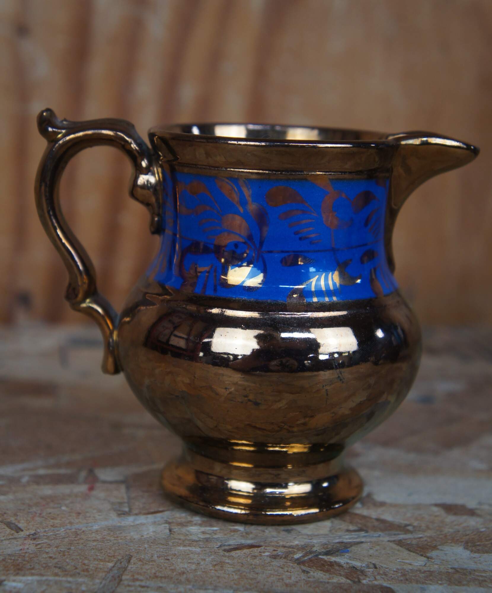 4 Antique 19th Century English Copper Lusterware Creamer Pitchers Jugs Bowl 5"