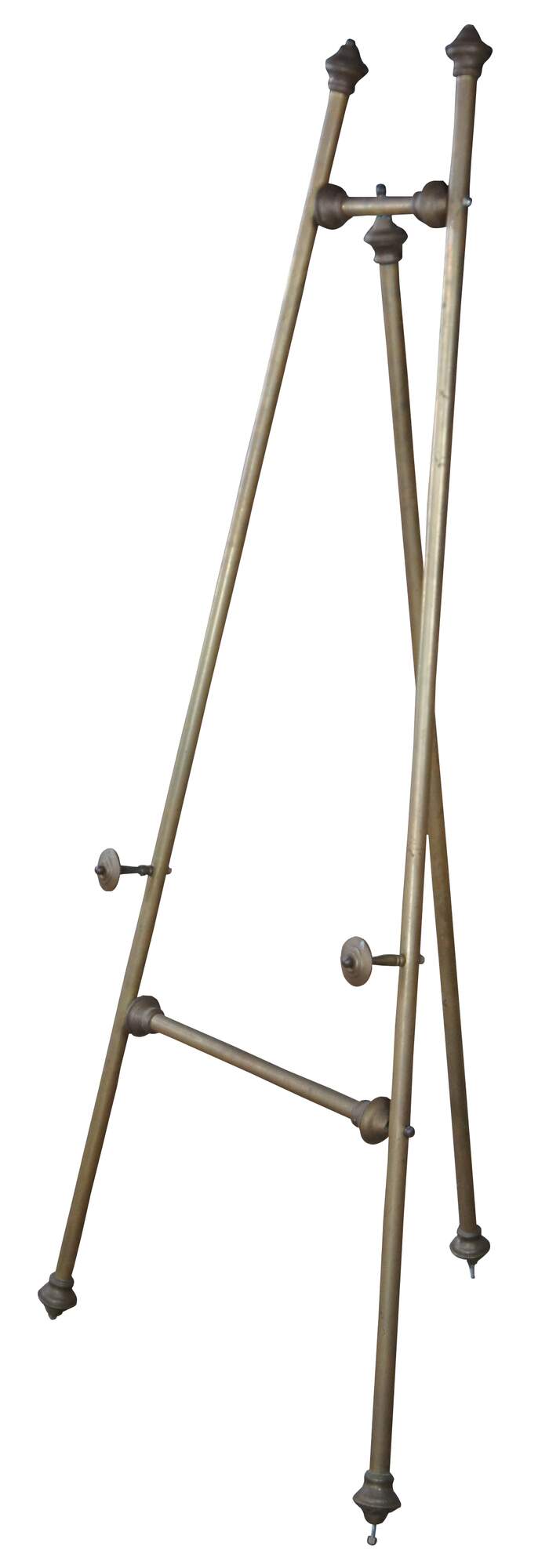 Antique Victorian baroque brass art / painting display easel featuring ornate finial accents.
