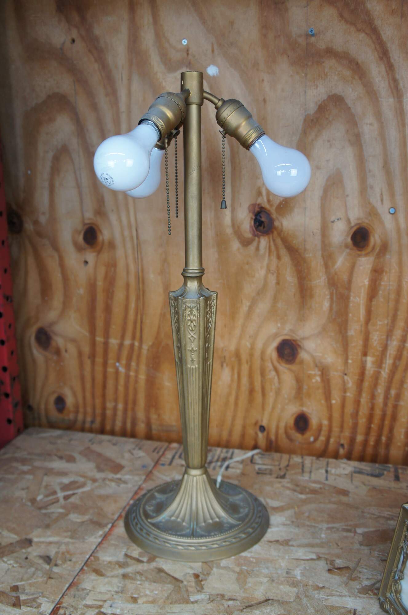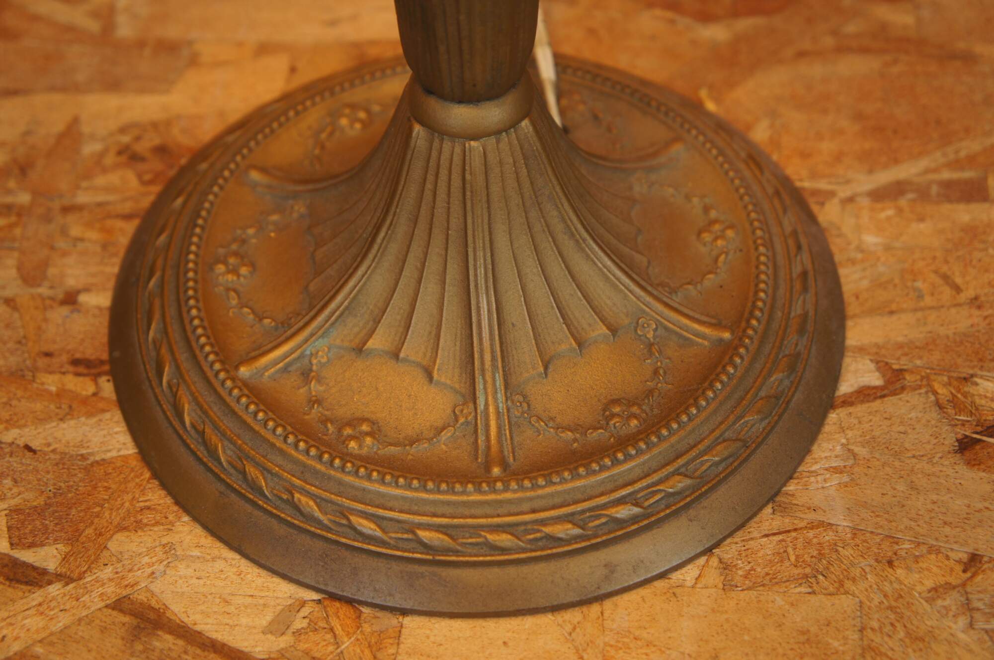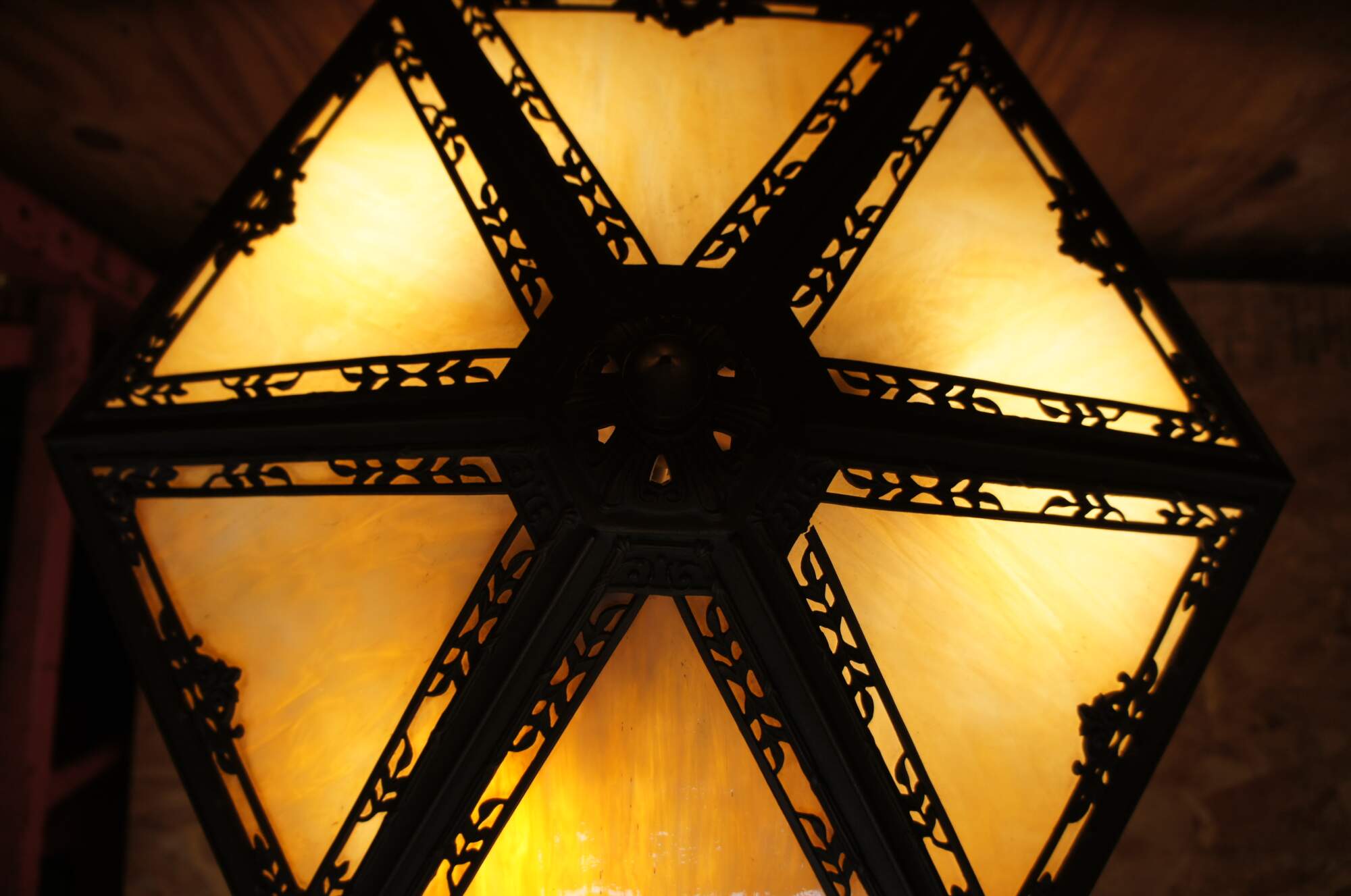 Good antique condition, wear and distressing commensurate with age and use, working but cord could be replaced / melted, separation on upper trellis, wear to finish.