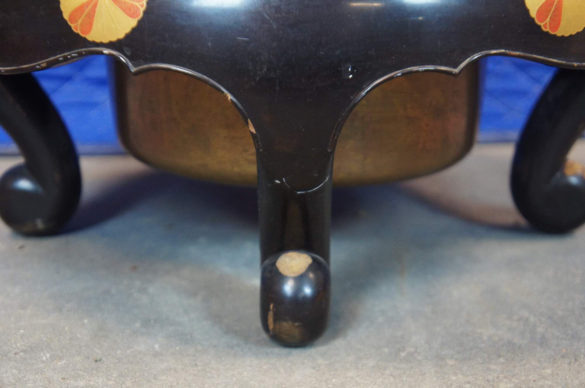 Good Overall - Spots/gentle wear to lacquer; tarnish/oxidation to brass; some chipping/small cracks to lacquer on legs