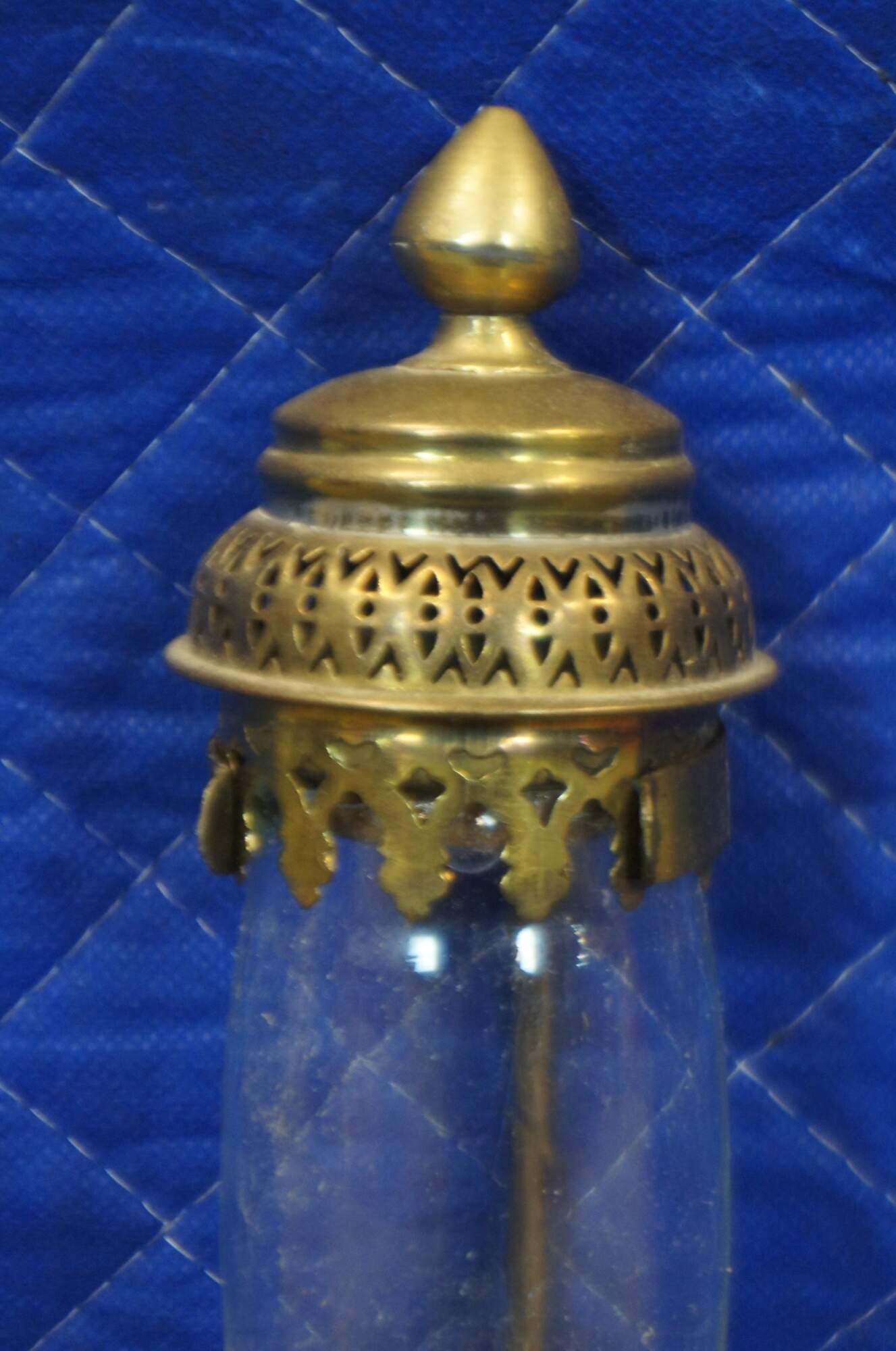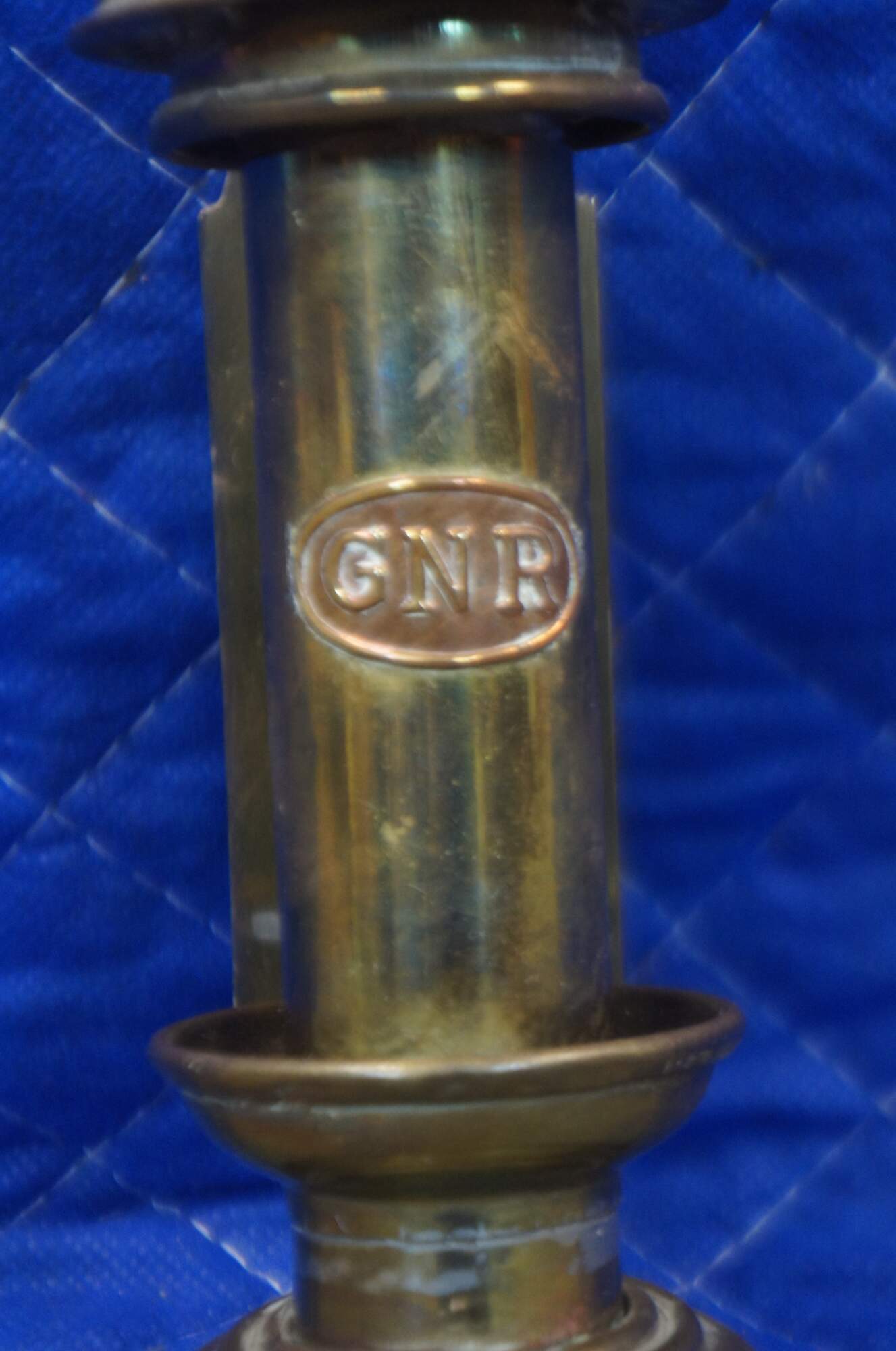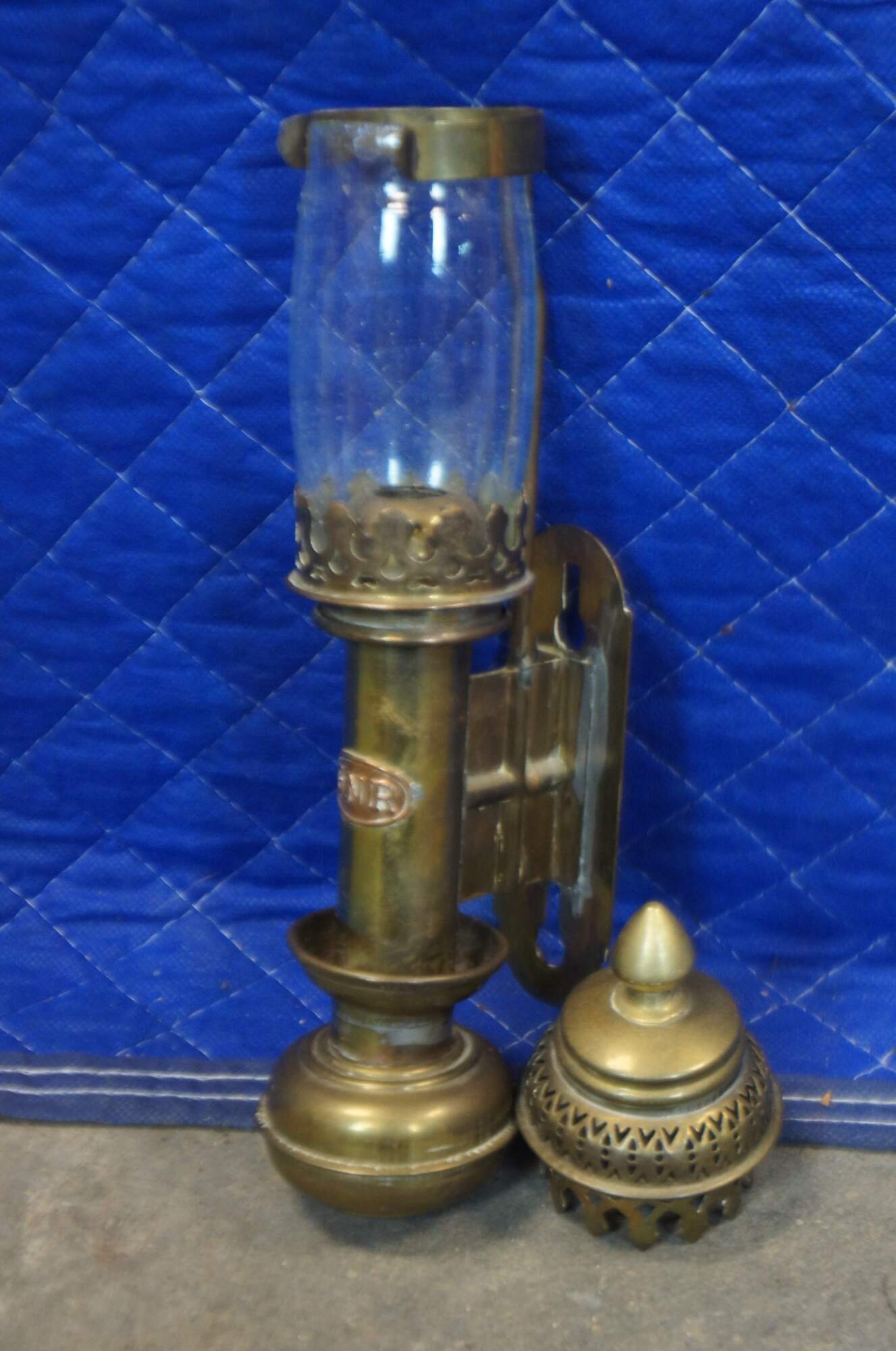 Antique brass and glass GNR Great Northern Railway candle lit train carriage lamp, light or lantern sconce.