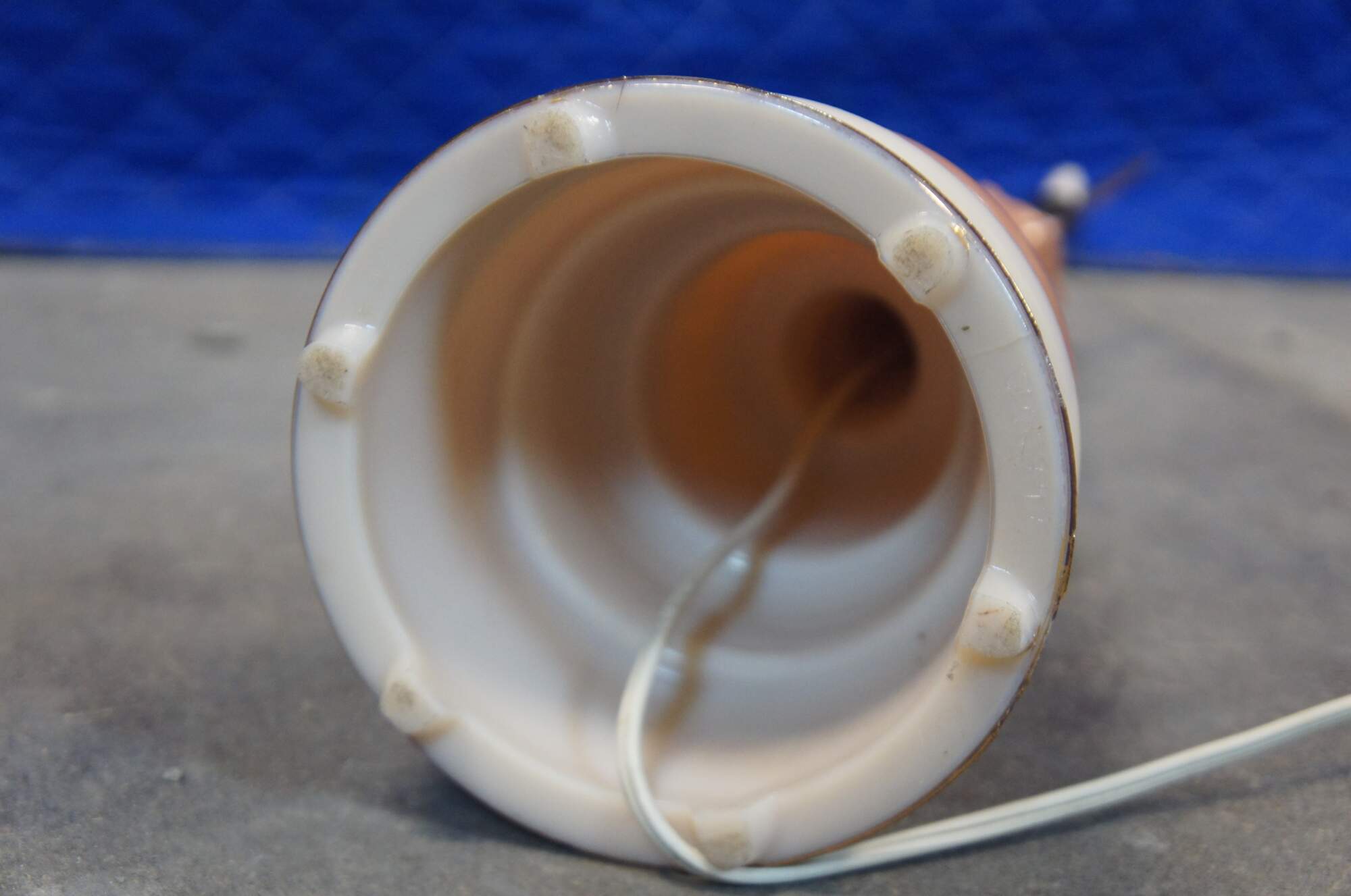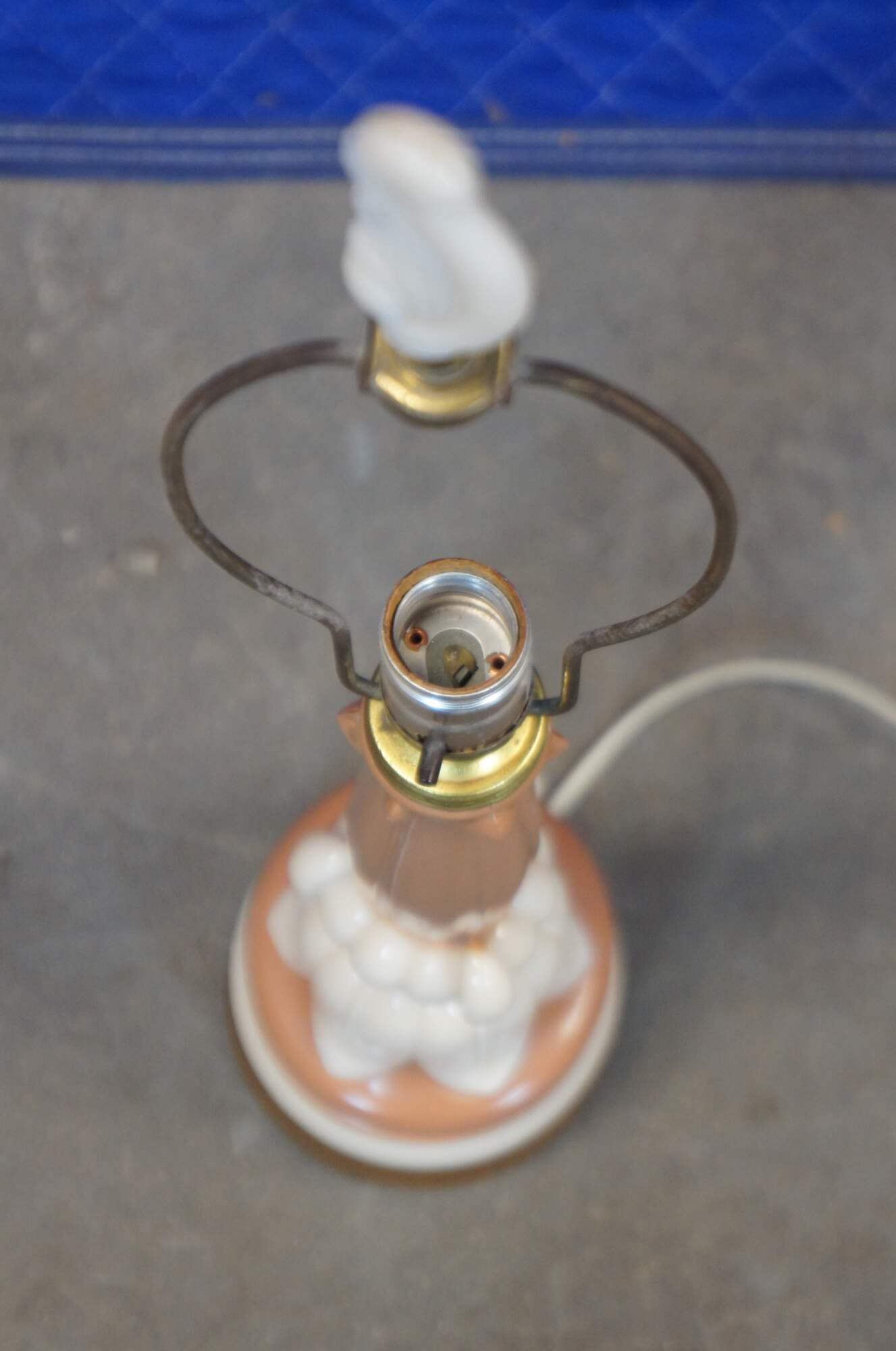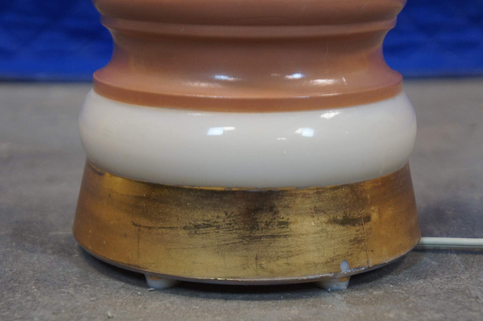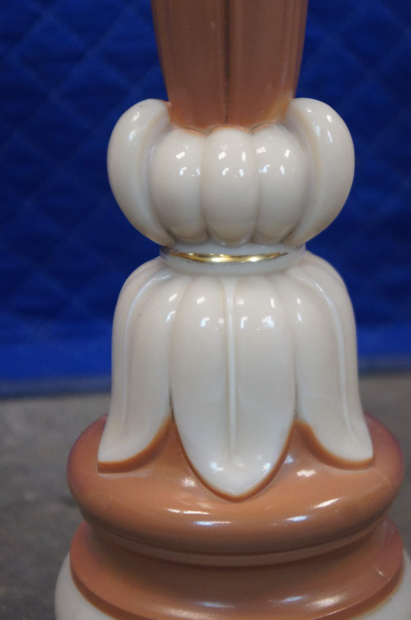 Antique Aladdin Alacite table lamp with an art deco floral design in milk white and dusty rose.