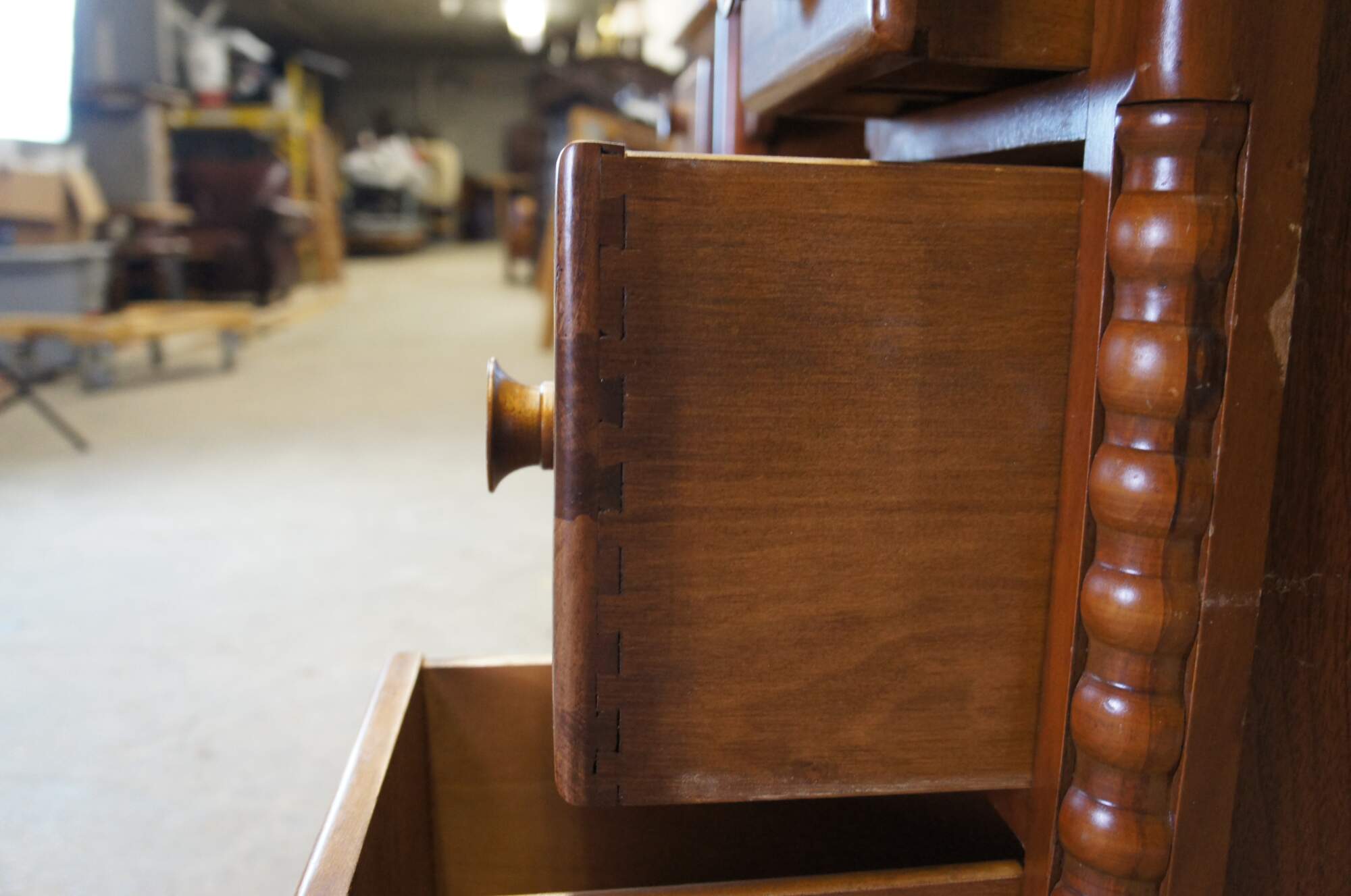 Good vintage condition, wear and distressing commensurate with age and use, marking, holes in backsplash where mirror was once attached.