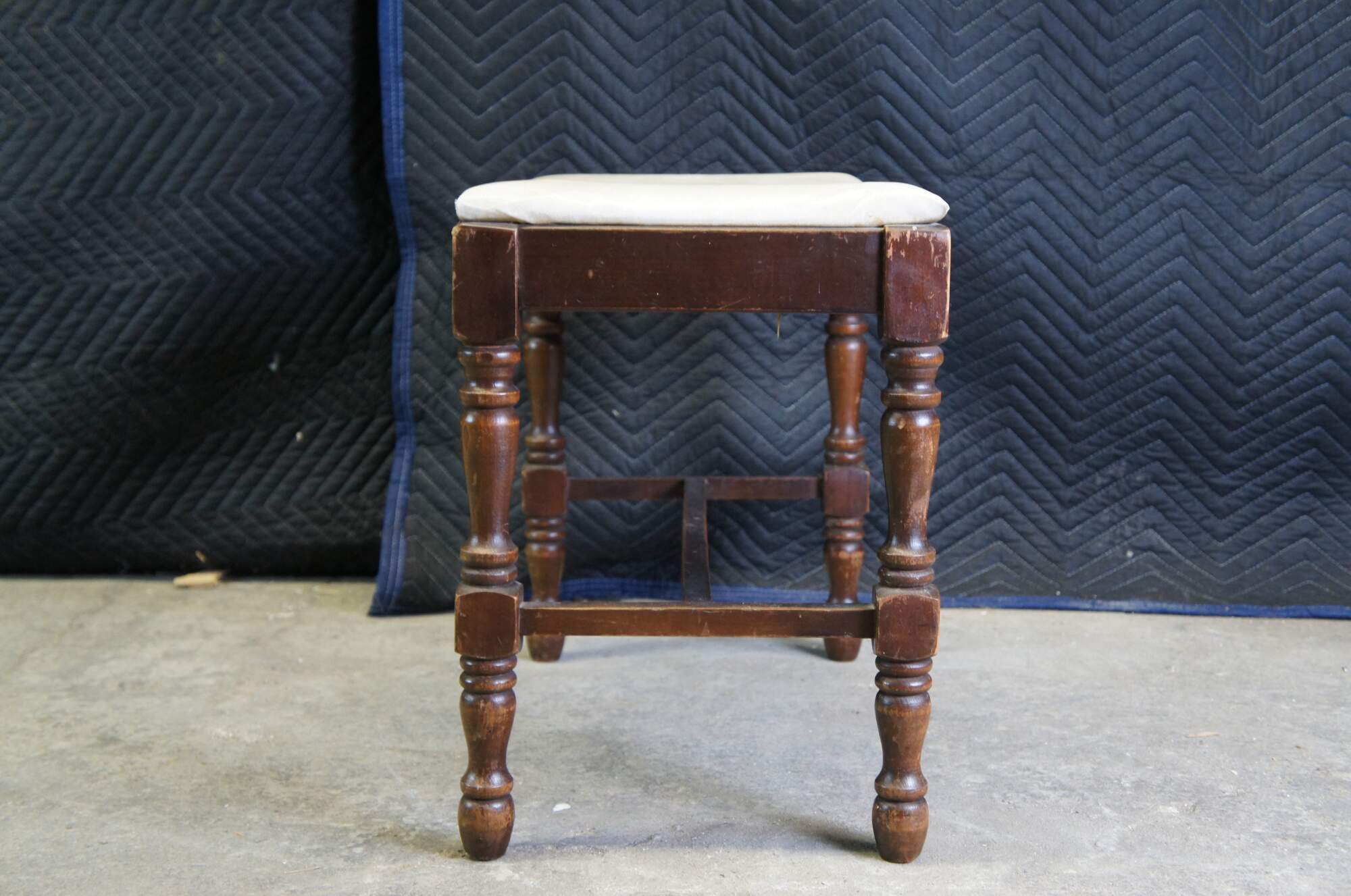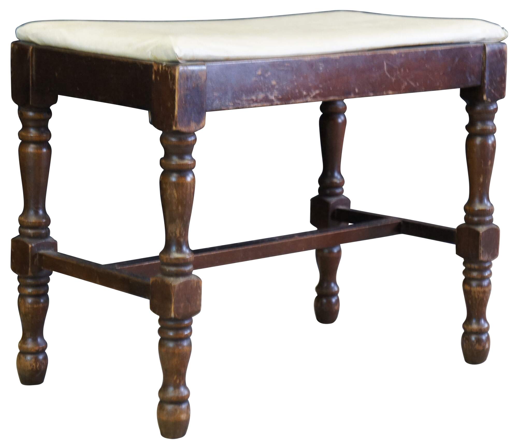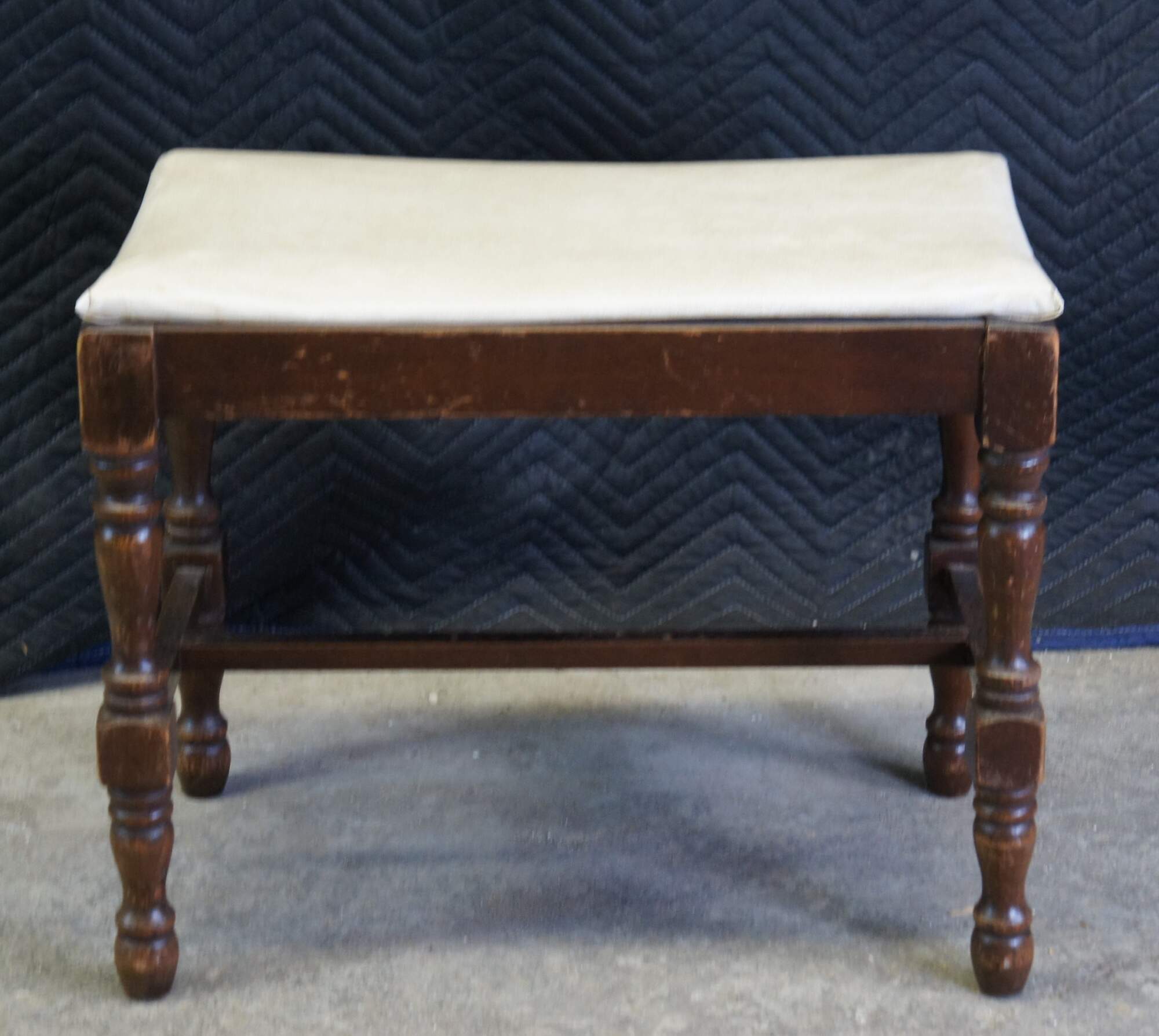 William and Mary Bench or foot rest, circa first half 20th century. Made of walnut featuring turned legs connected with H stretcher and upholstered seat.