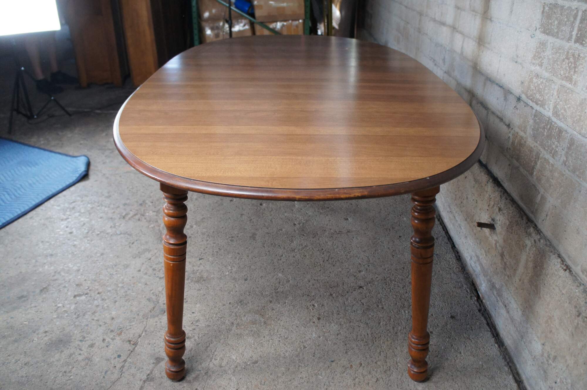 Tell City Chair Company Hard Rock Maple Dining Table, Circa 1960s. Features an oval form with colonial styling and two leaves for extension.