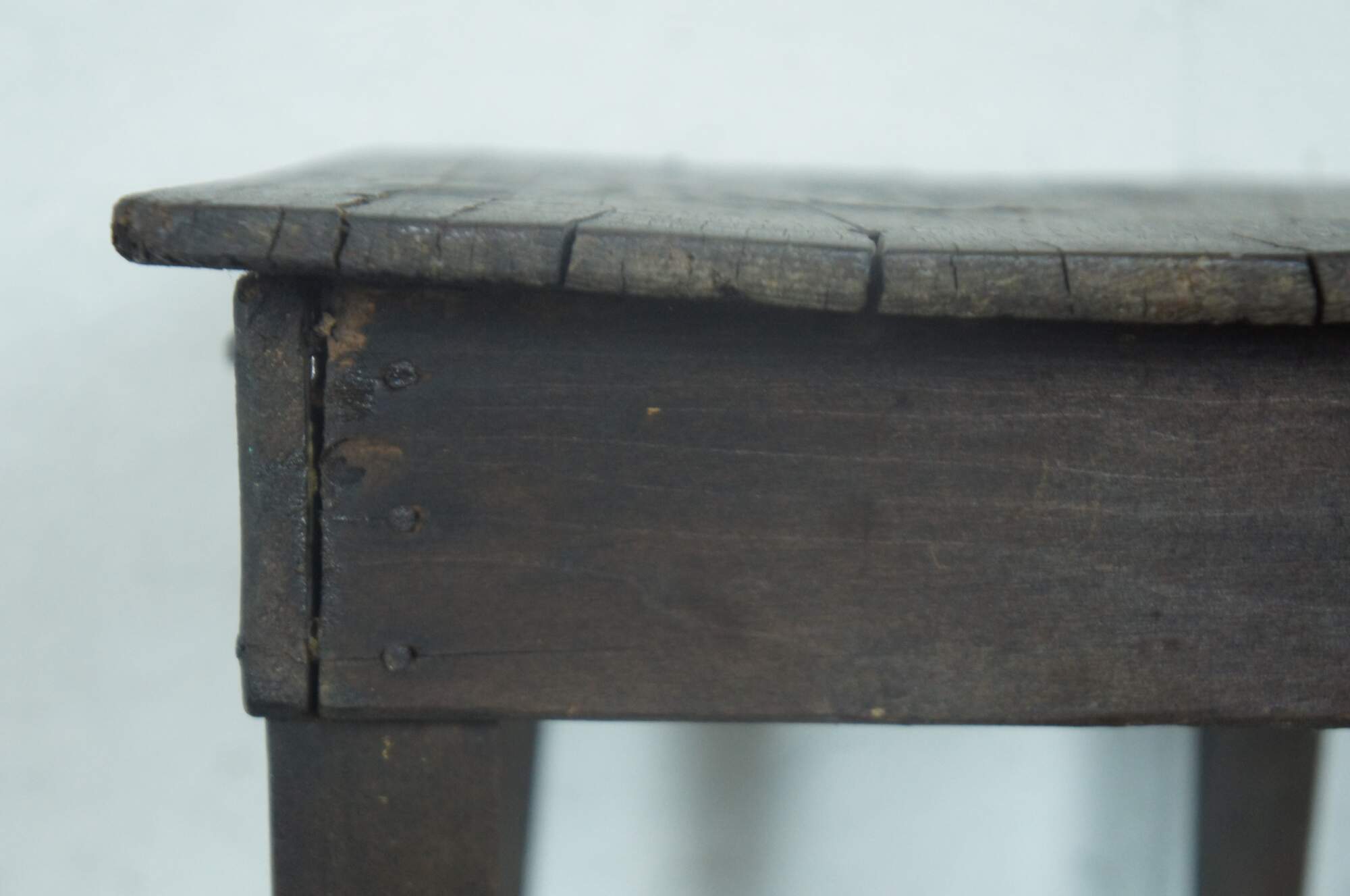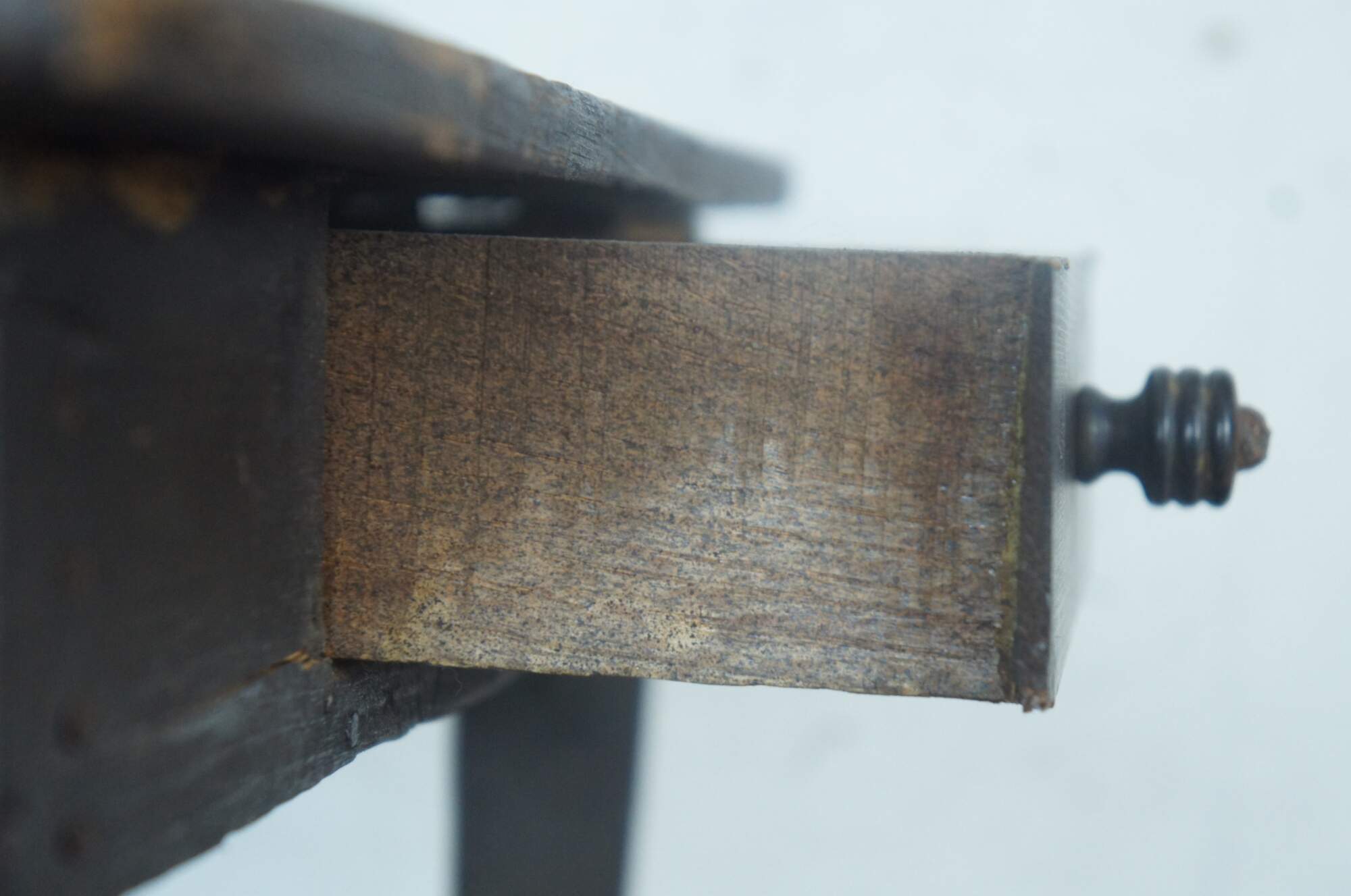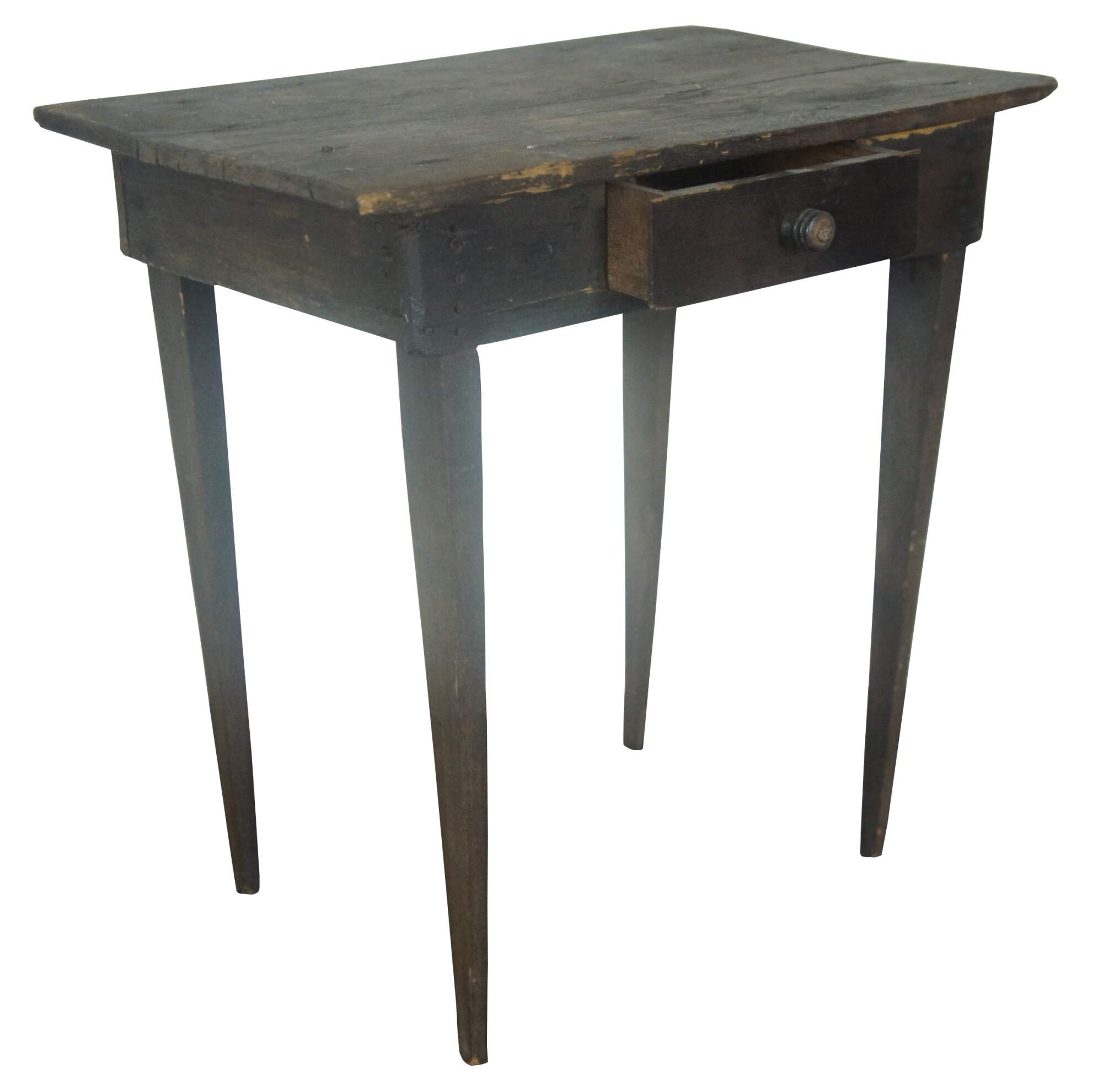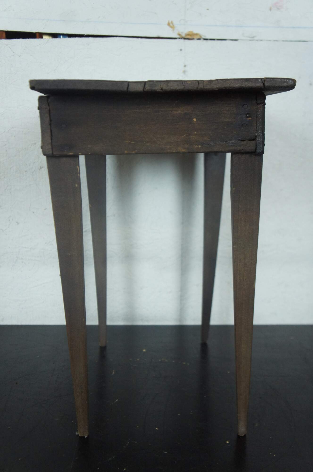 Antique Early American child sized writing desk or table with one drawer and tapered legs.