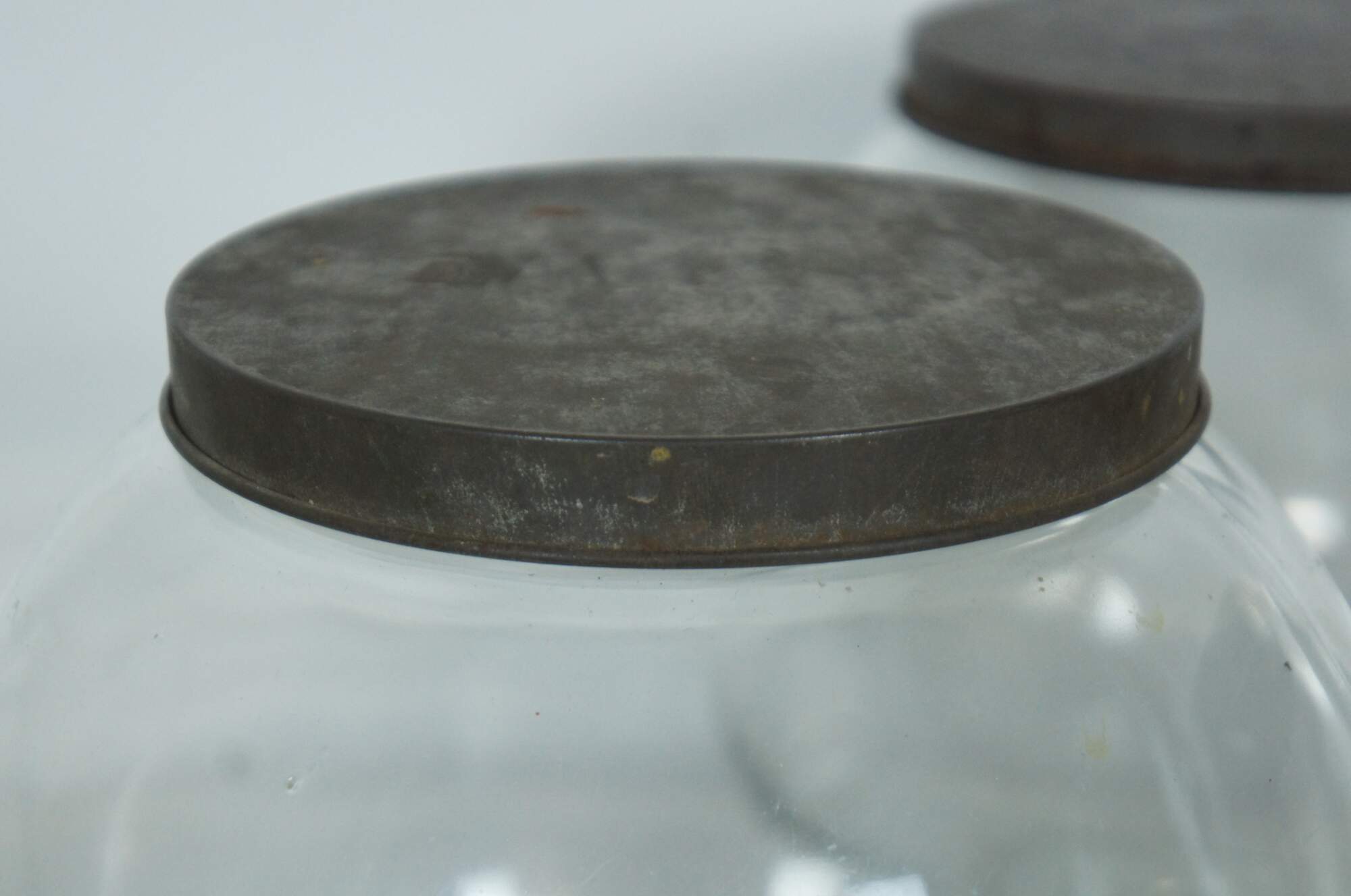 Good Overall – Tarnish and rust to lids and scoops , some light scrapes and spots to jars