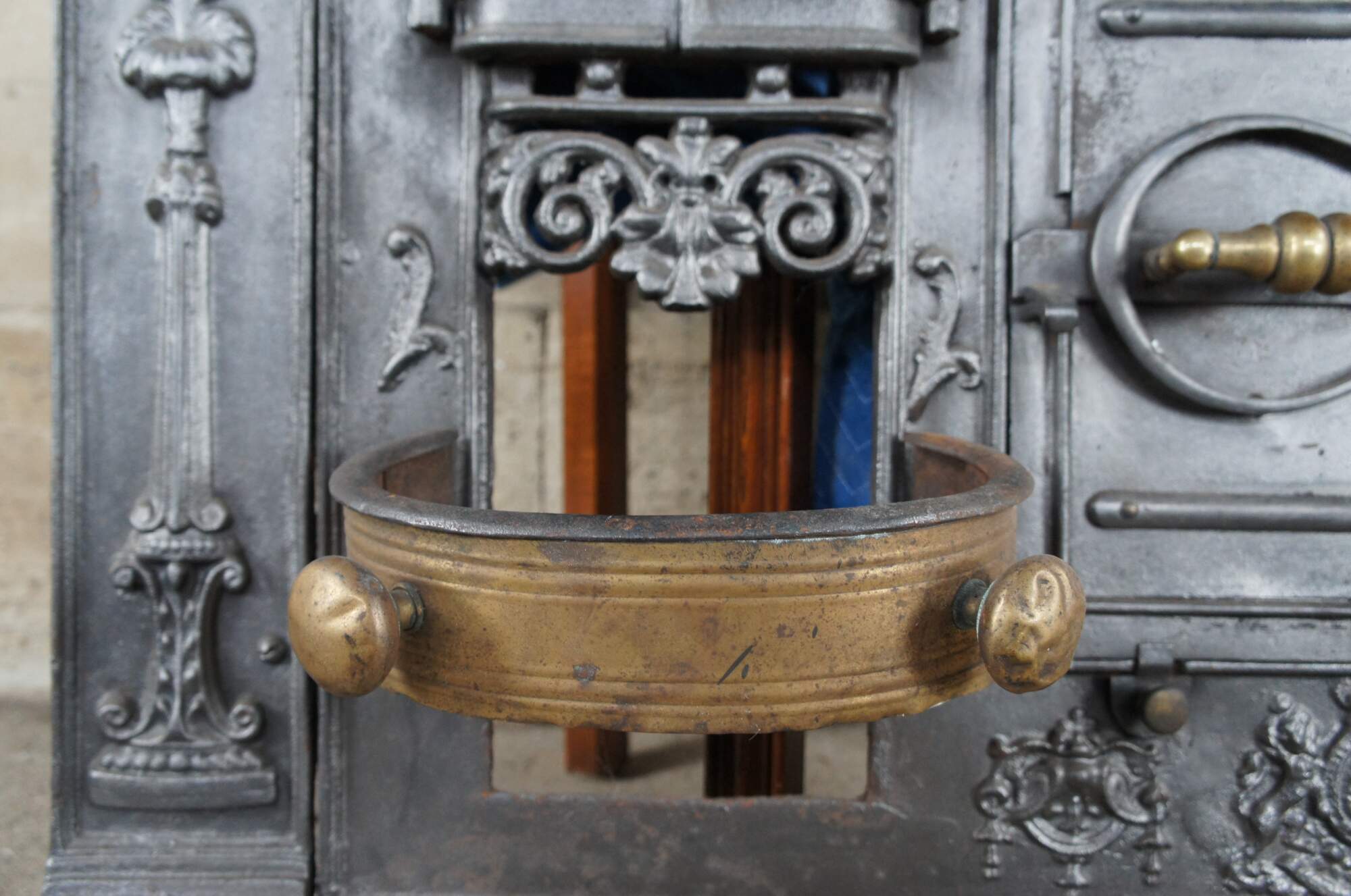 Antique 1840s Cornish WmF Radmore & Co Makers Truro range cooker or fireplace stove featuring brass and cast iron construction