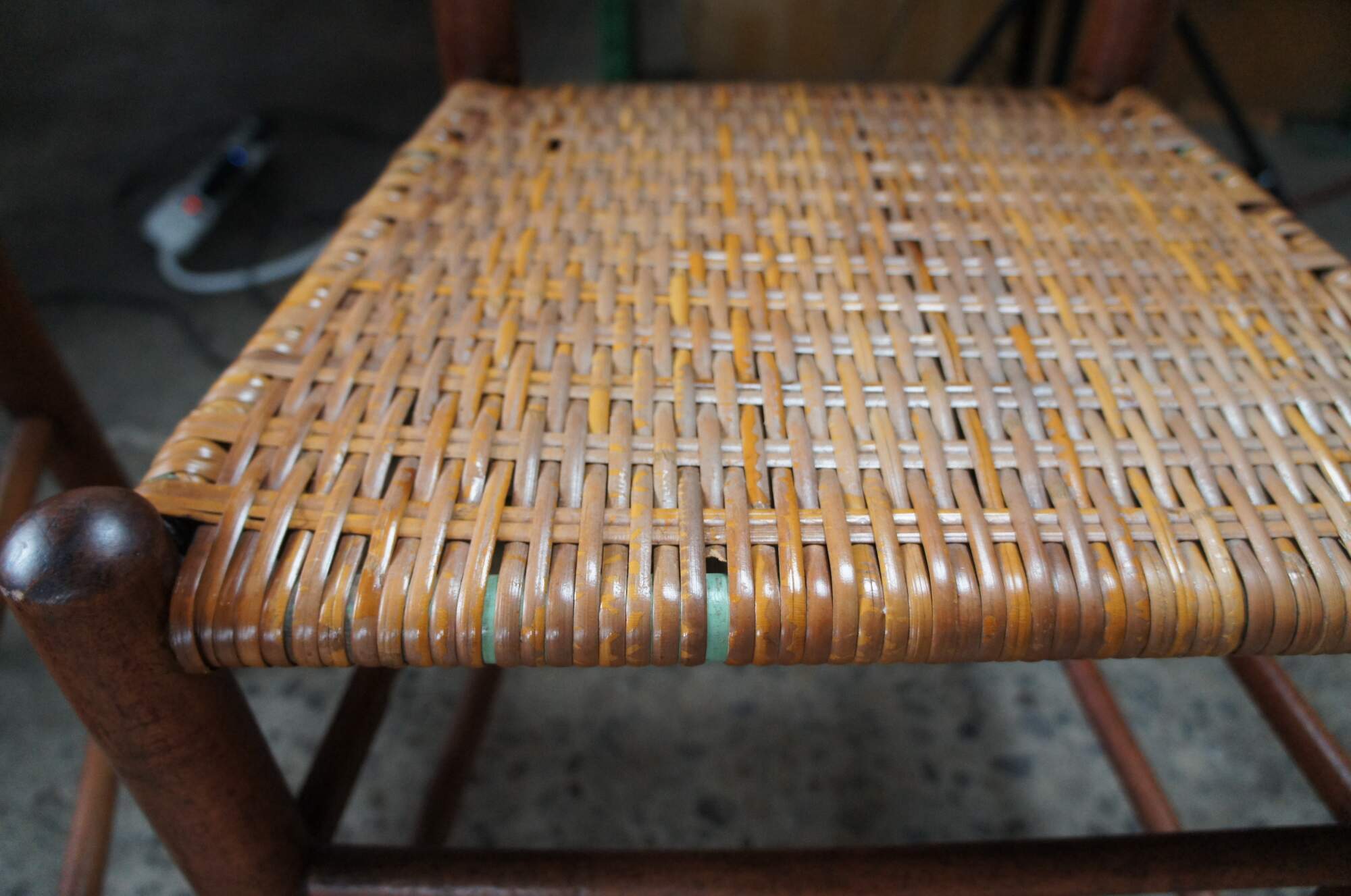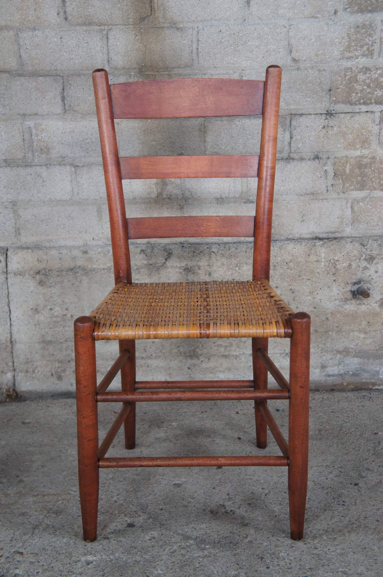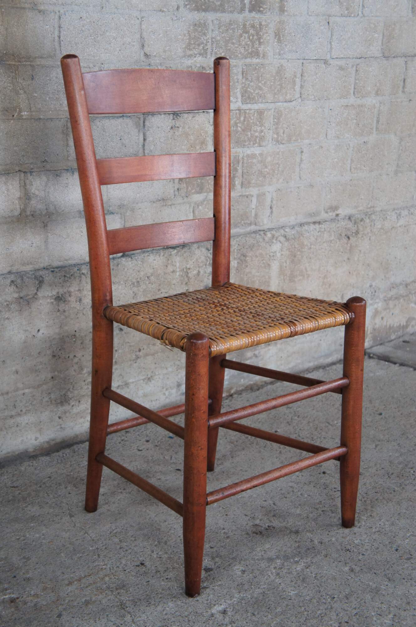 4 solid maple shaker dining chairs. Feature a ladderback and reed woven seats.