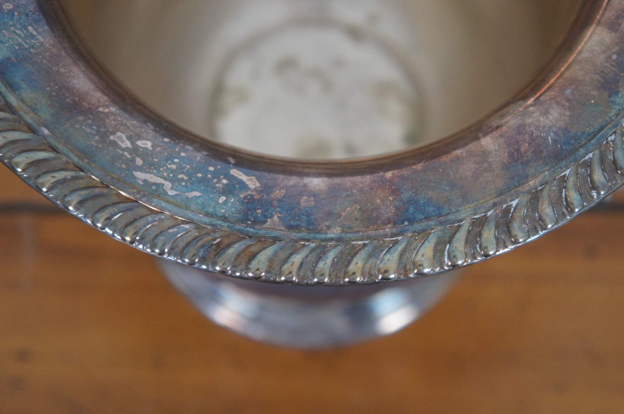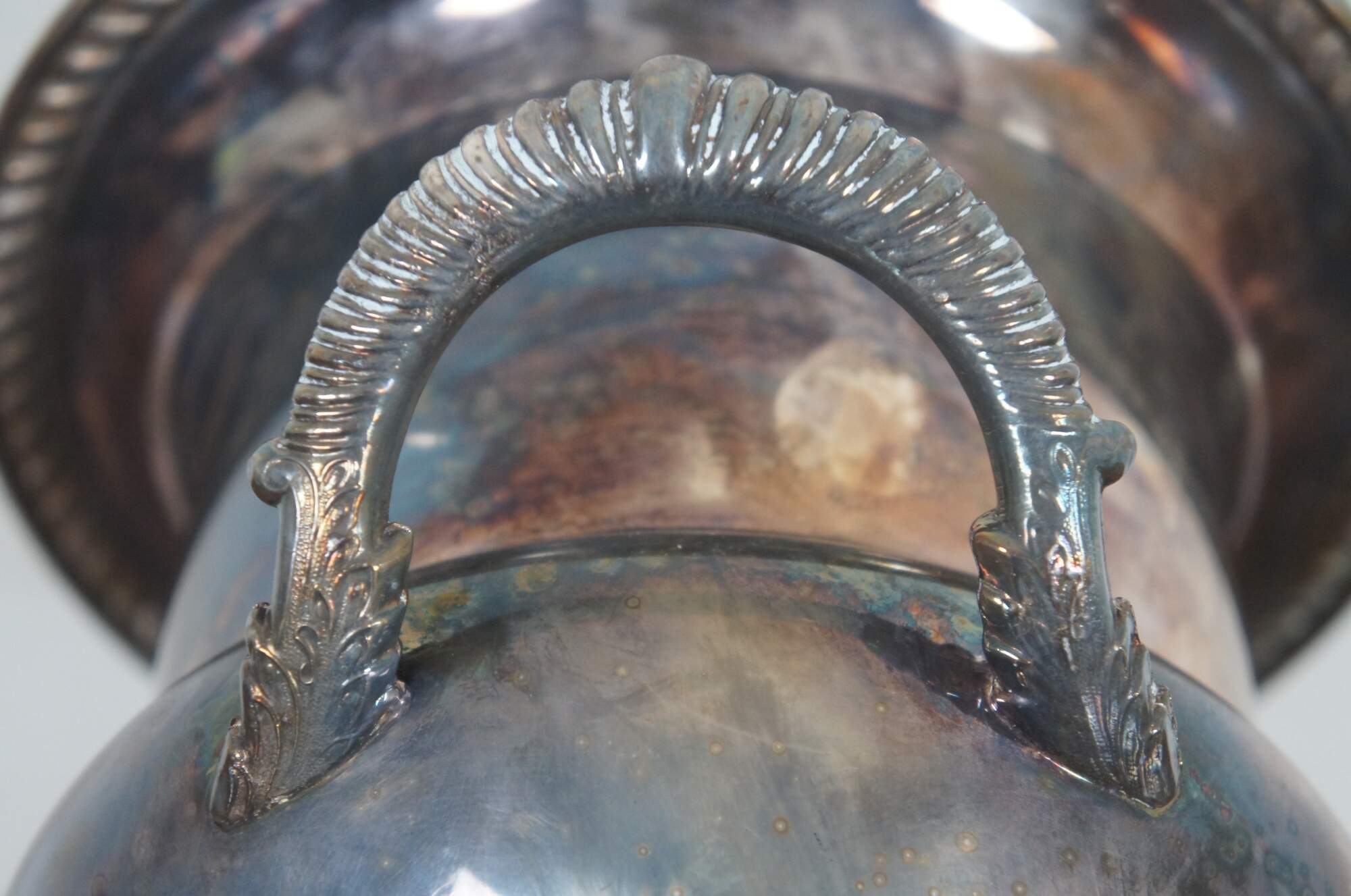 Antique W&S Blackinton number 917 fine silver plate trophy urn style ice bucket or champagne chiller with handles and footed base. “ Started by 2 brothers in 1865. W. S. Blackinton Co. was originally a manufacturer of gold jewelry in Meriden, CT. After being purchased by the Ellmore Silver Co. in the 1930's, they started manufacturing a line of silverplated hollowware.”