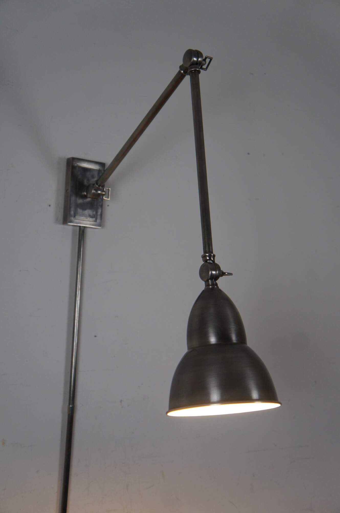 Vintage Visual Comfort French Library adjustable wall sconce reading light featuring double swing arms and antique nickel finish.