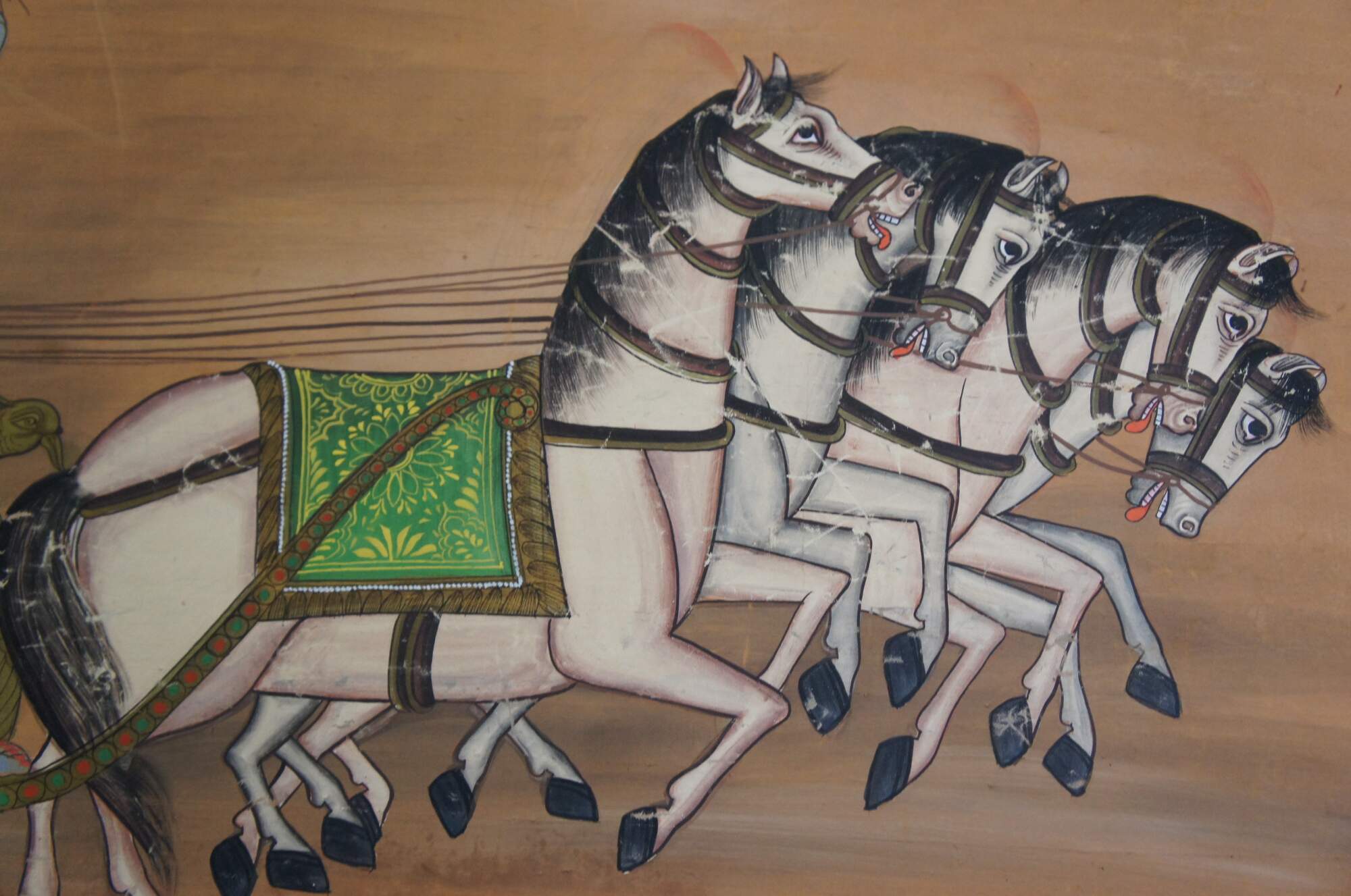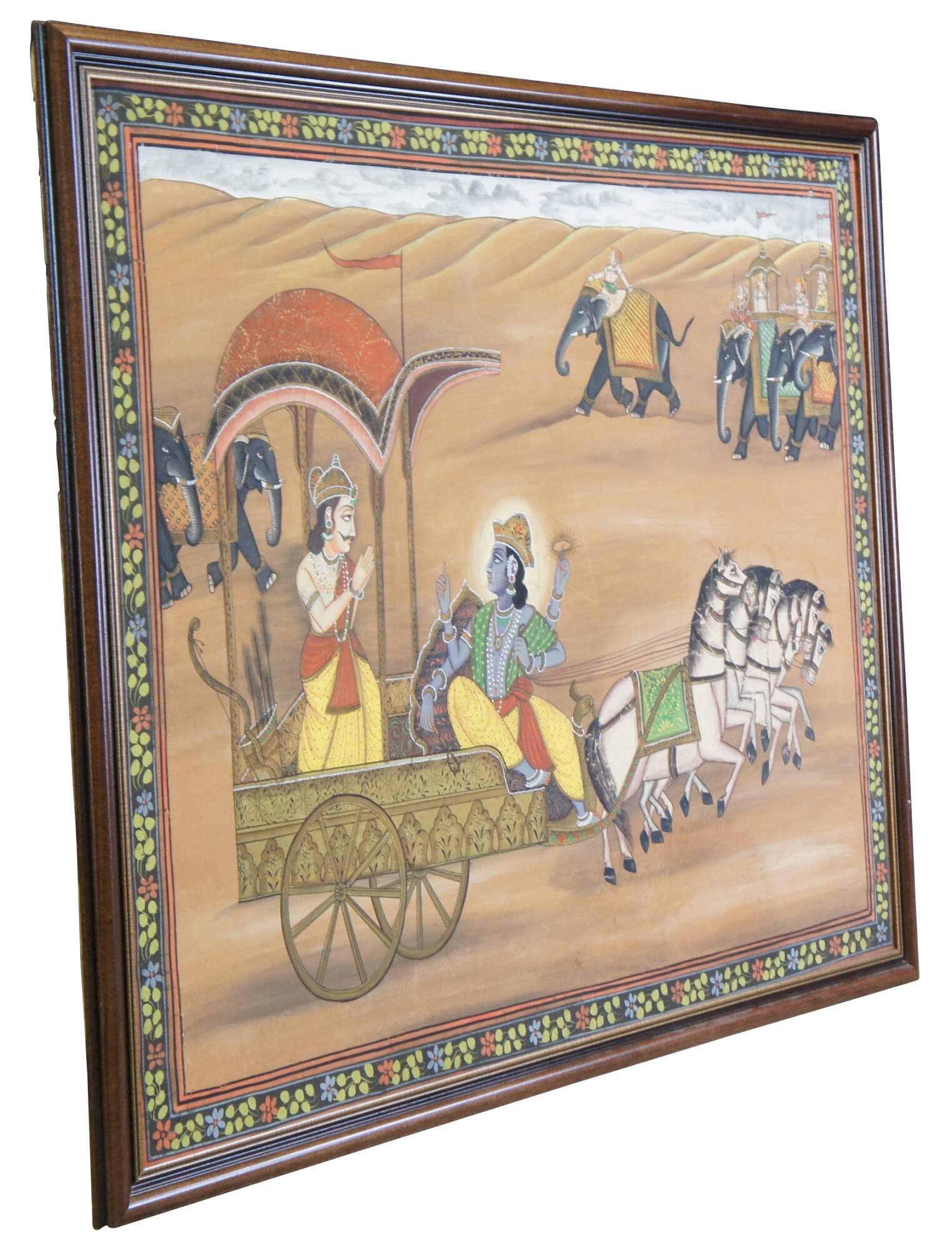 This Krishna Arjuna painting depicts the story of Mahabharata and the battle of Kurukshetra where Krishna was Arjuna's chariot driver and had spoken to him the words from the Bhagavada Gita.