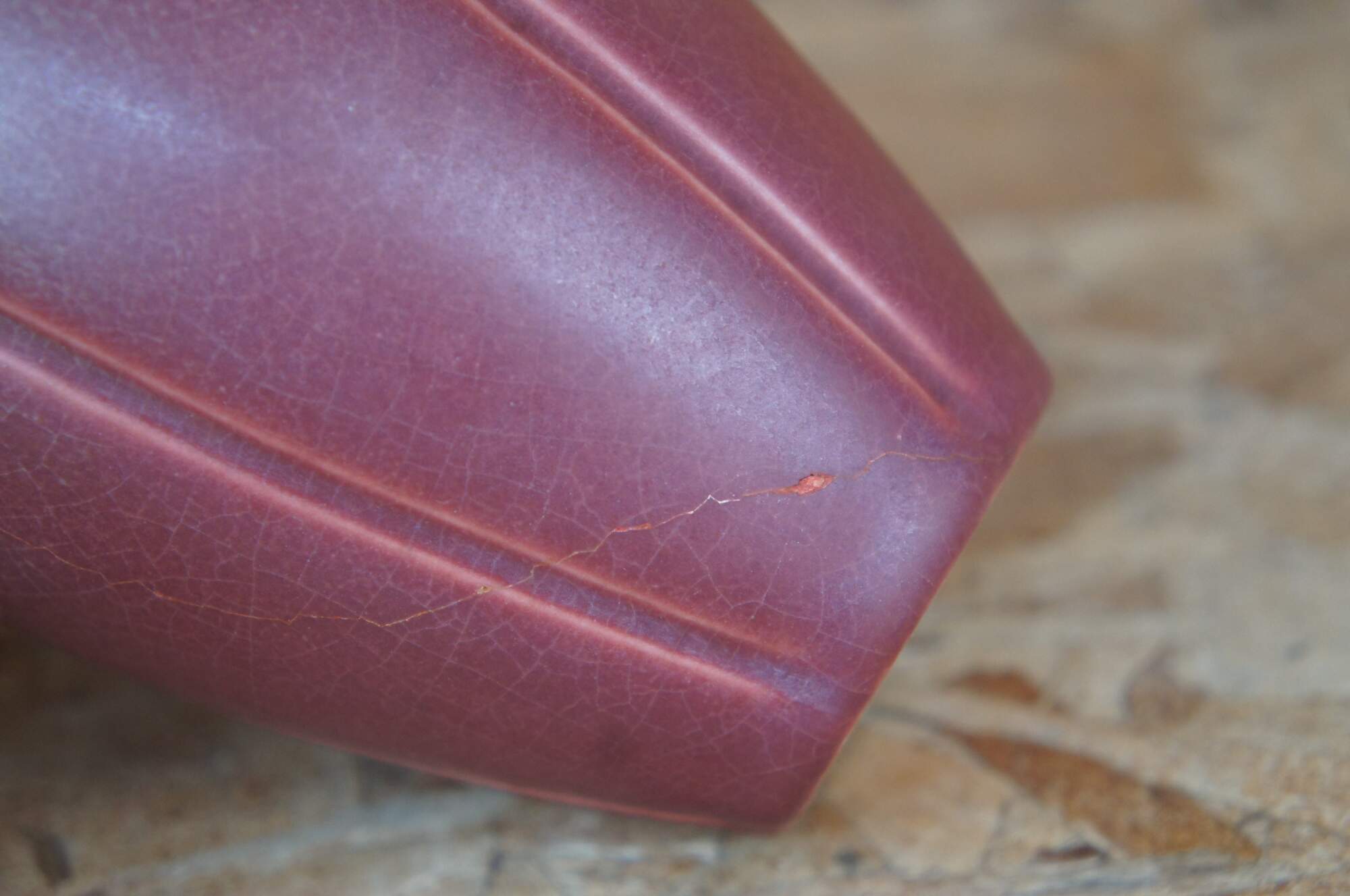 Good overall antique condition, wear and distressing commensurate with age and use, hairline crack in burgundy, two have marks / dates covered by glaze.