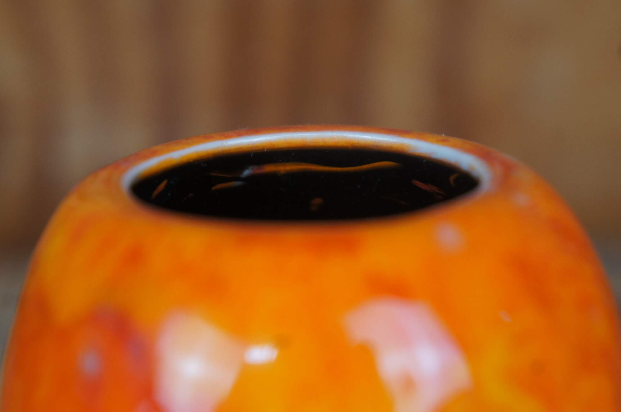 Vintage Rookwood Pottery bud vase featuring a unique mottled burnt orange high gloss glaze, marked on base. Product shape 2102.