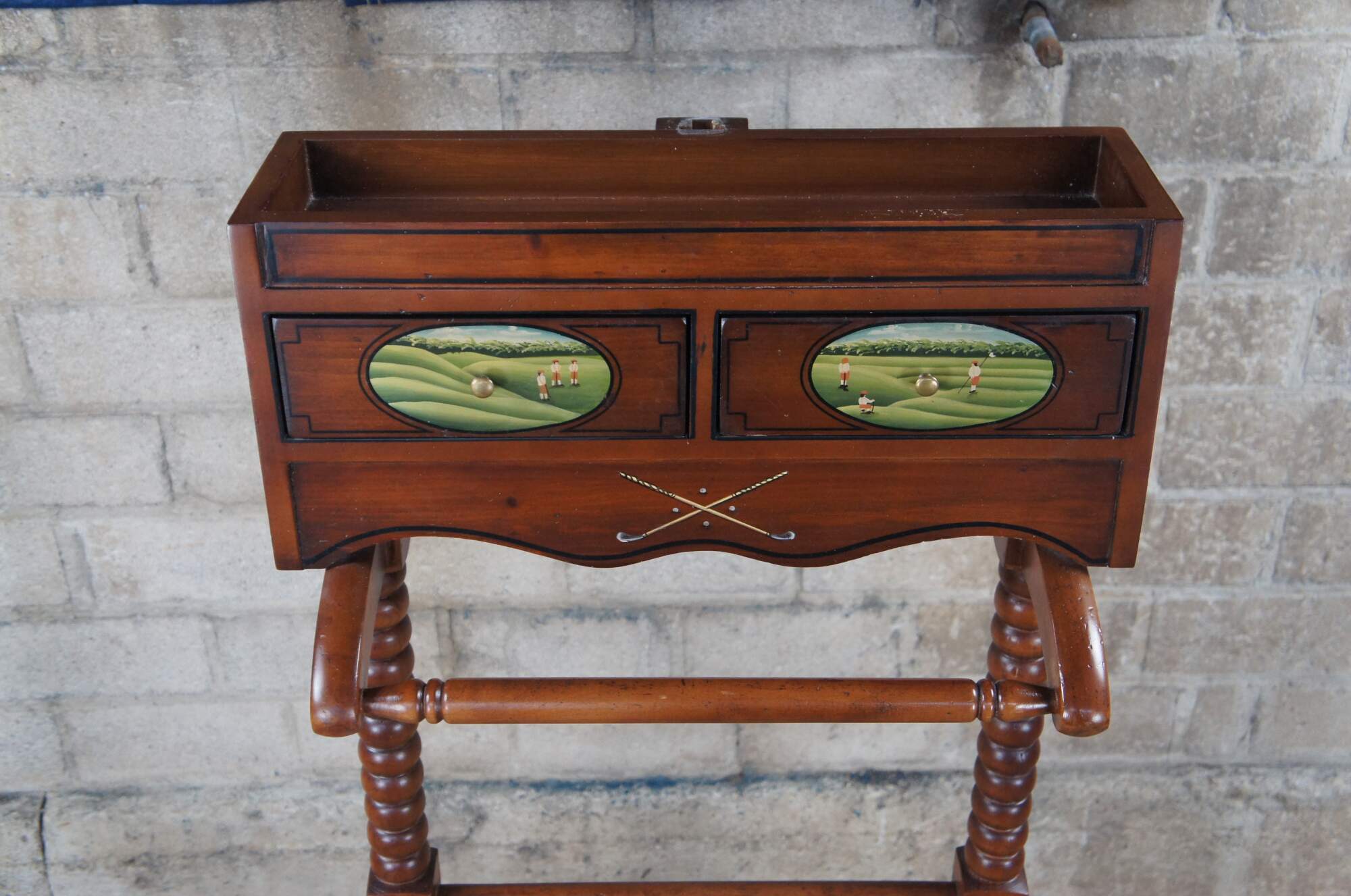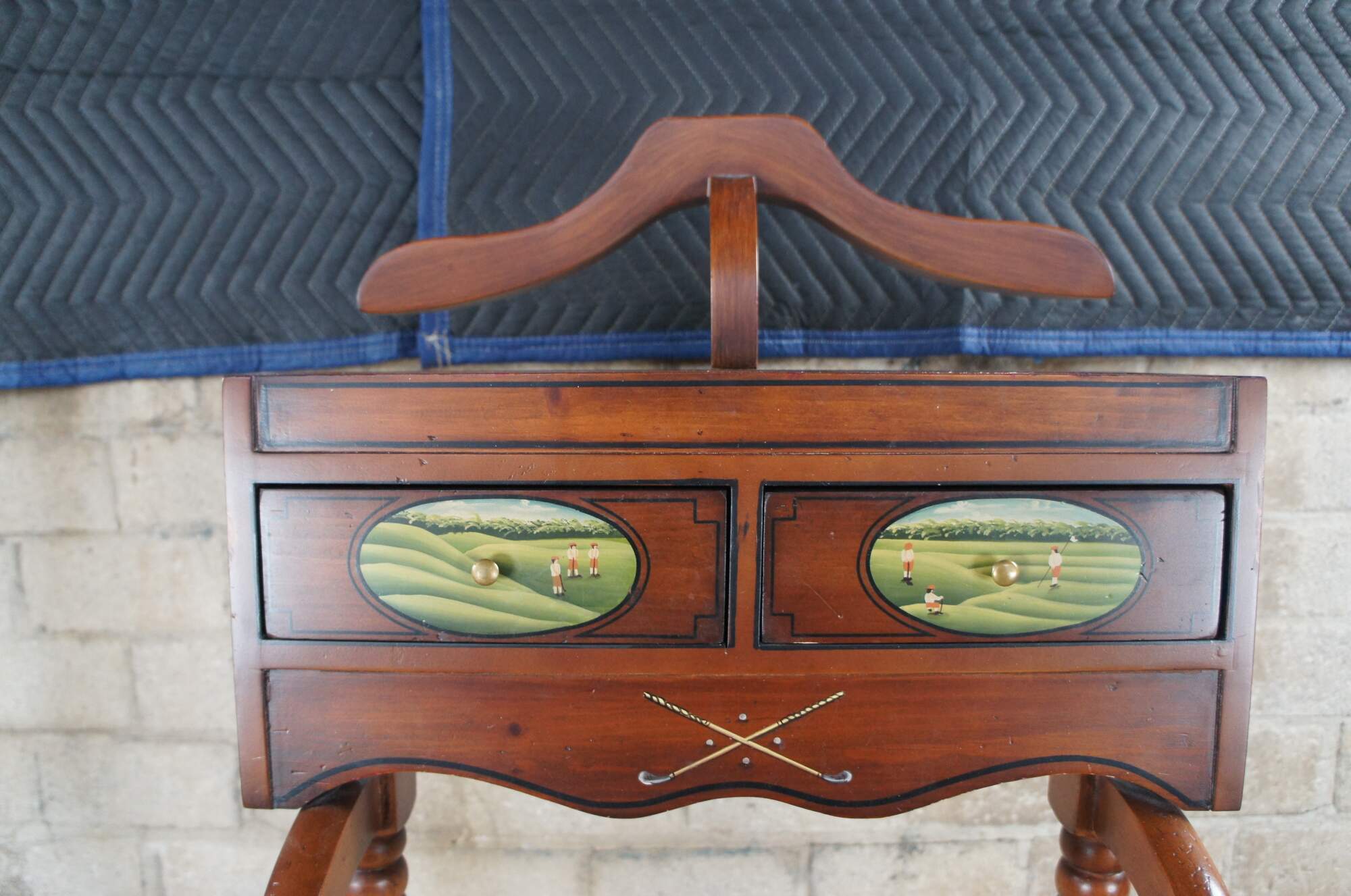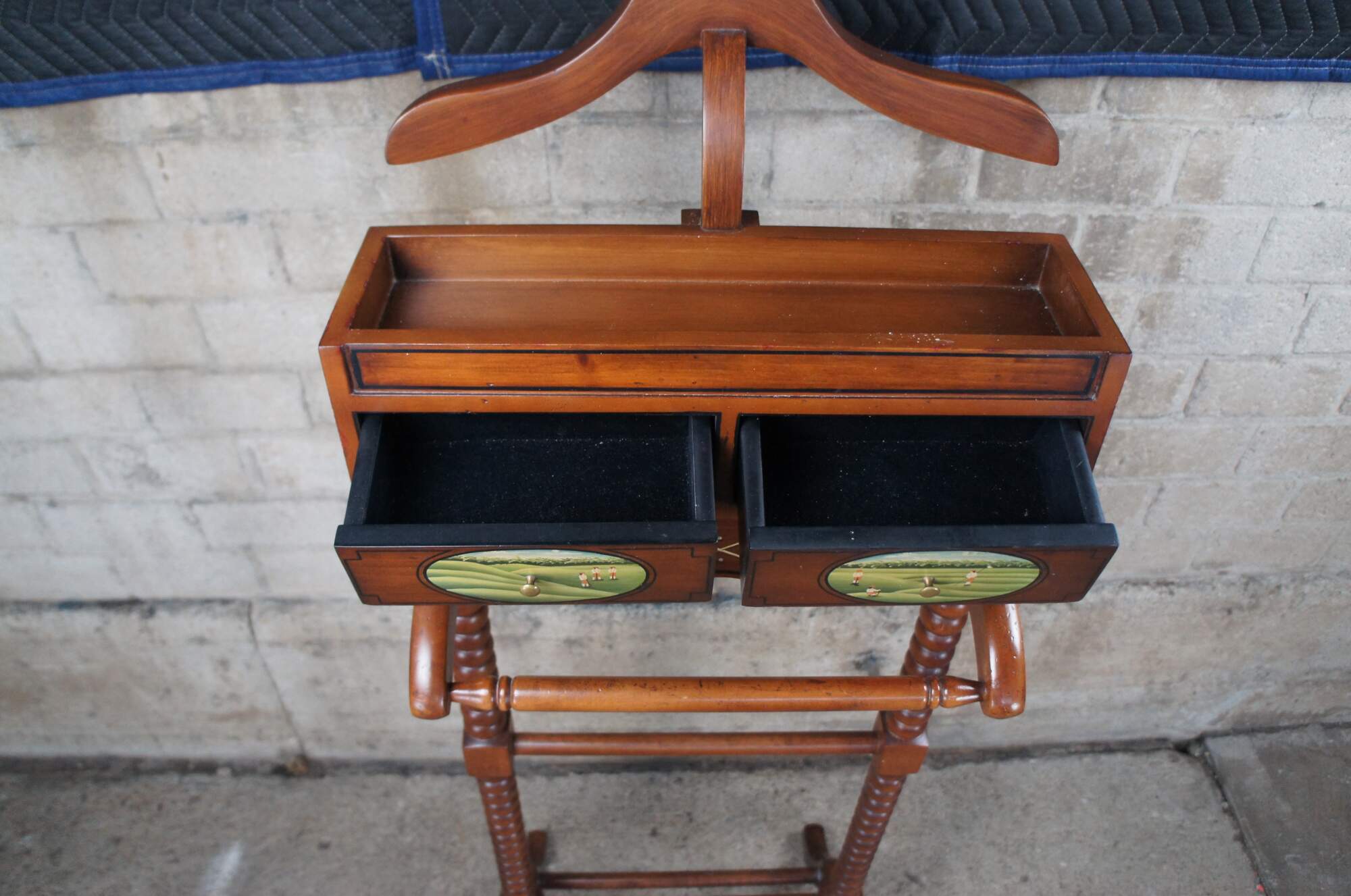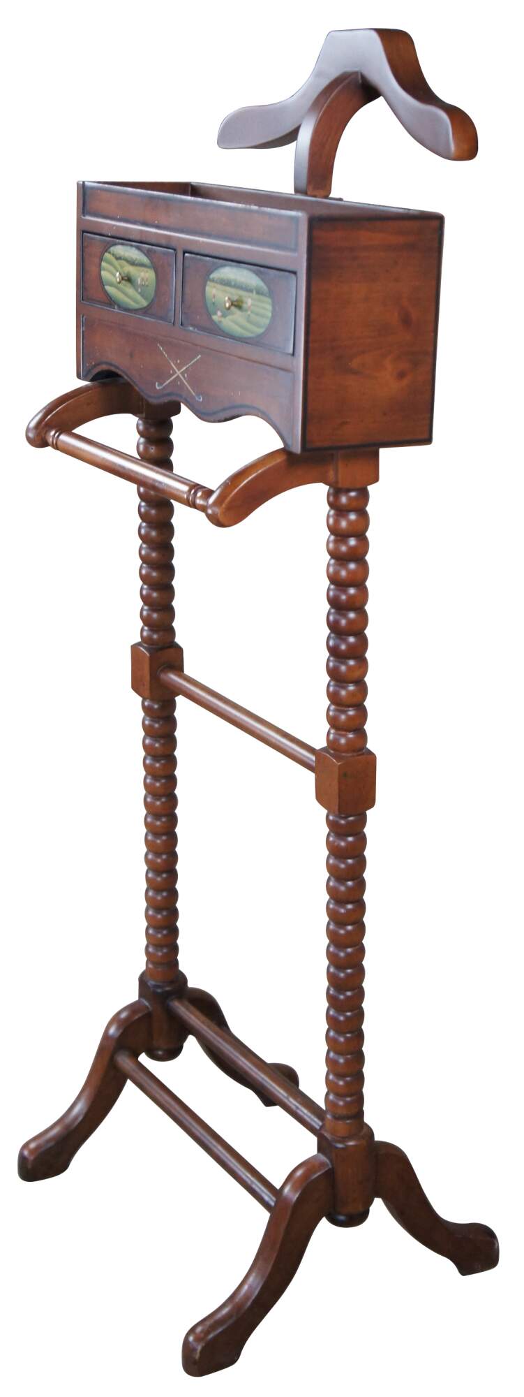 Italian Regency style dressboy or clothing valet stand, circa late 20th century. A ribbed design with towel or trouser holder and removable hanger. Includes two felt lined drawers and tray along top.