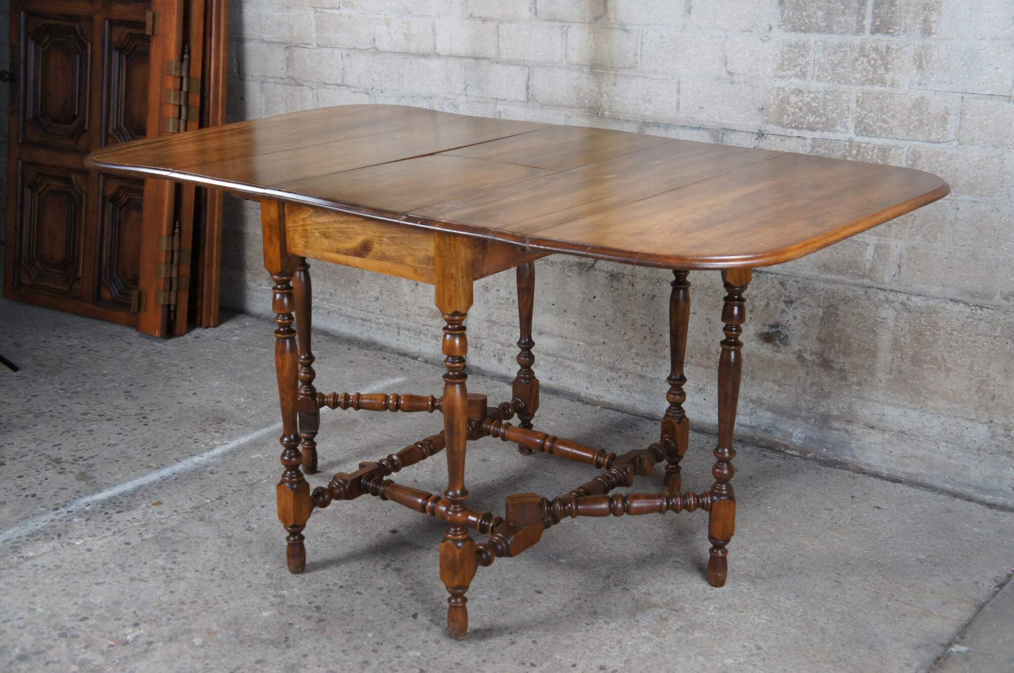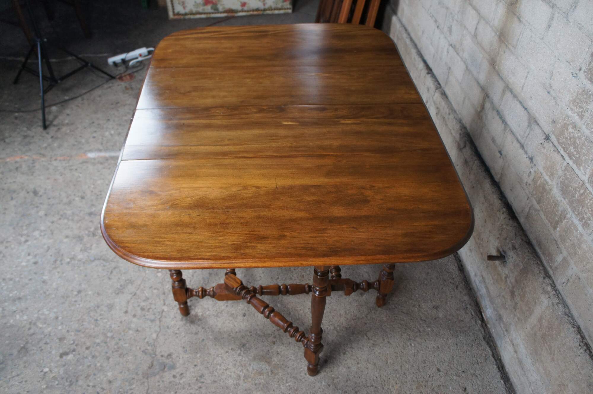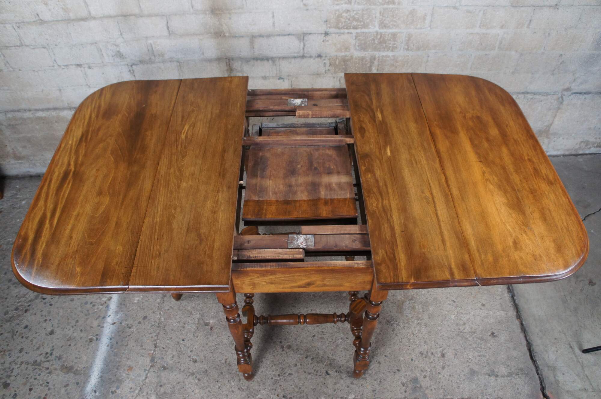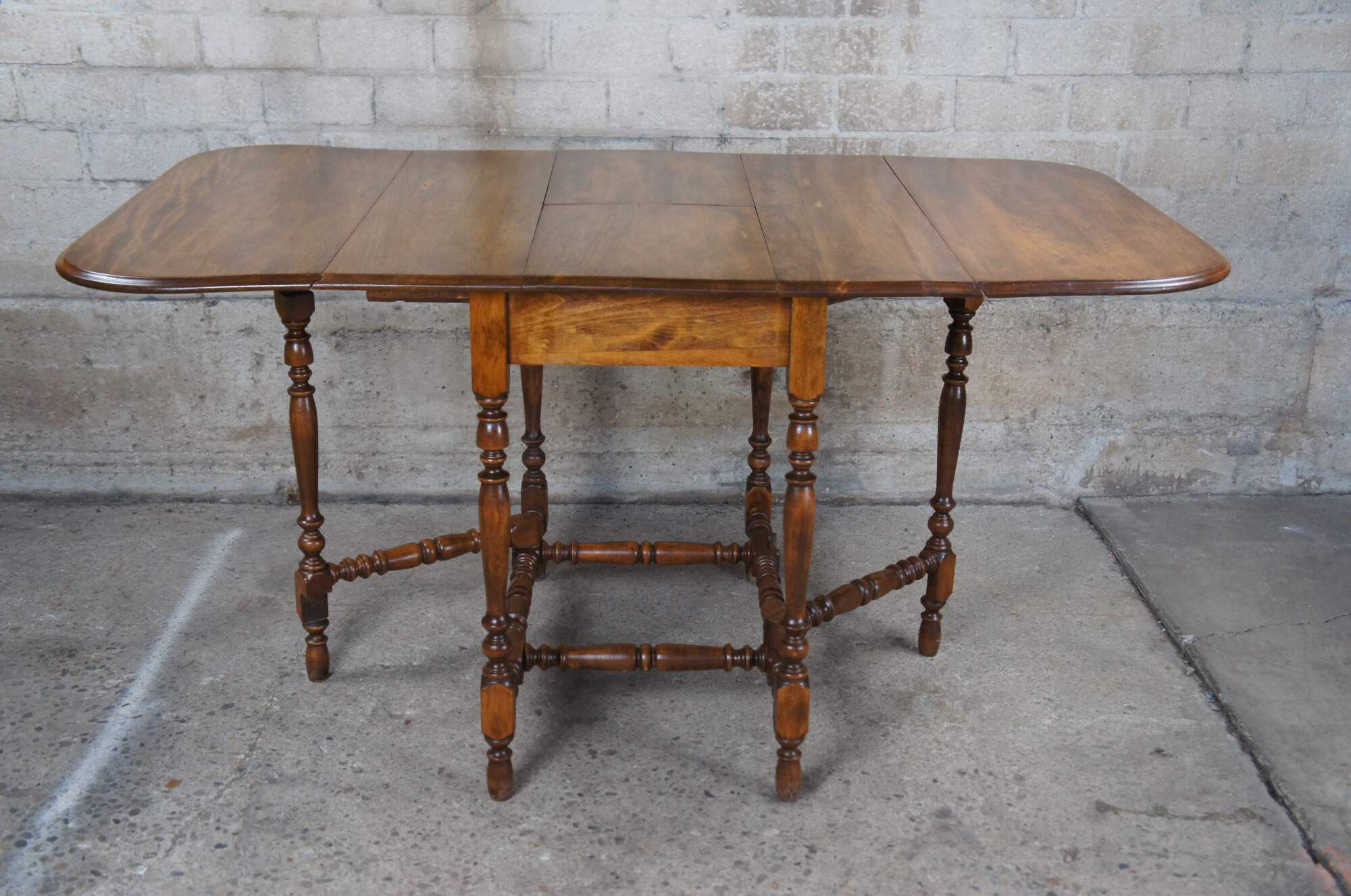 Early 20th century William & Mary style Gateleg extendable breakfast, dining or console table. Made from maple with turned legs and a unique hidden leaf that folds out once extended.