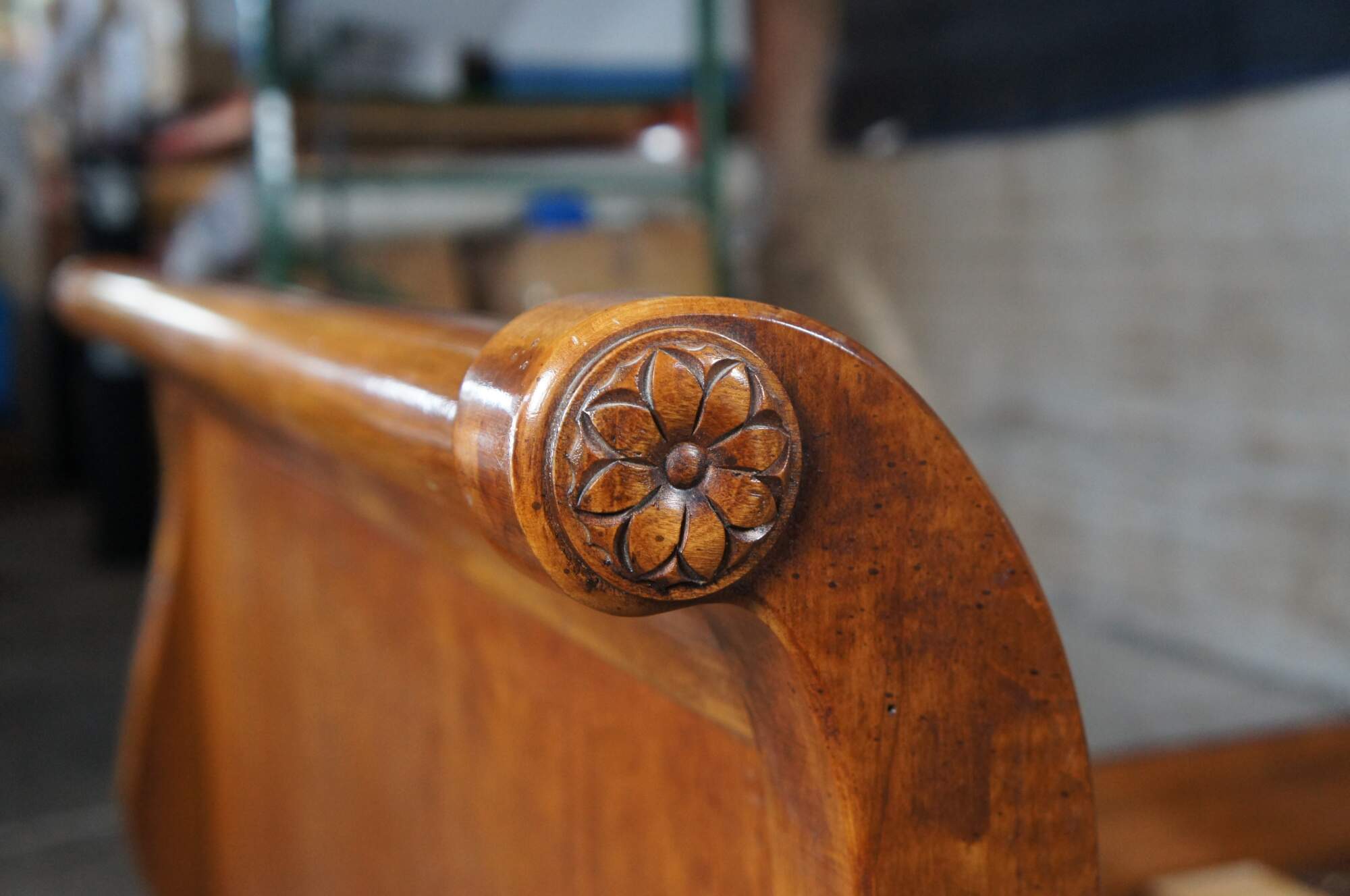 Late 20th century Louis Phillipe style twin sleigh bed. Made from cherry with classic form and floret medallions along the corners of the head and footboard.