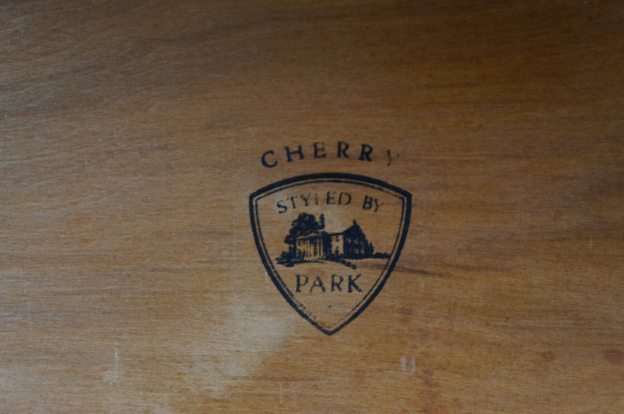 American Federal Revival Dresser & Mirror, circa first half 20th century. Marked "Cherry Styled by Park". Features a rectangular form lowboy chest of three drawers with half cut applied barley twist columns along the outer stiles. Includes matching mirror with open pediment. Made from solid cherry.