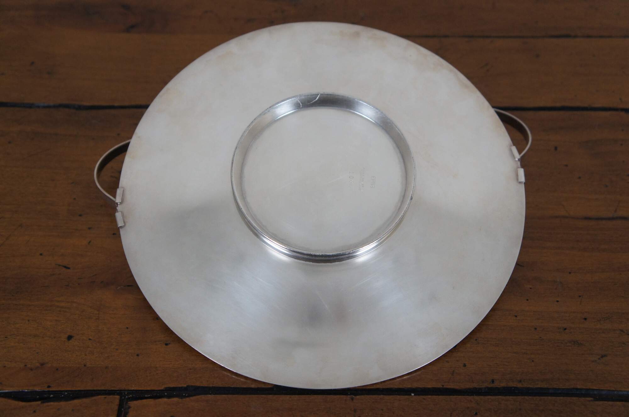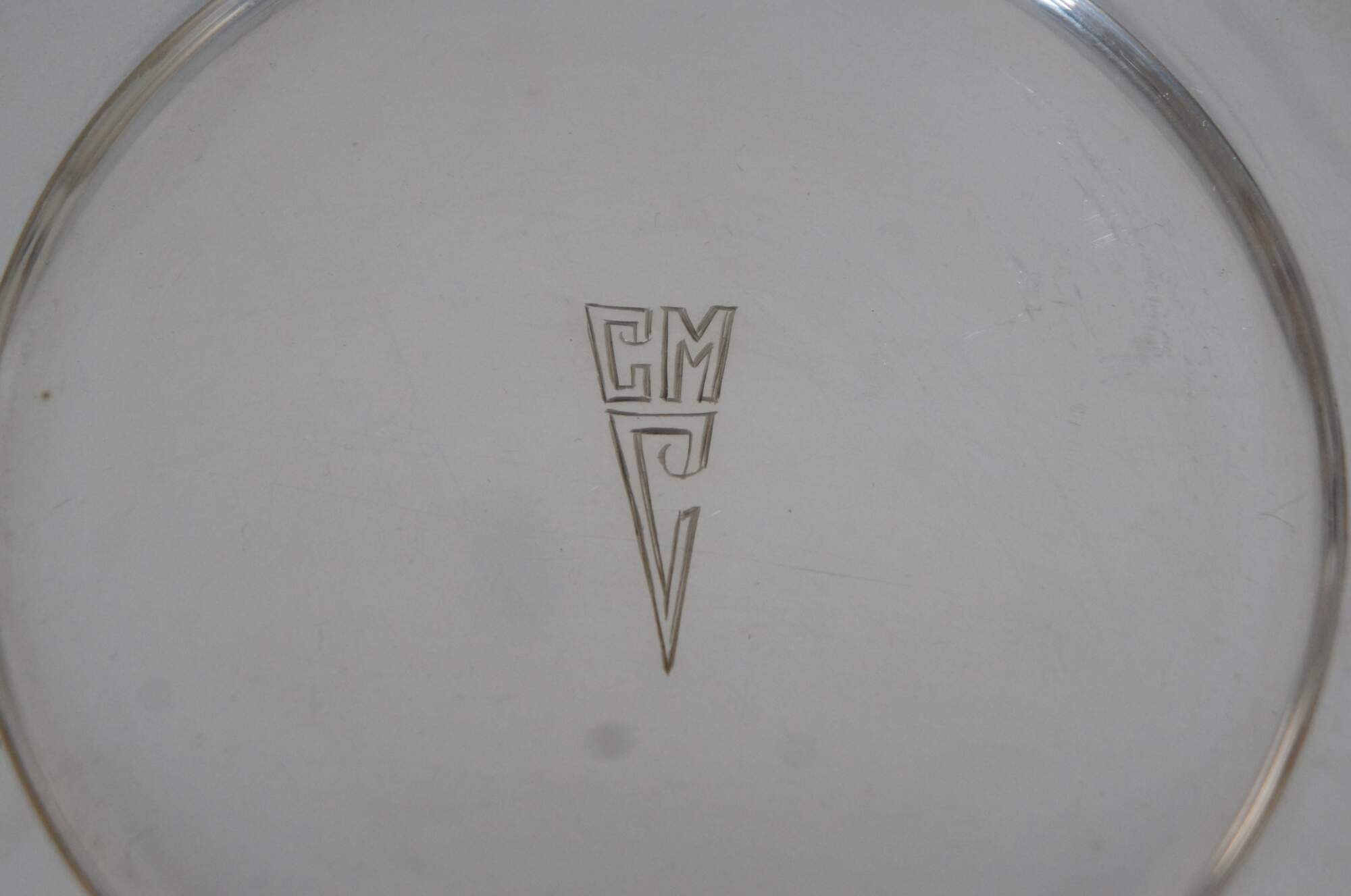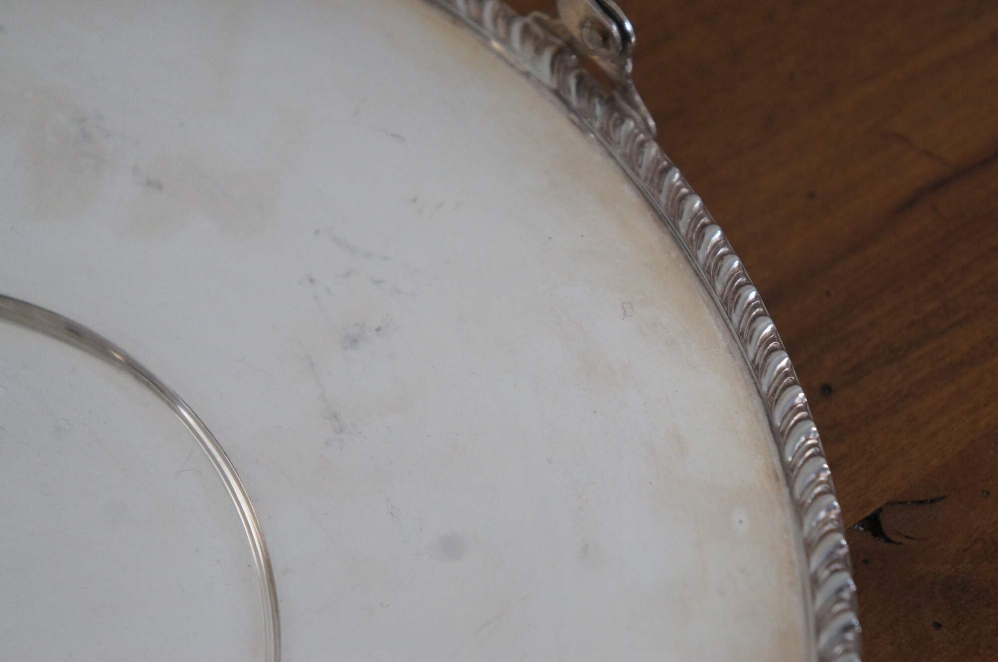 Antique Poole silver plate number 100 brides basket with rope twist edge, rotating handle, engraved with the initials CMC. “Poole Silver Company was an American silver manufacturing company, active in Taunton, Massachusetts from 1892-1971. The Poole Silver Company was formed in 1892 by George Poole and Edward Roche in Taunton as Poole, Roche & Co., then established as a corporation on May 21, 1895, as an early manufacturer of silver products made with electroplating techniques. In 1900 it operated in a small two-room factory at 106 Whittenton Street, and later moved to 320 Whittenton Street. From 1946 the firm began to produce sterling silver flatware, holloware, and cutlery. In 1971 the company was bought by Towle Silversmiths. The intellectual property currently belongs to Lifetime Brands.”