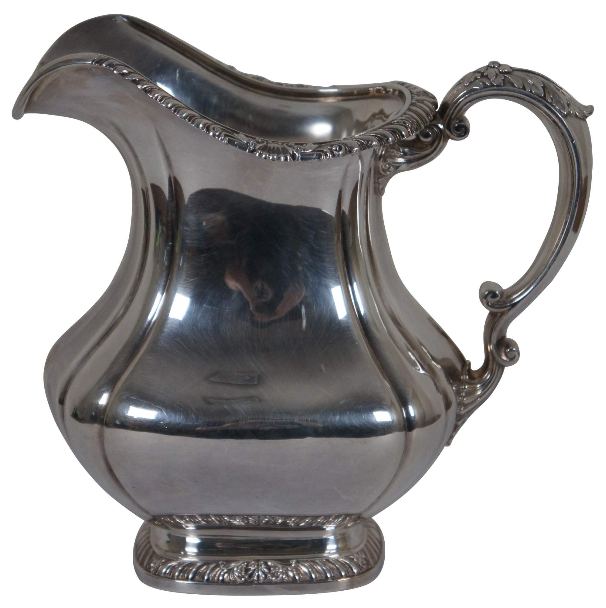Vintage Gorham Superfine silver plate number Y1124 drink pitcher, capacity 4 3/8 pint with ridged body, edges gadrooned in scalloped floral and foliate designs.