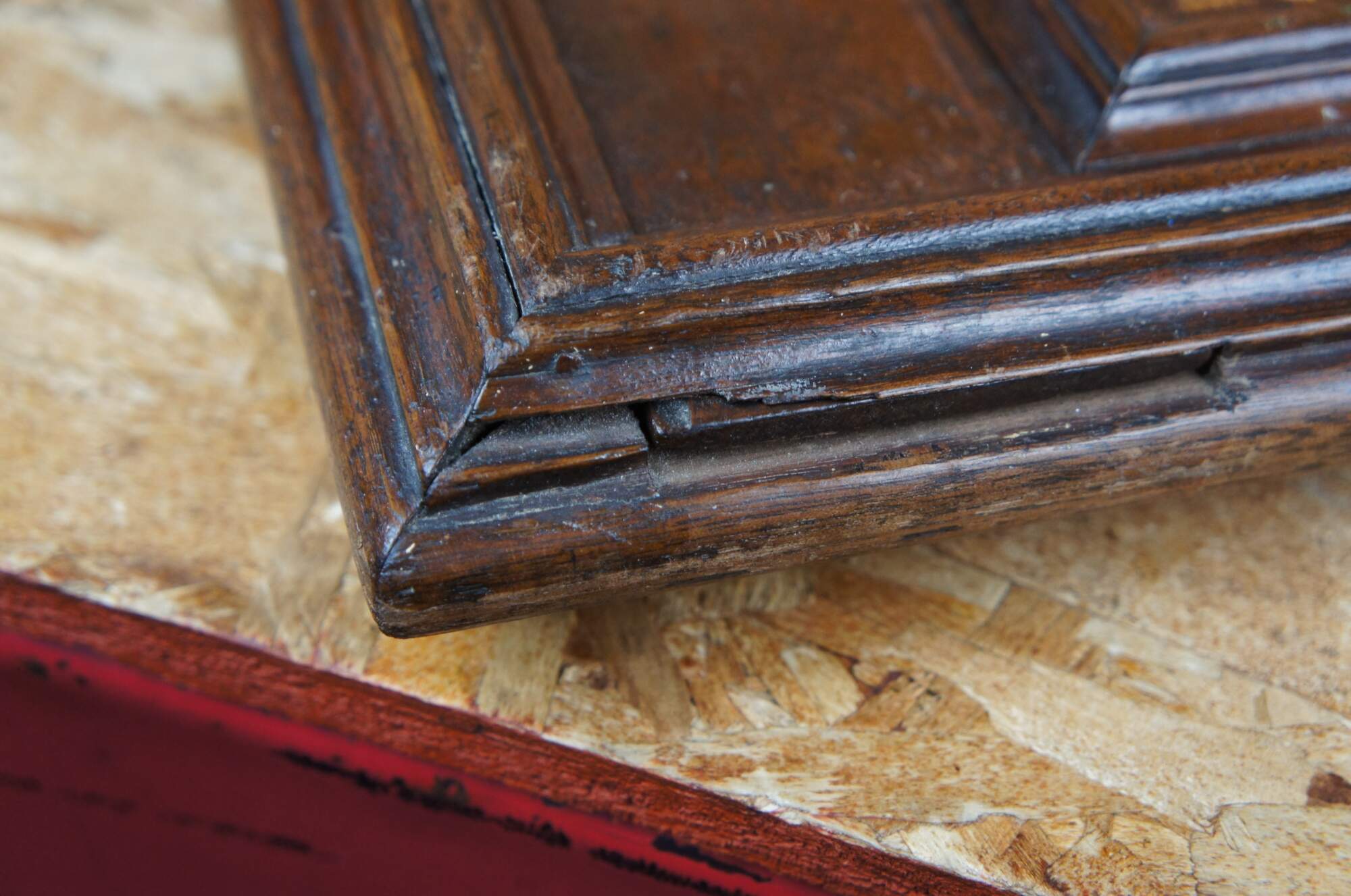 Good overall, wear and distressing commensurate with age and use, splitting, scuffing, missing trim, chip to one piece, 15 red, 16 black