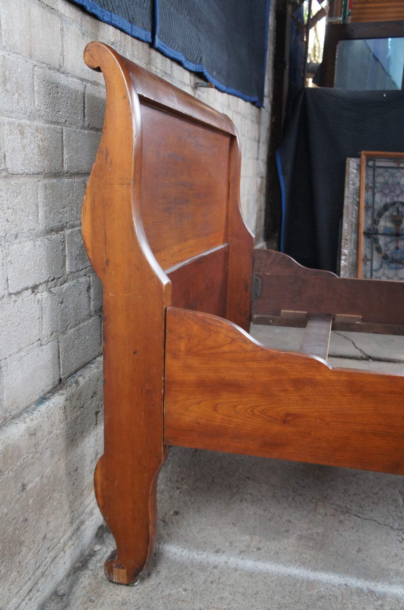 Antique Louis Phillipe style twin sleigh bed. Made from cherry with classic French form