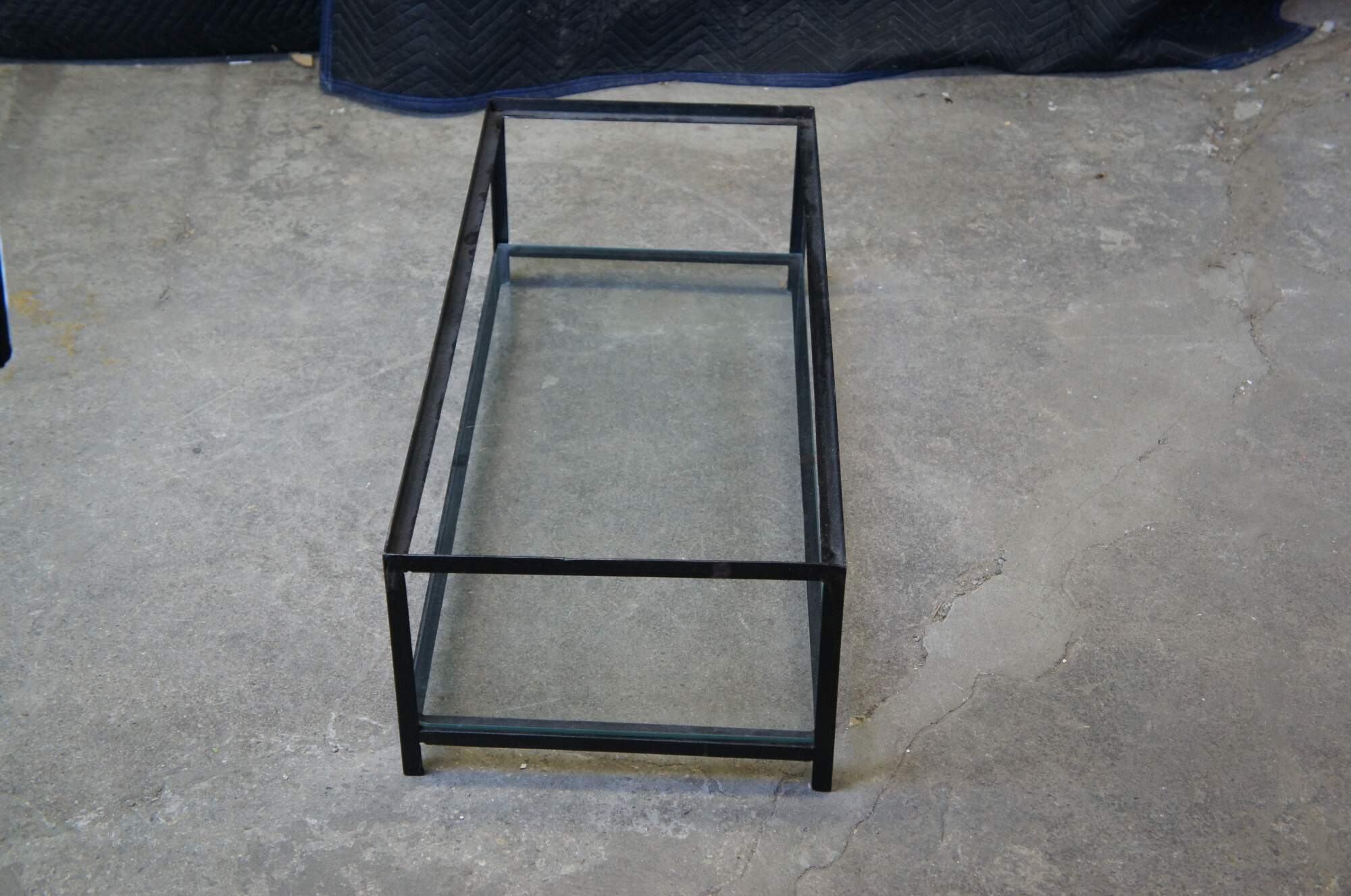 A steel ammo box on handmade steel stand with glass shelve. A verastile piece that can be used for storage or as a coffee table. Add a glass top to use as a console or sofa table.