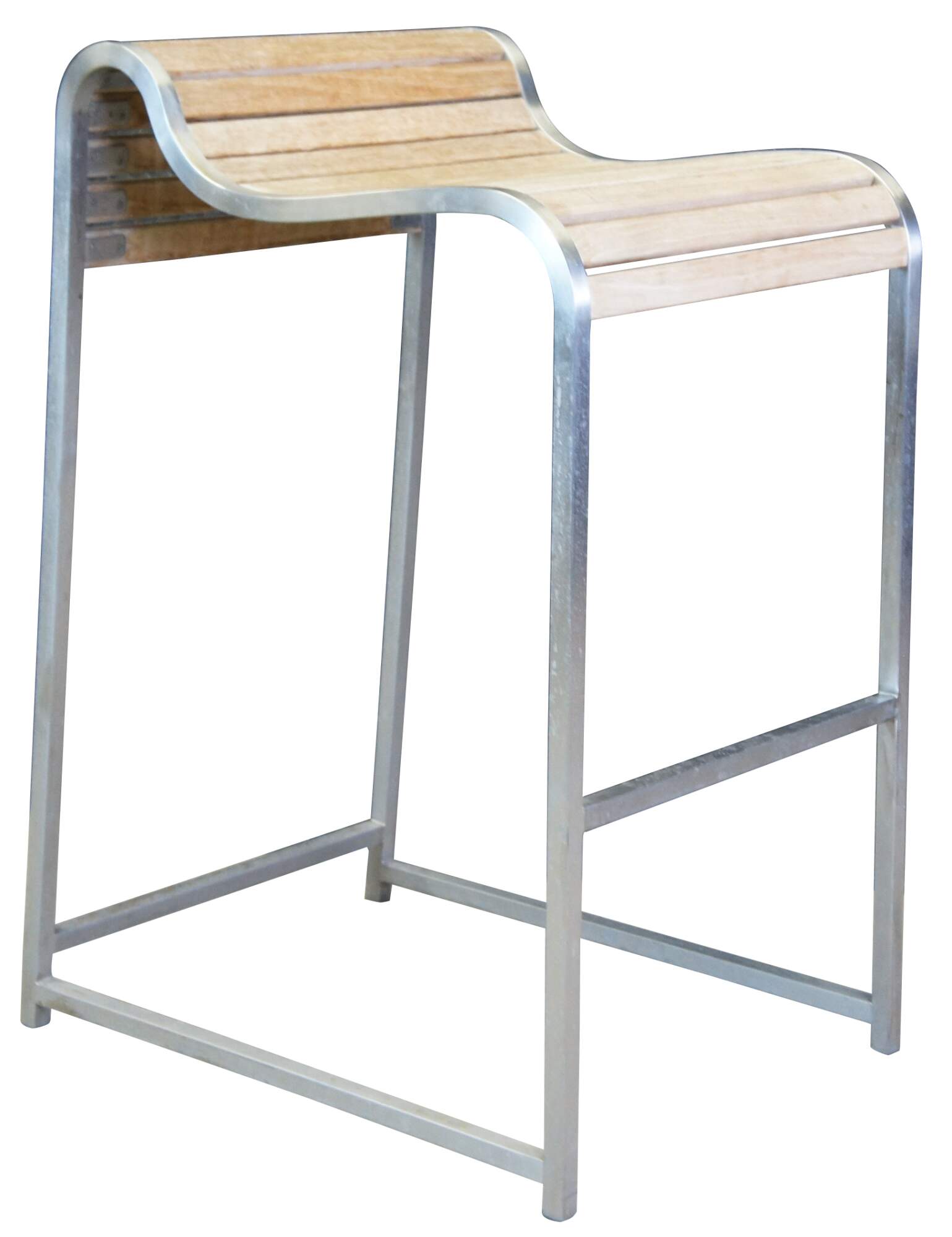 Sculpted in hand-rubbed teak and brushed stainless steel, the sinuous lines of Tres Chic redefine the allure of contemporary design. The recurring horizontal motif imparts a clean, sophisticated Pan Asian vibe to the collection. The Tommy Bahama Tres Chic Bar Height Stool is currently sold out by retailers due to popularity.