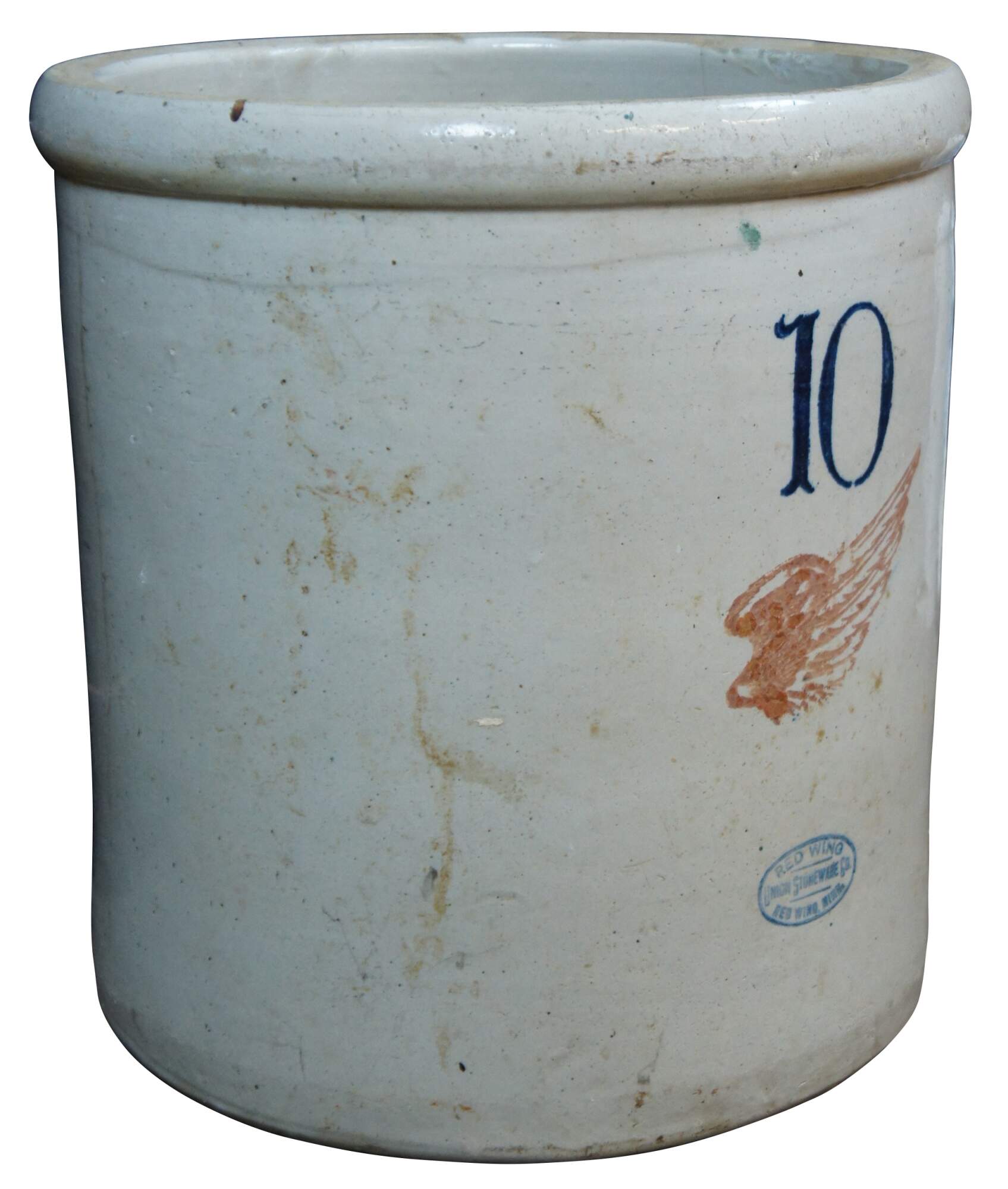 Antique Red Wing Union Pottery salt glaze stoneware ten gallon crock.