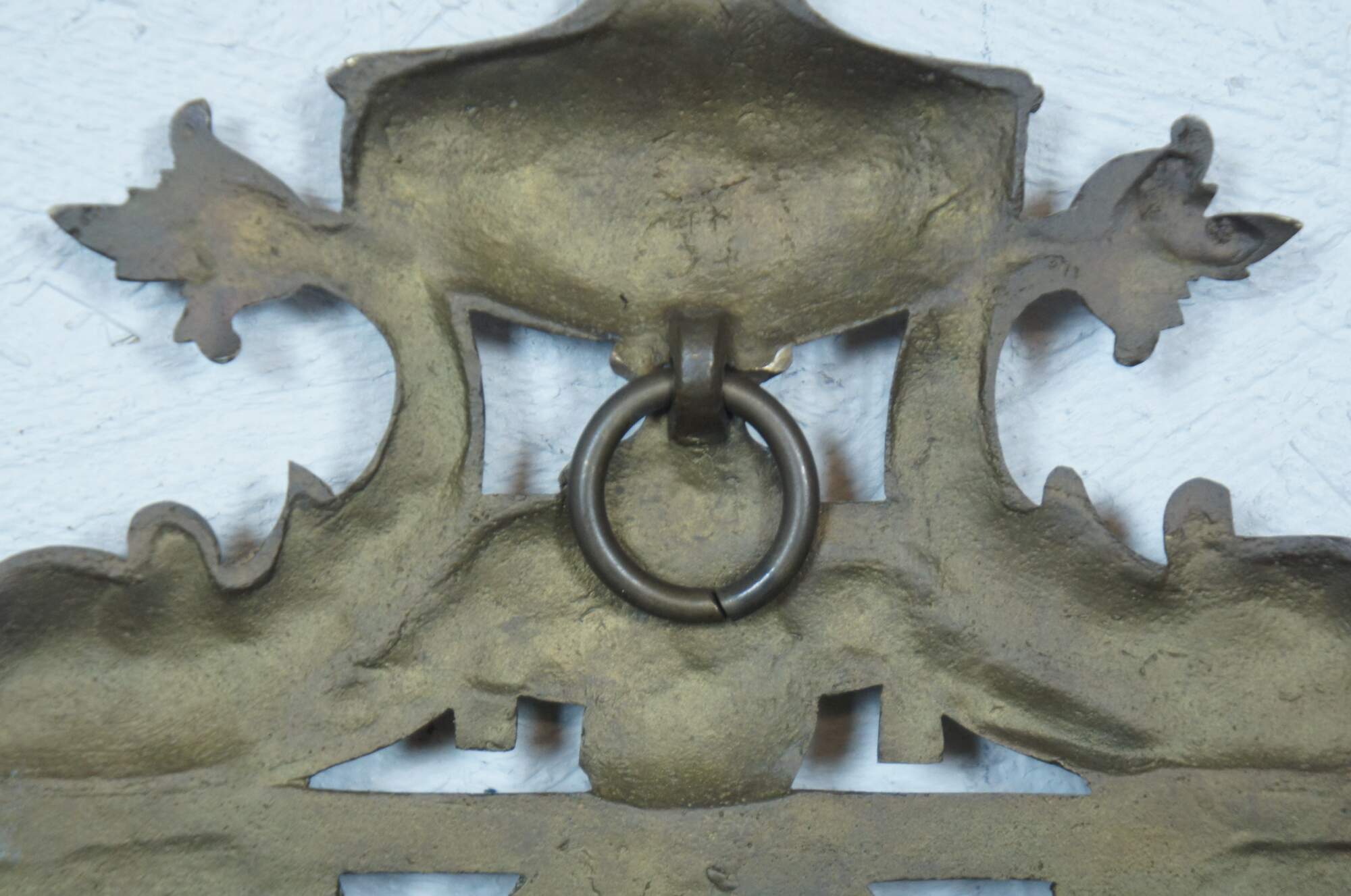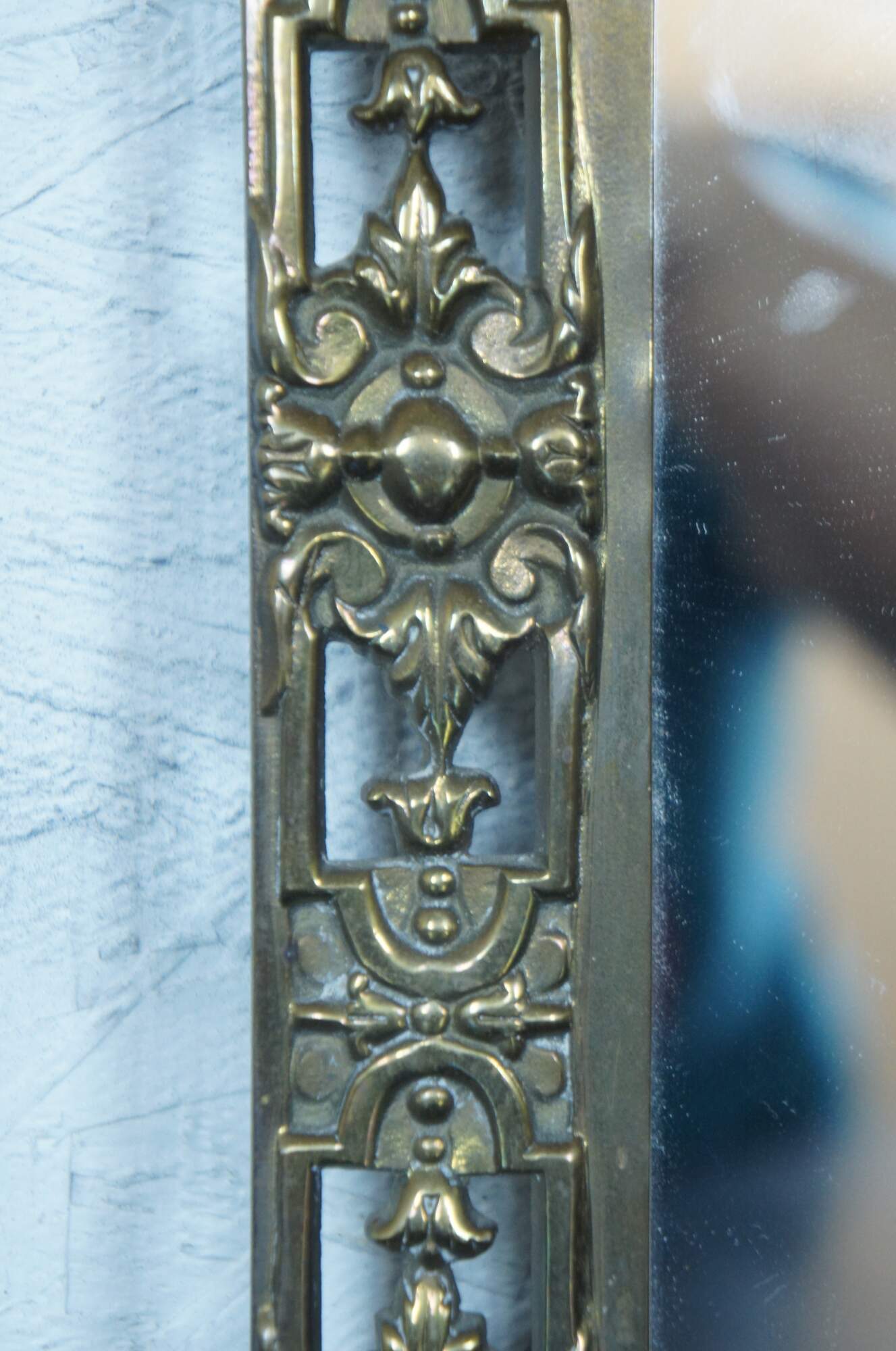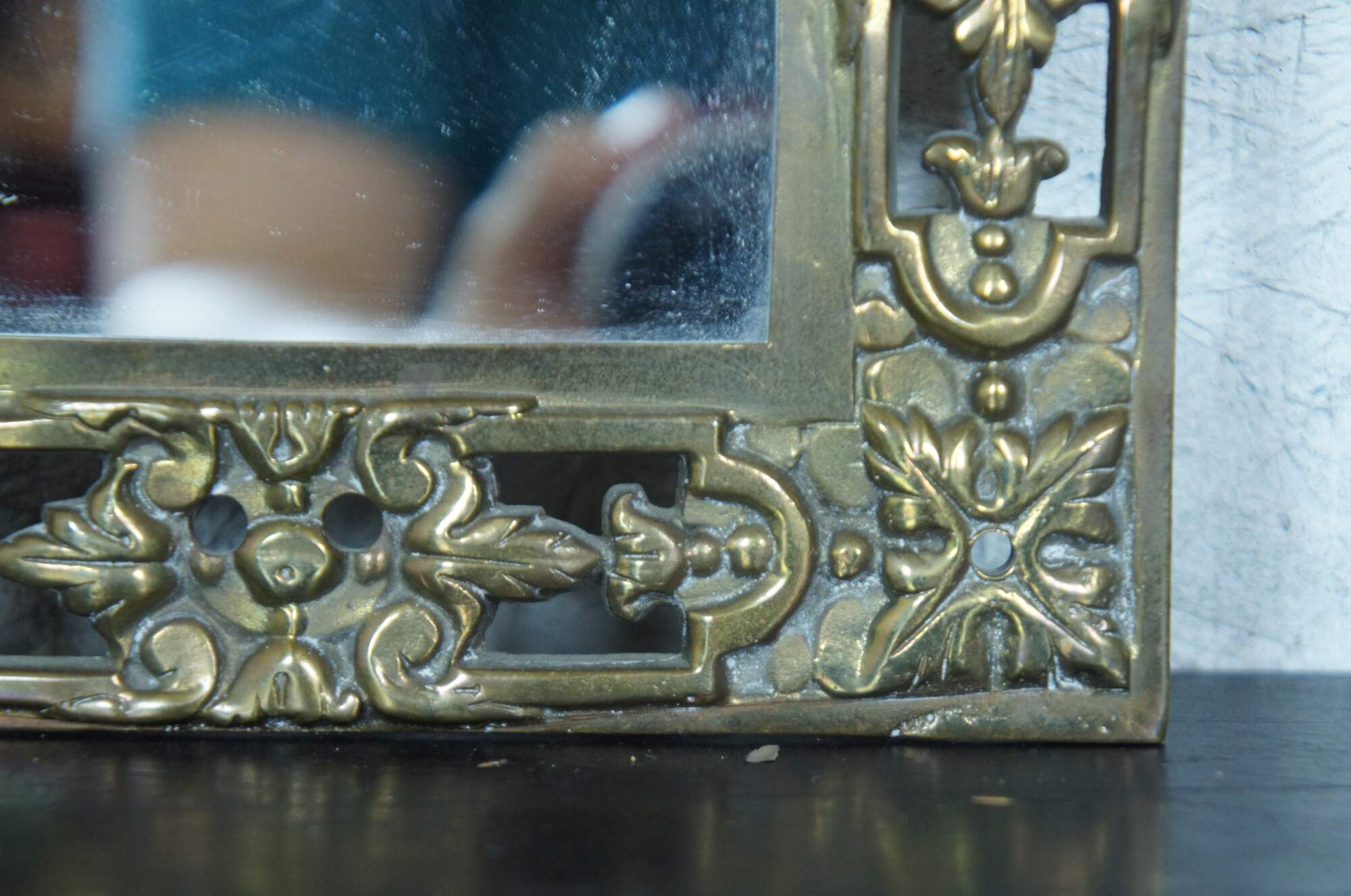 Antique Bradley & Hubbard brass rectangular wall mirror featuring neoclassical motifs, including an urn flanked by dolphins / delphins / Dauphin / Fish. Attributed to #3502.