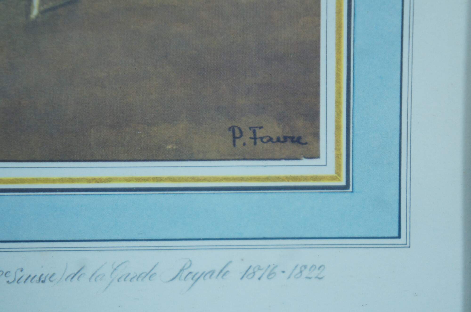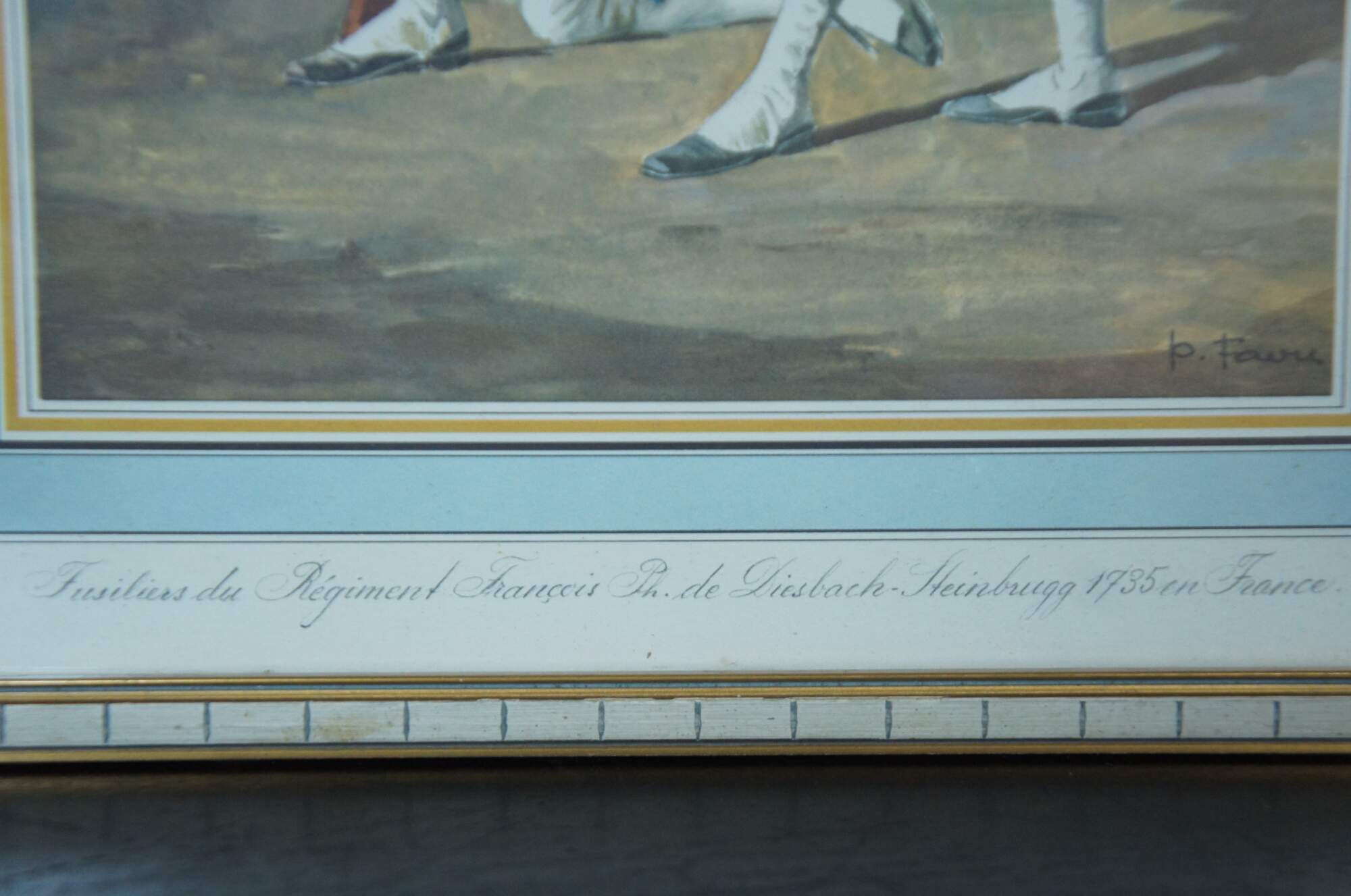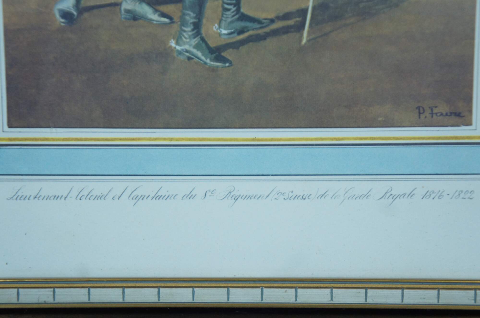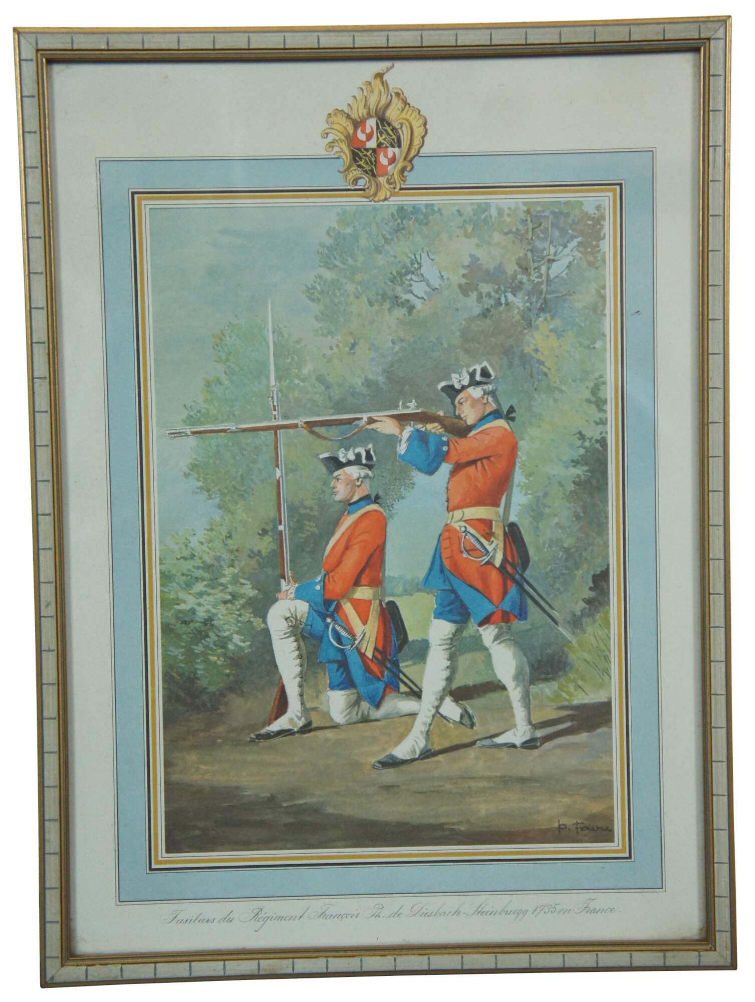 wo mid 20th century elegantly framed lithograph prints of French military figures from the 18th and 19th century by Pierre Favre. Made in Western Germany.