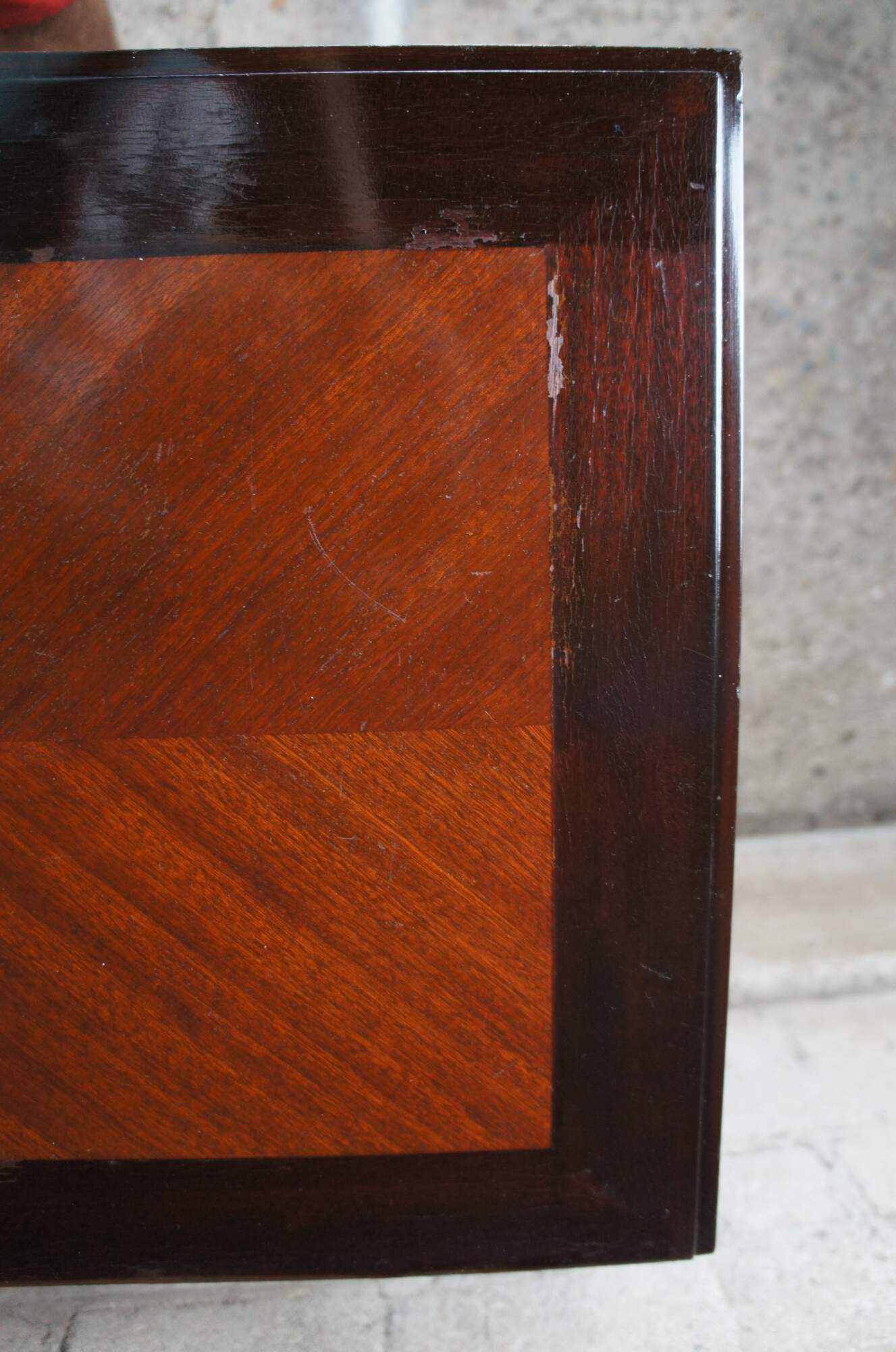 Good Vintage Condition; crazing to finish from age and distressing from use. slight wear through veneer in a few spots along the top.
