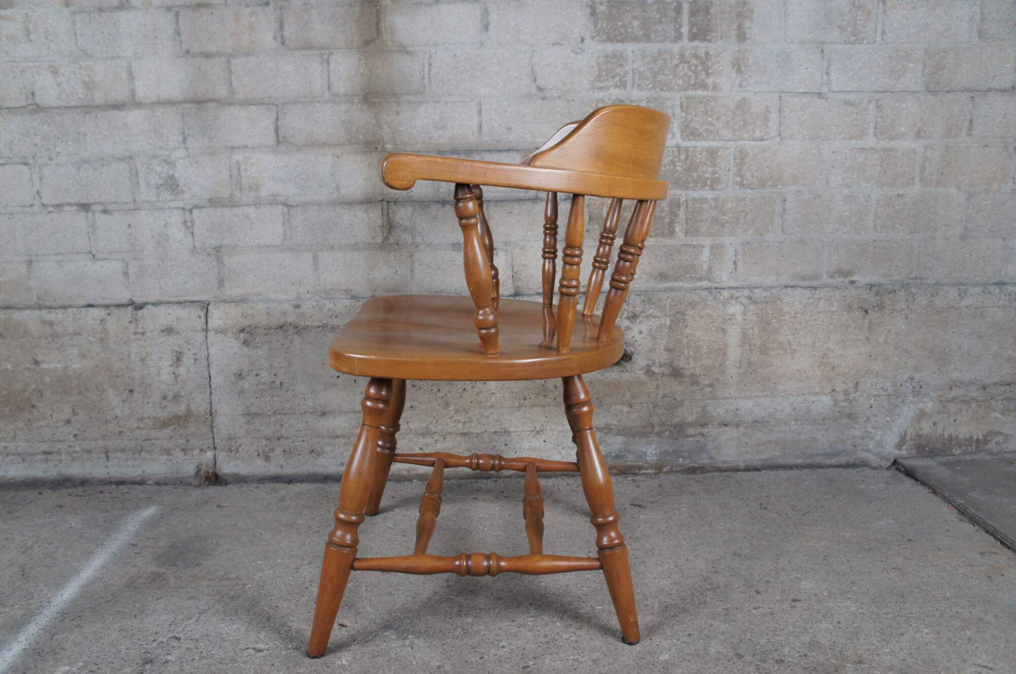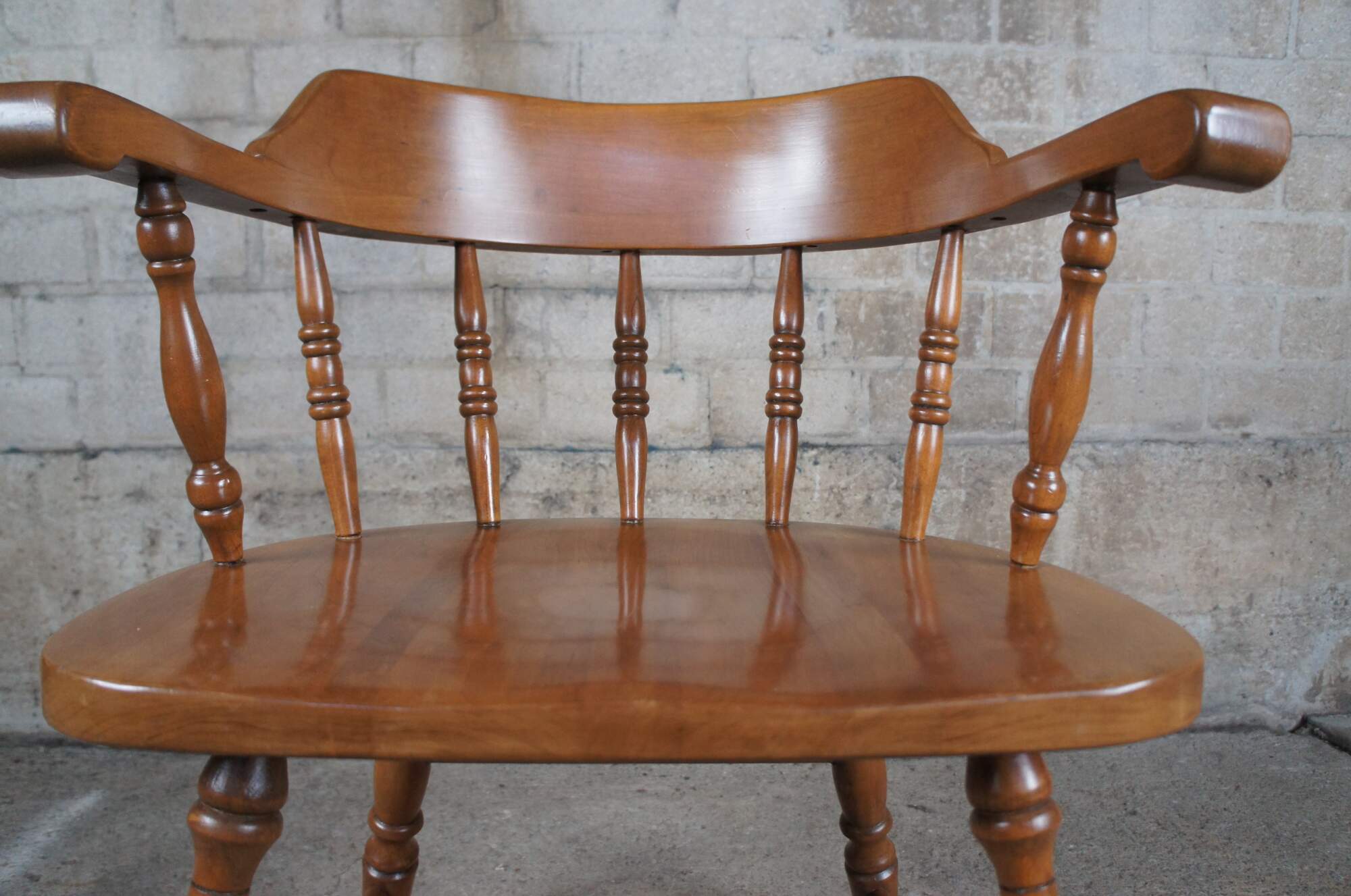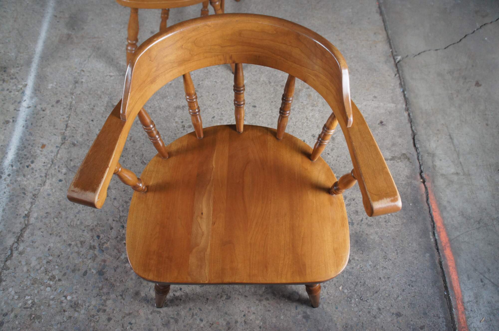 7 Vintage Statton solid cherry barrel back saloon or Caboose dining arm chairs, circa mid 20th cenutry.