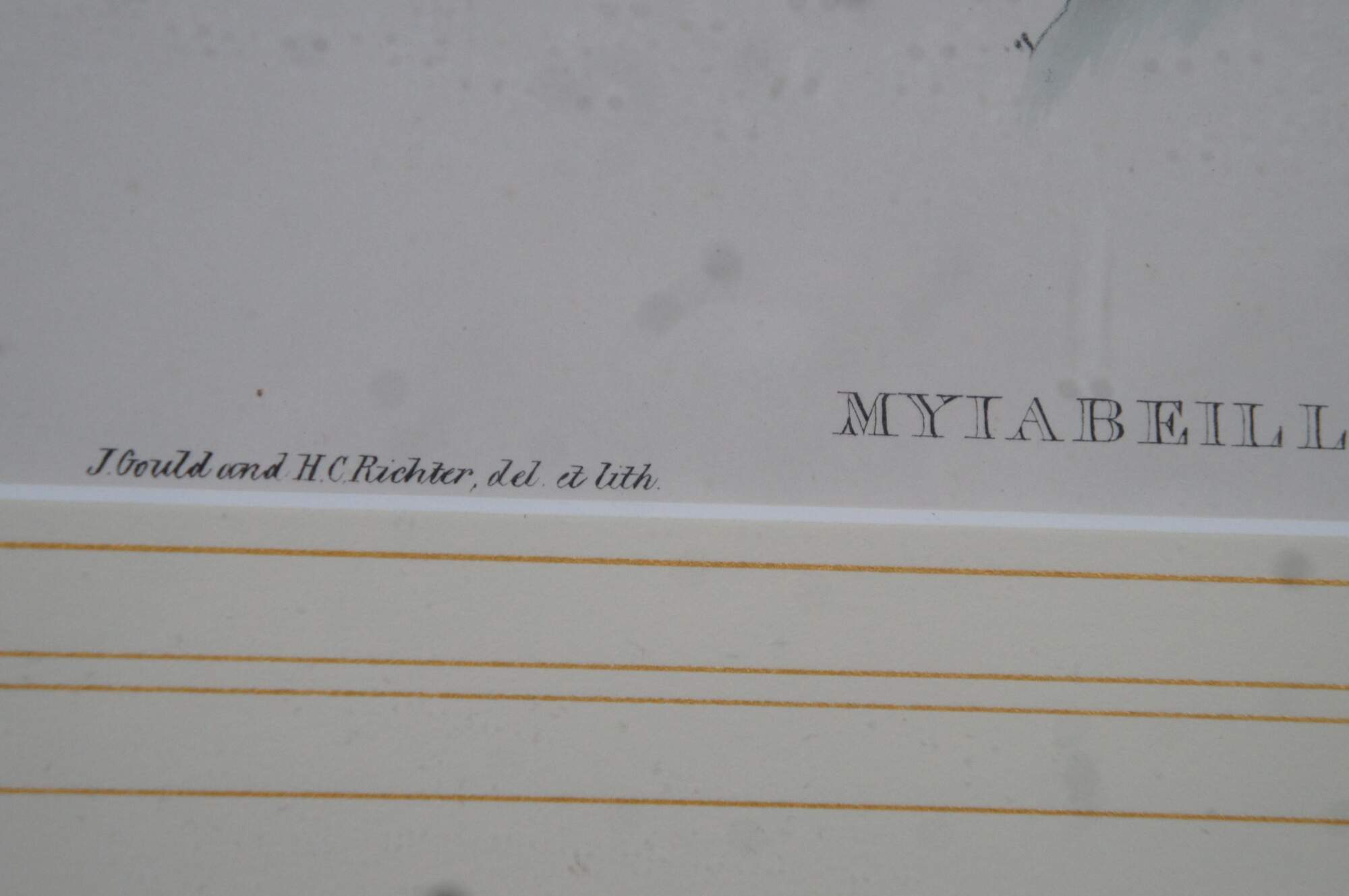 Antique mid to late 19th century colored lithograph print of Myiabeillia typica (Abeille's Hummingbird) drawn by John Gould, lithographed by H.C. Richter, printed by Hullmandel & Walton. From A Monograph of the Trochilidae, or Family of Hummingbirds, published in London circa 1849-61 (supplement printed 1880-87).