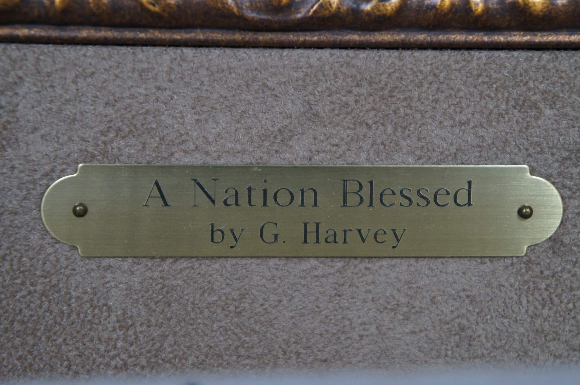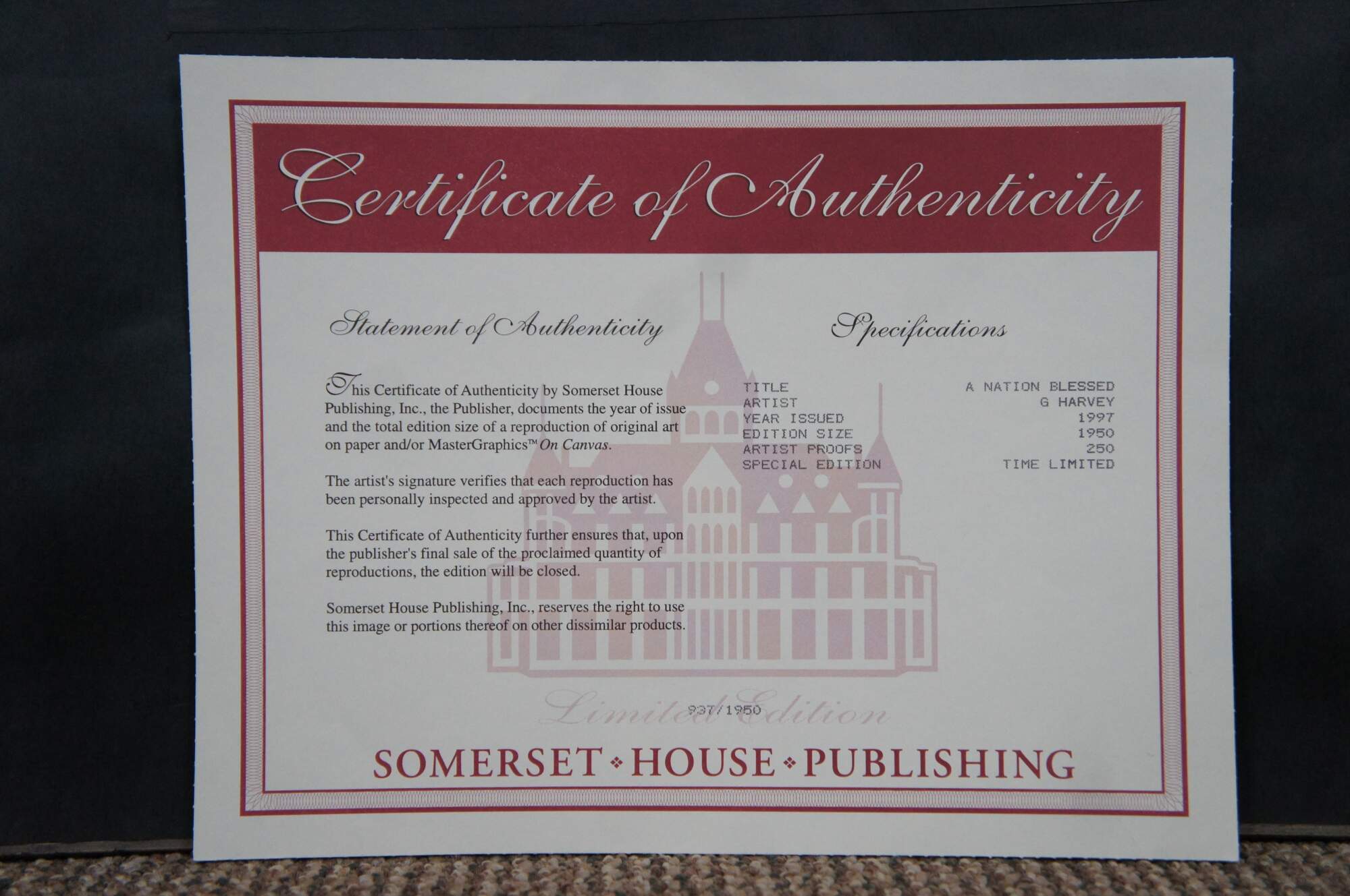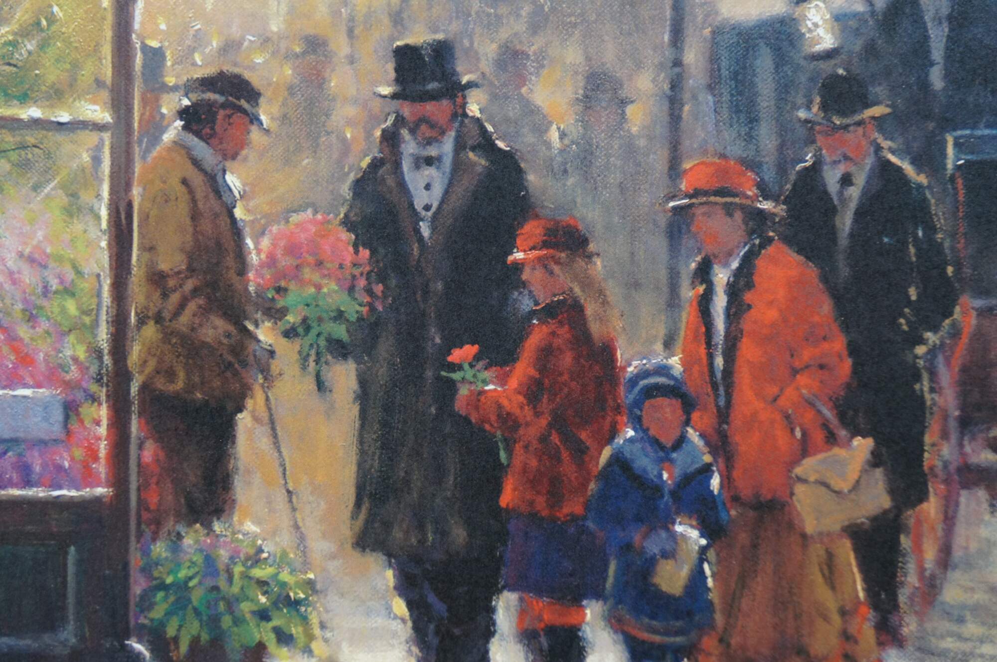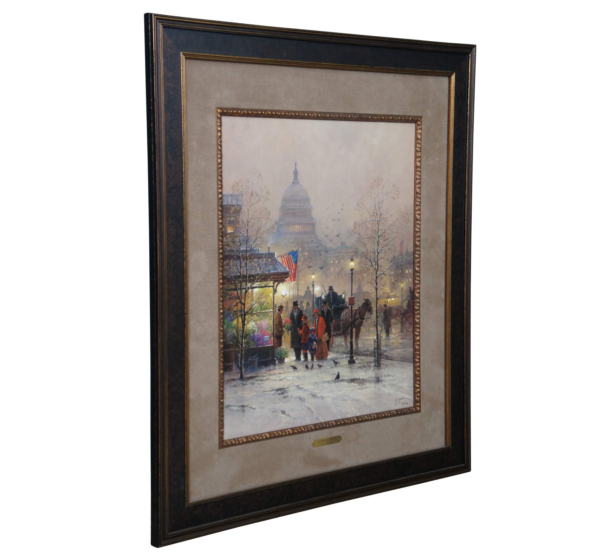 Vintage limited edition print showing Victorian era figures at a flower shop with horse and carriage in the street below the Capitol building, titled “A Nation Blessed” by G. Harvey. Issued in 1997 by Somerset House Publishing, signed and numbered 937/1950.