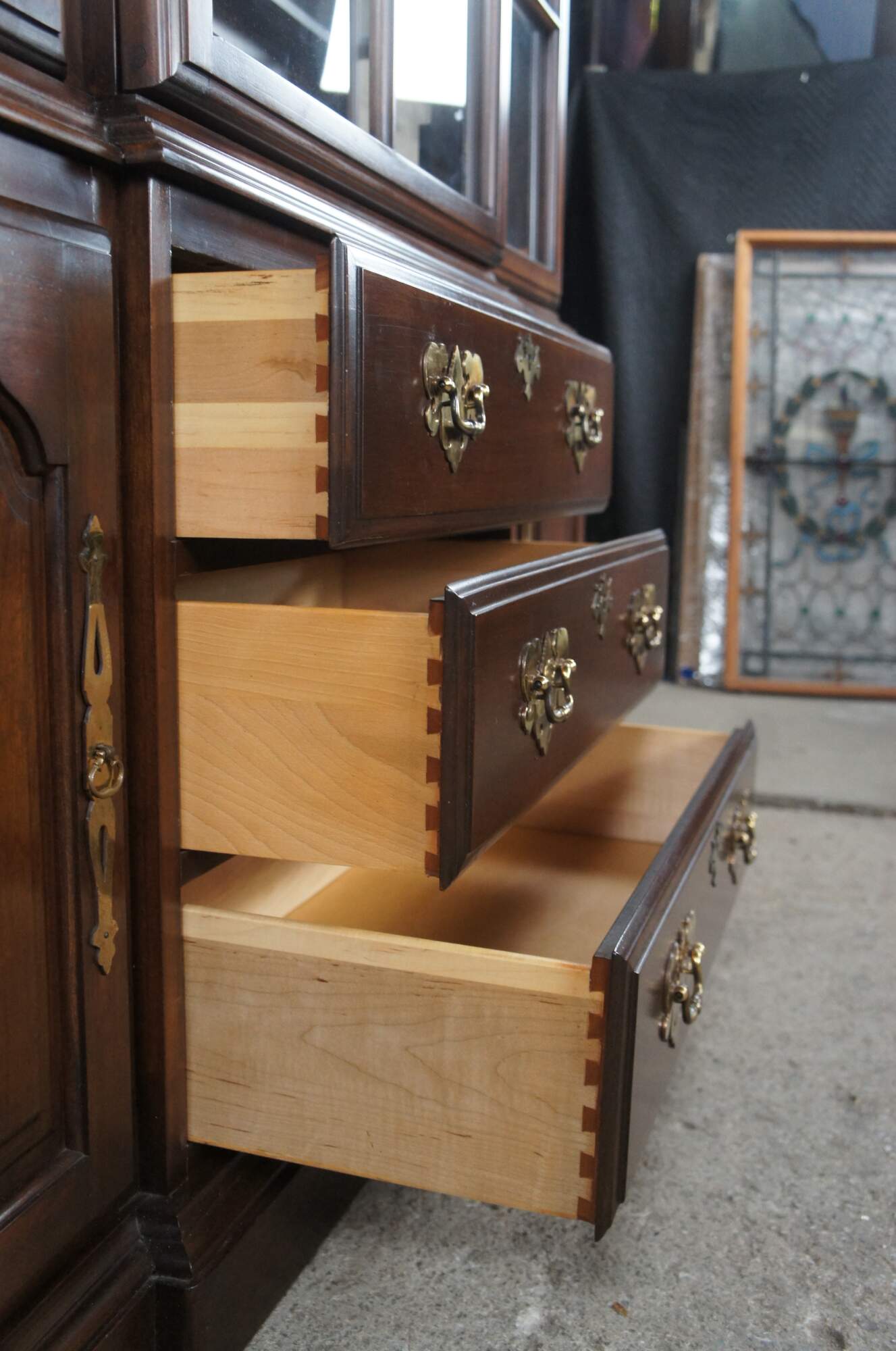 Mid Century Harden Solid Cherry Queen Anne Breakfront China Display Cabinet 1958