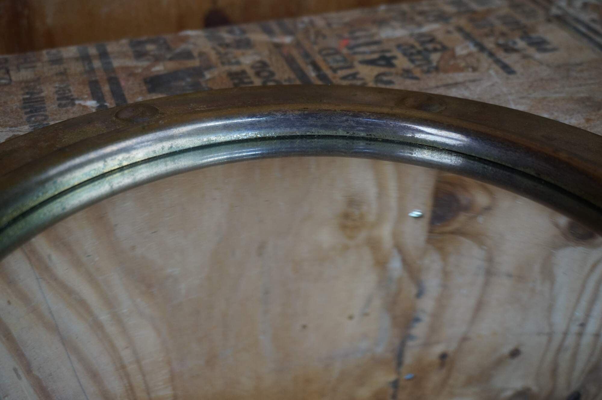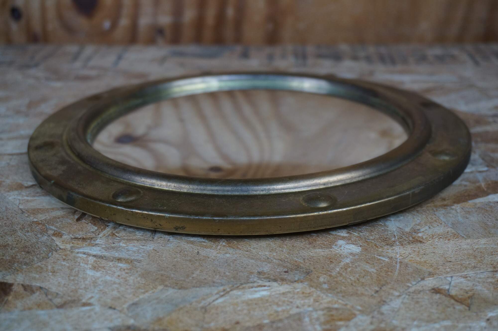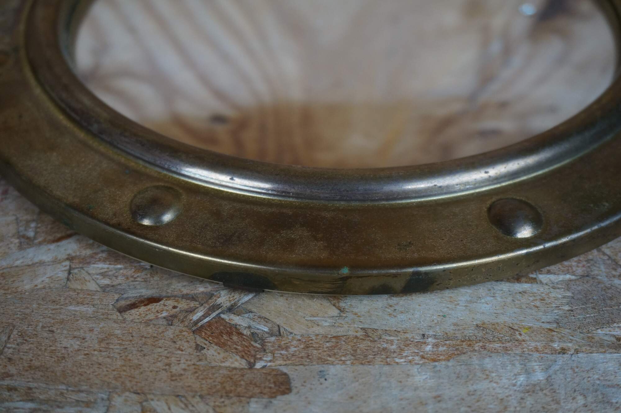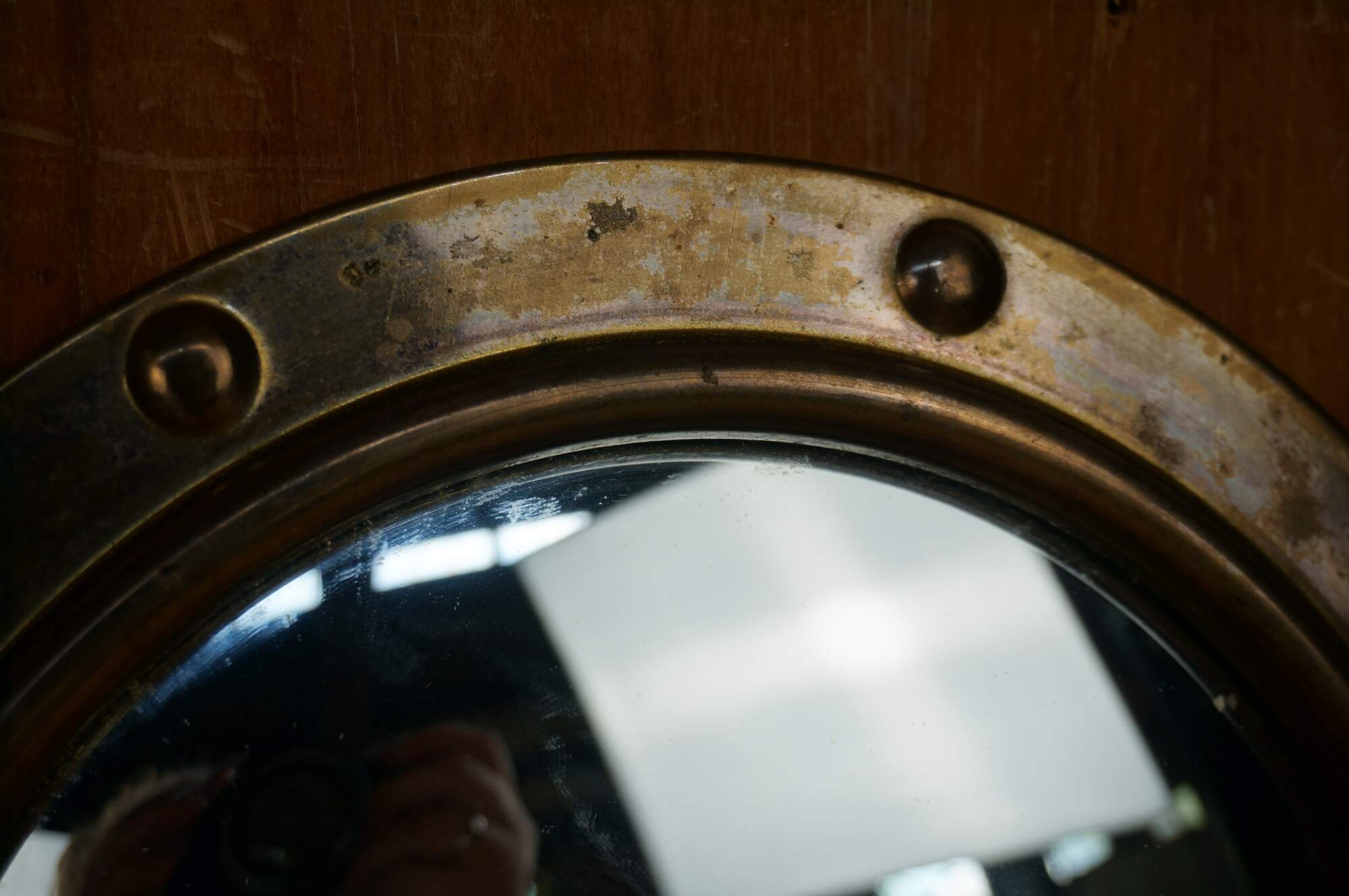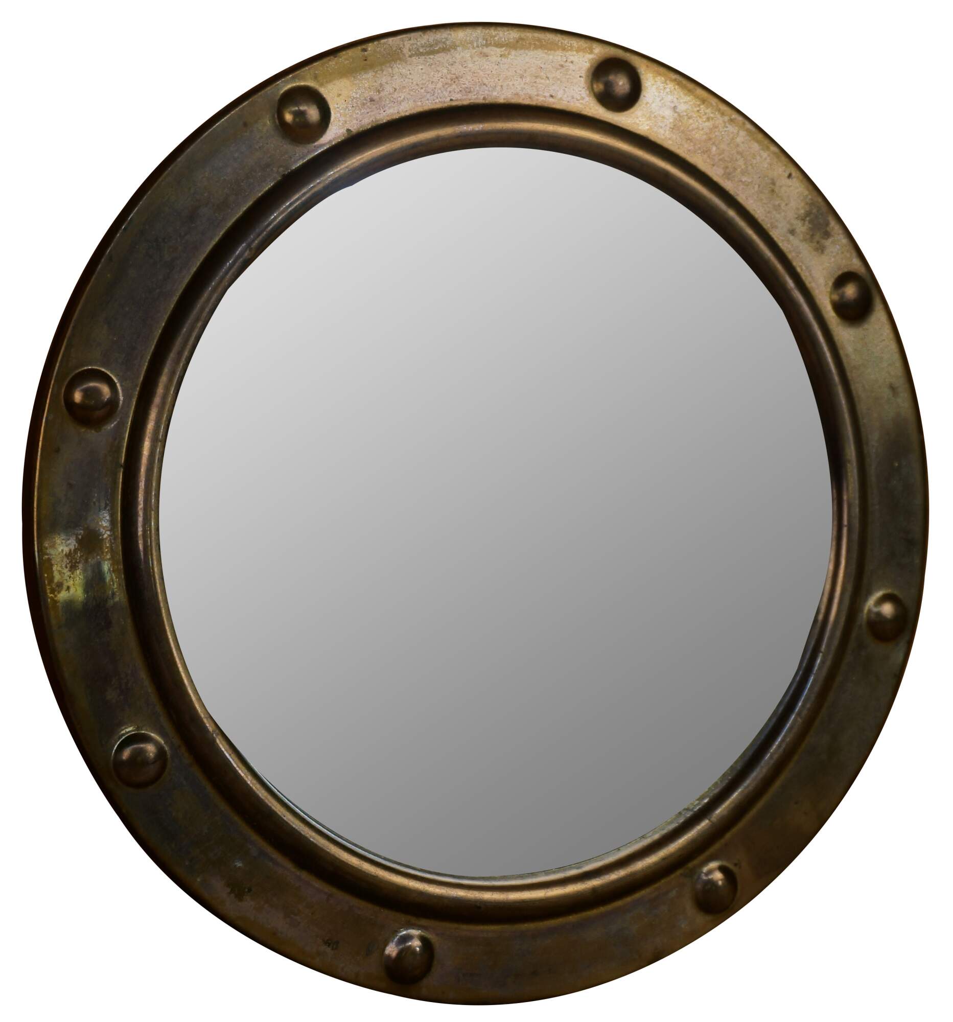 Mid century English Regency convex brass mirror featuring a nutical theme in the shape of a ship port hole.