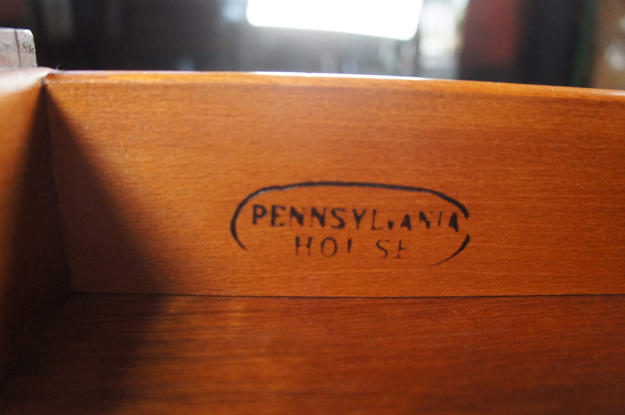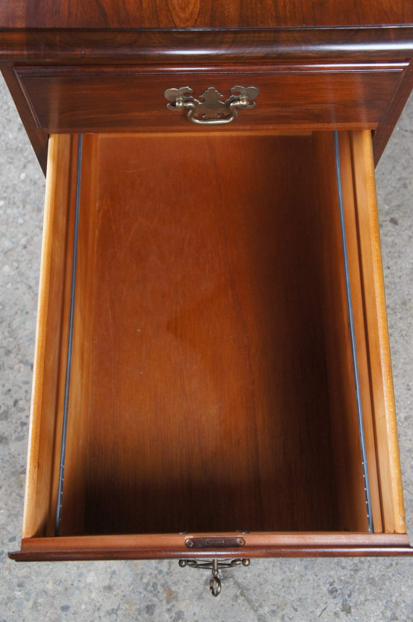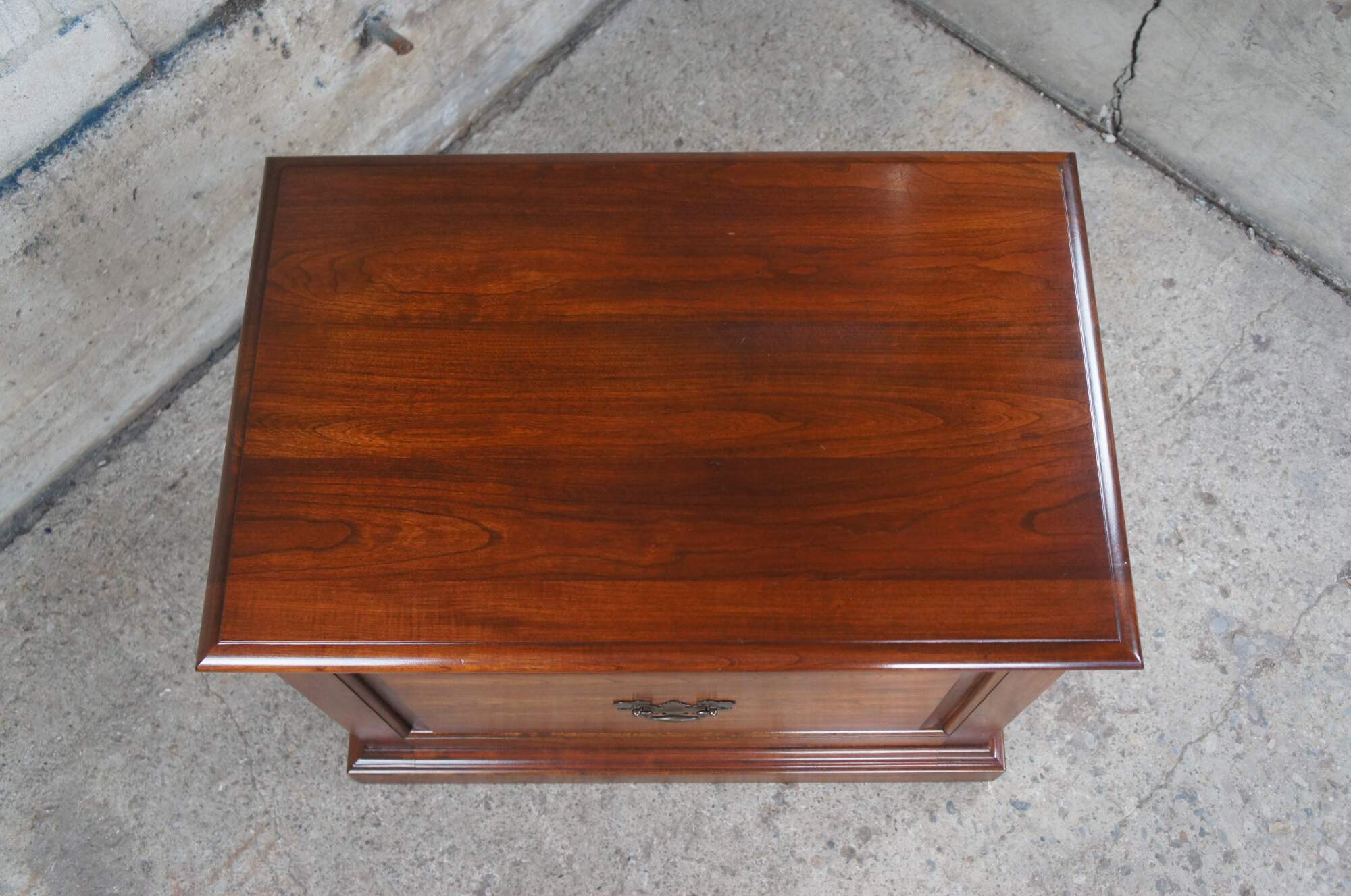 An exceptional and rare pair of side table or file cabinets by Pennsylvania House, circa 1960s. Made from solid cherry with oak drawer construction in Chippendale or Georgian manner. Features a upper drawer and large lower file drawer (dovetailed) for document storage. A versatile pair that can be used in an office, living space or bedroom.
