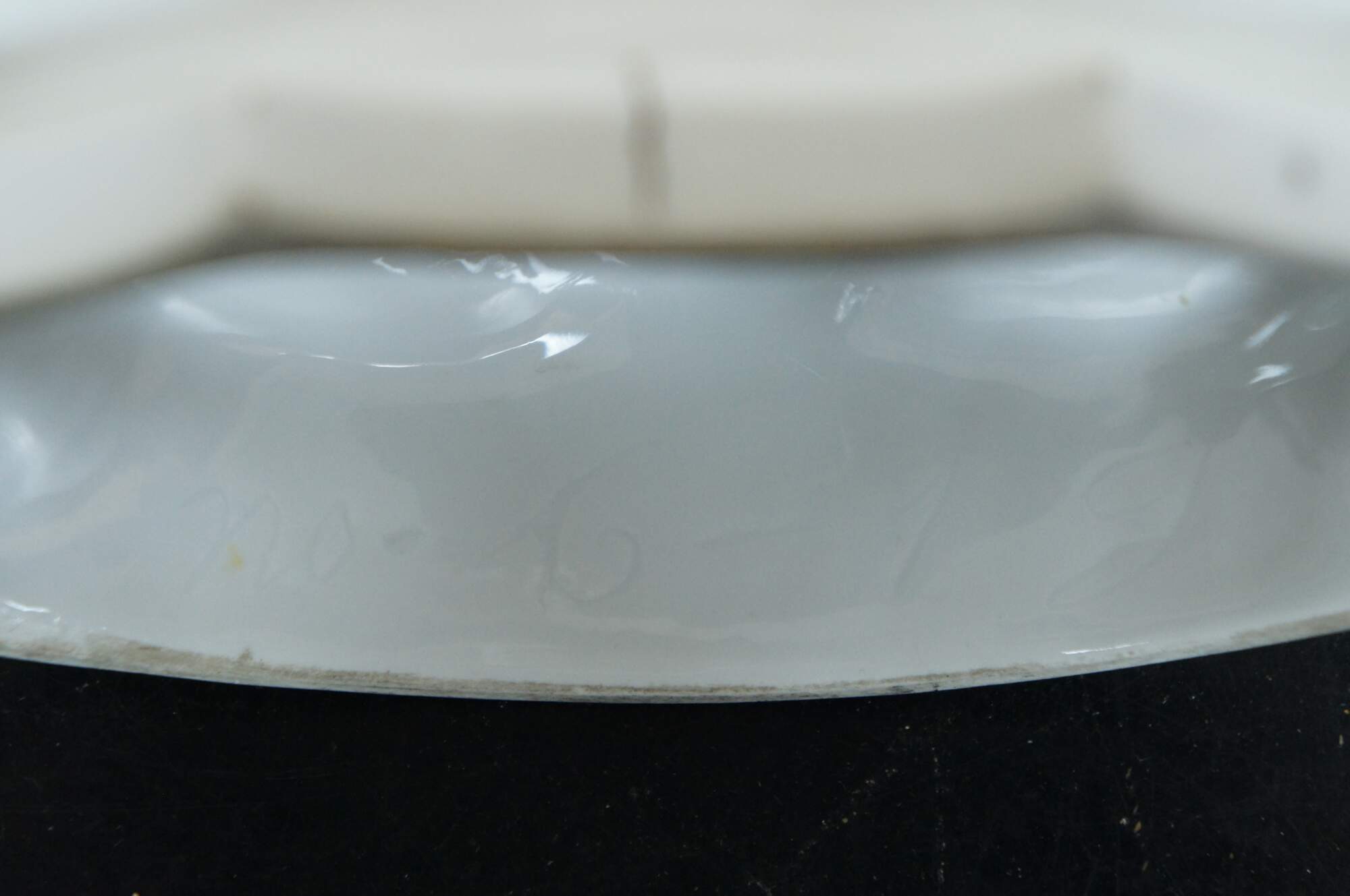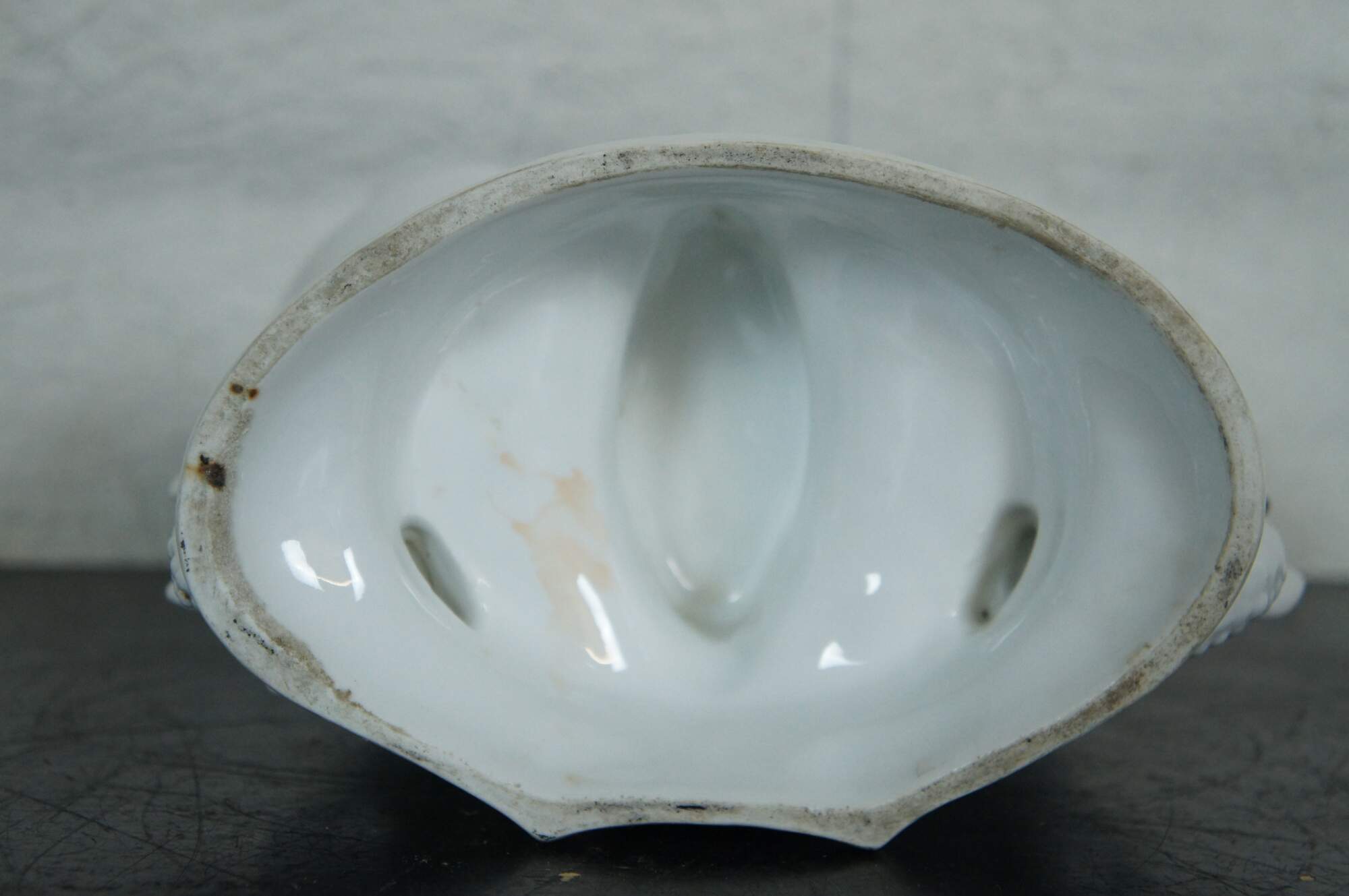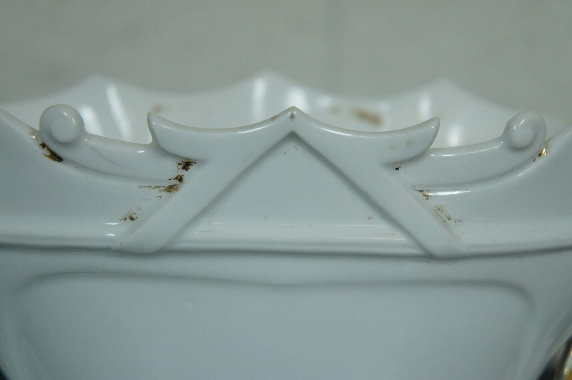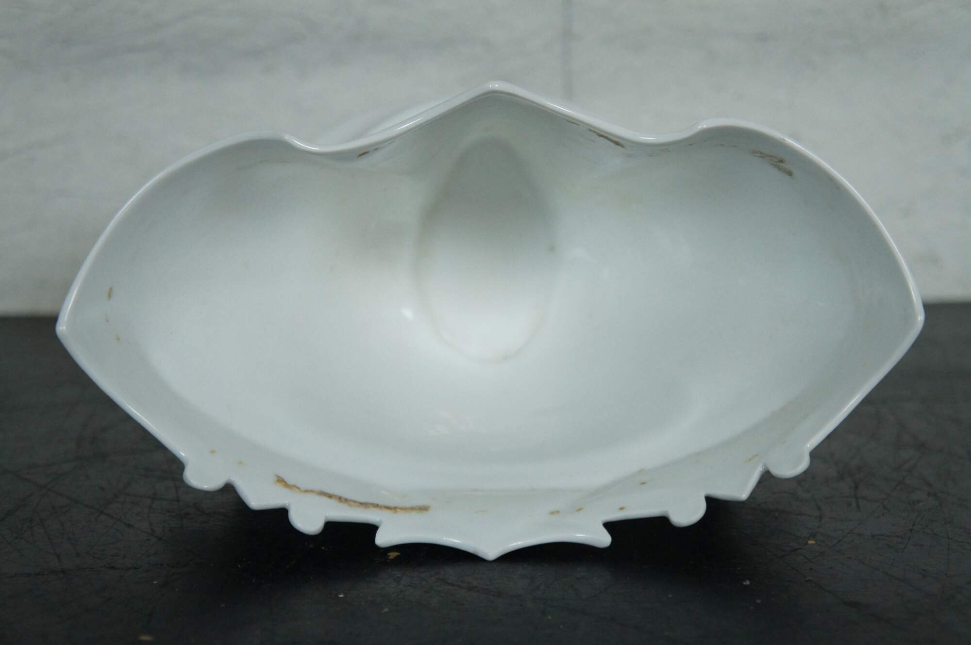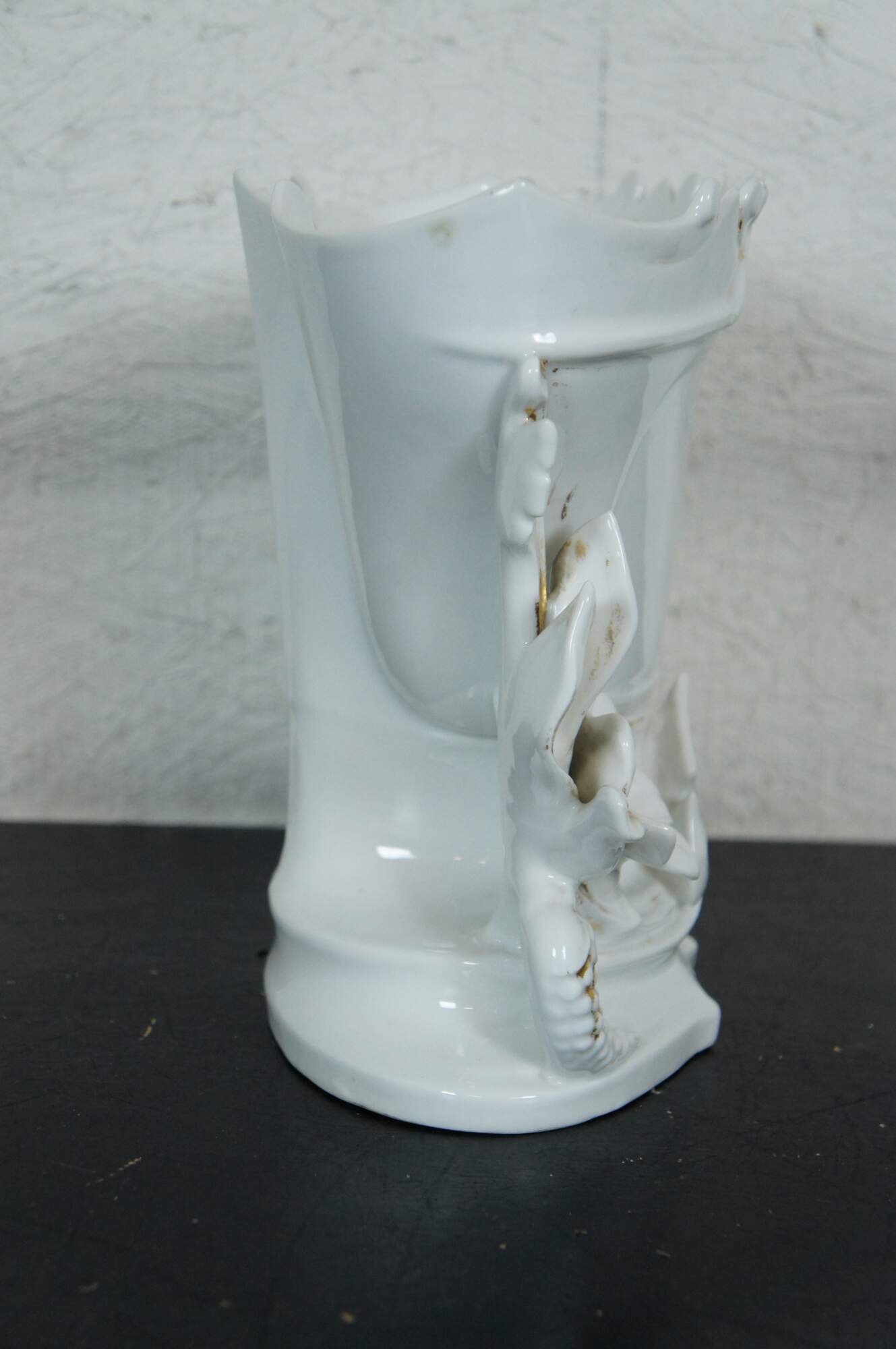 Antique French Vieux Old Paris white porcelain centerpiece vase with a footed goblet or trophy life form with pieced floral accents and scalloped rim.