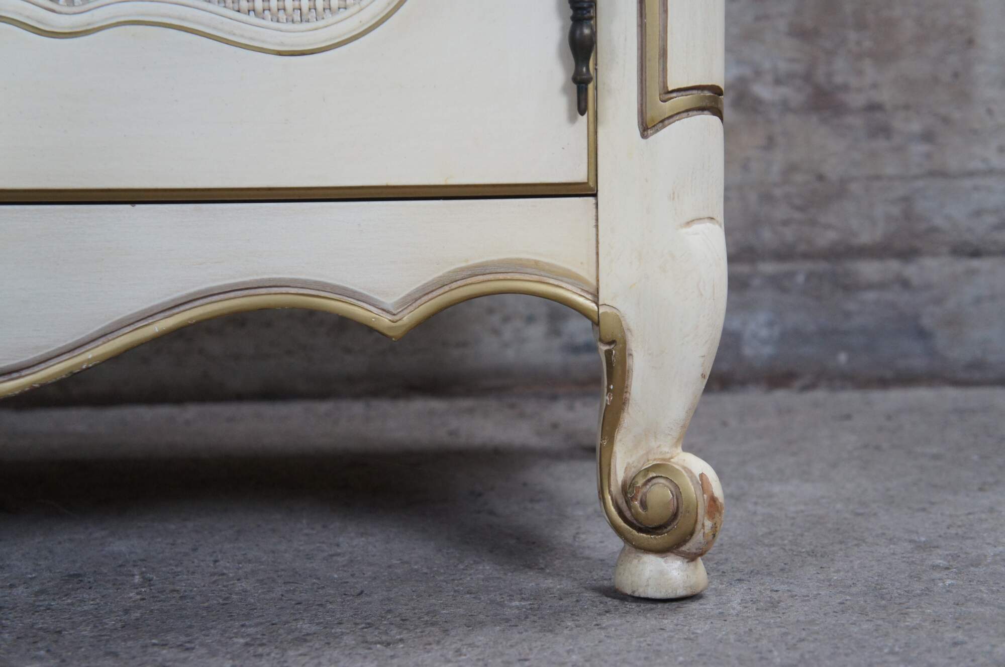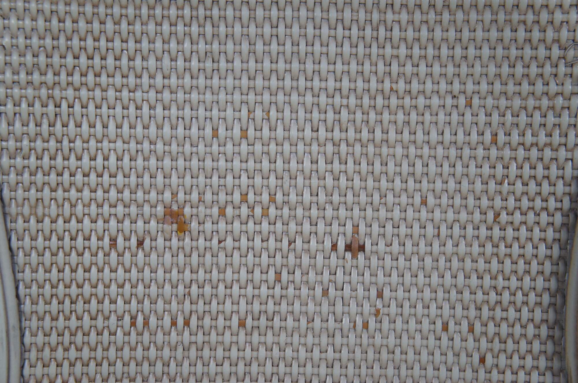 Good Vintage Condition, some paint wear from age, most notable to the rattan on the left door and edges of feet.