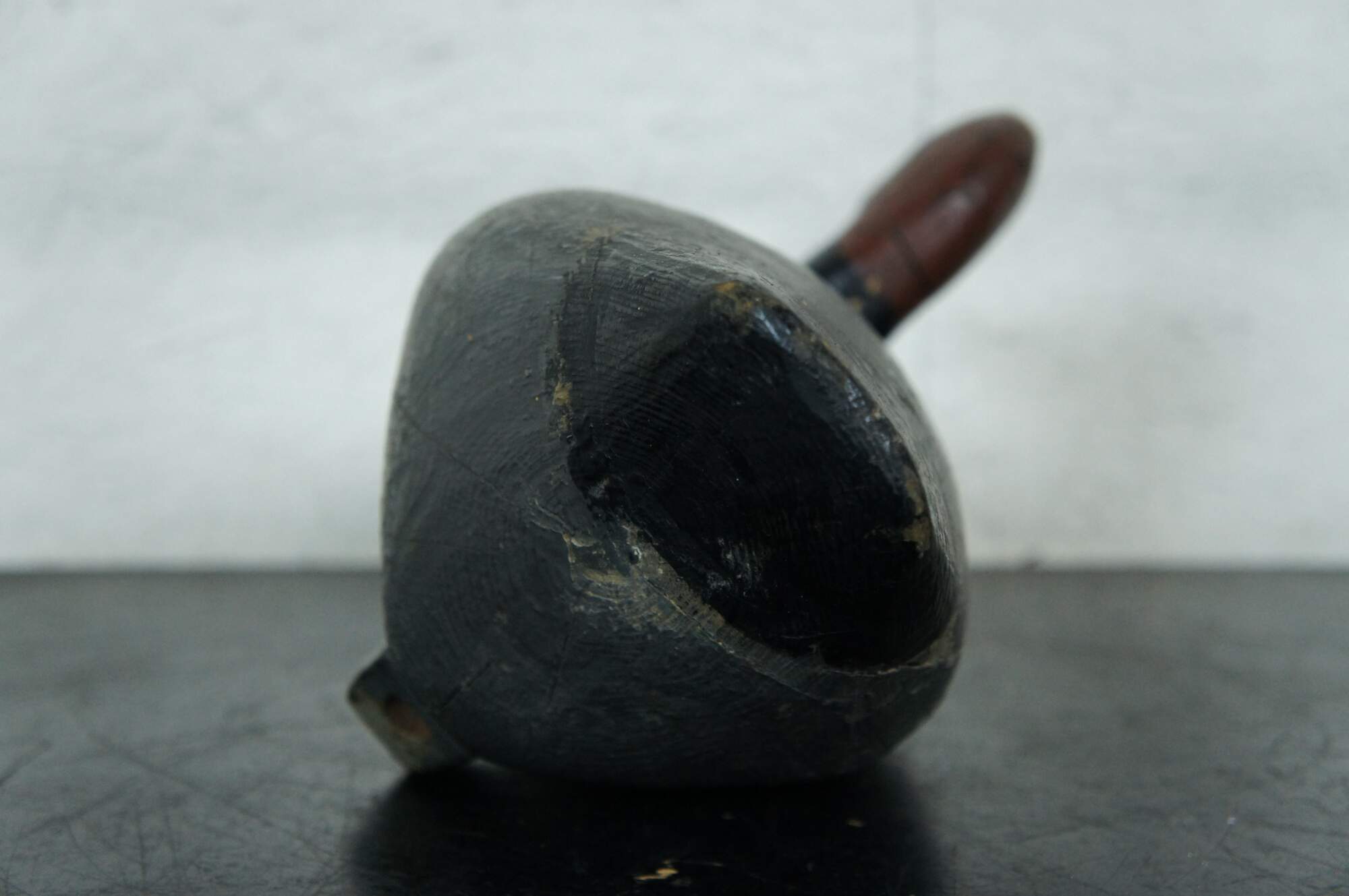 Antique carved duck decoy pull toy featuring a weight on the back of the base for balance in the water. Marked Poplar Branch, NC on the underside.