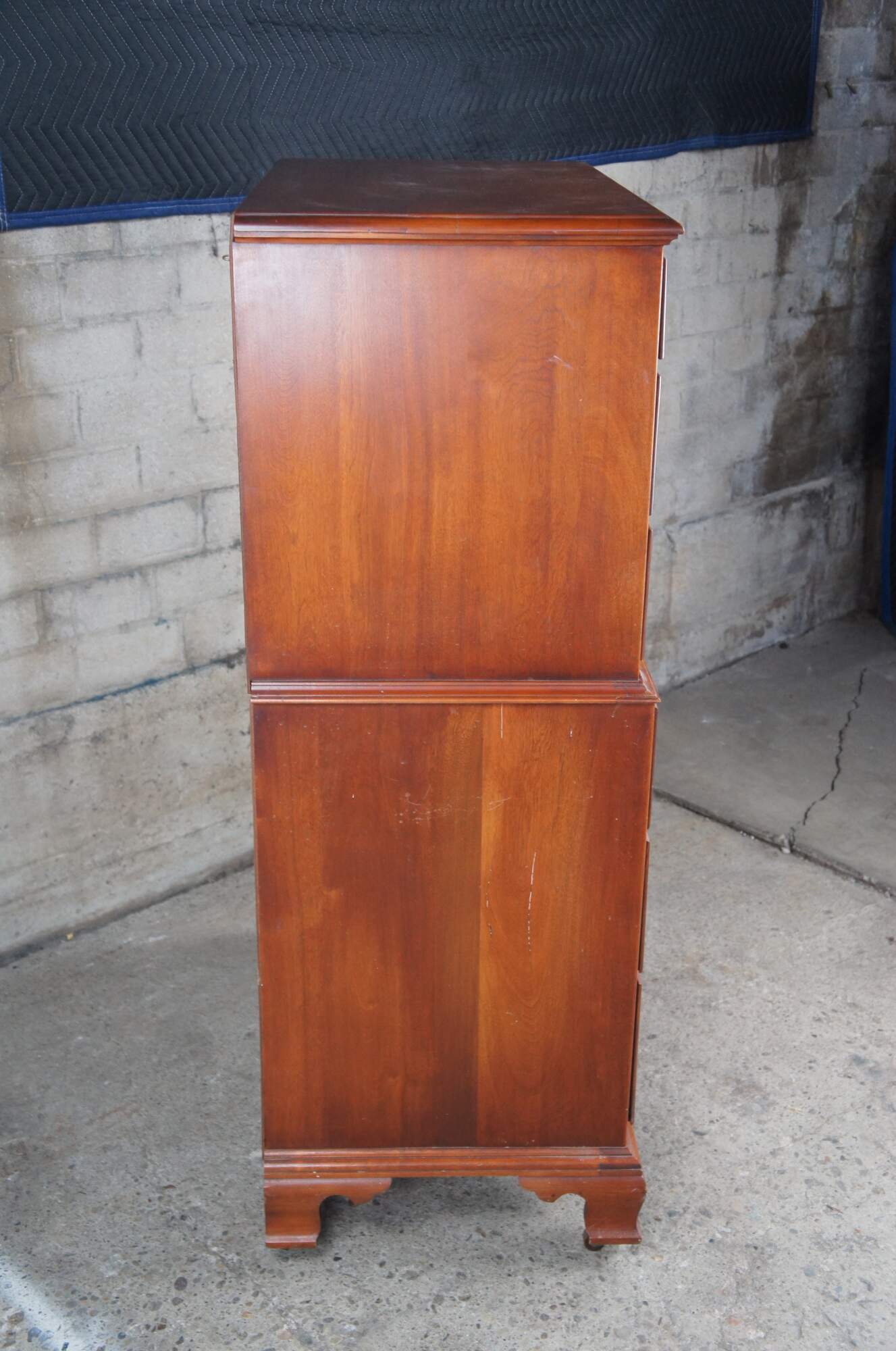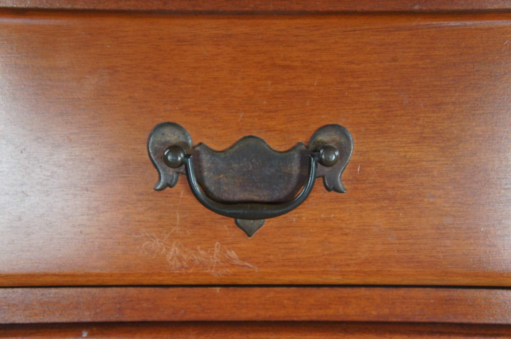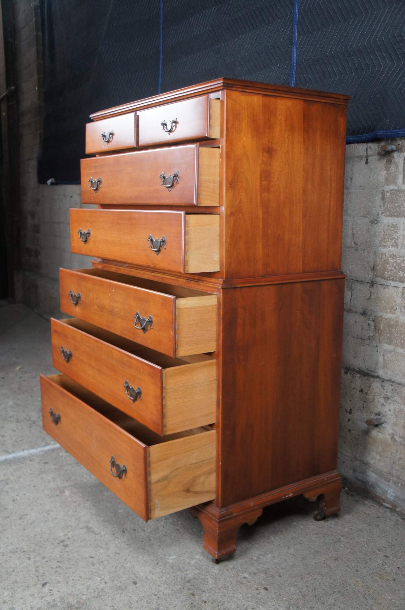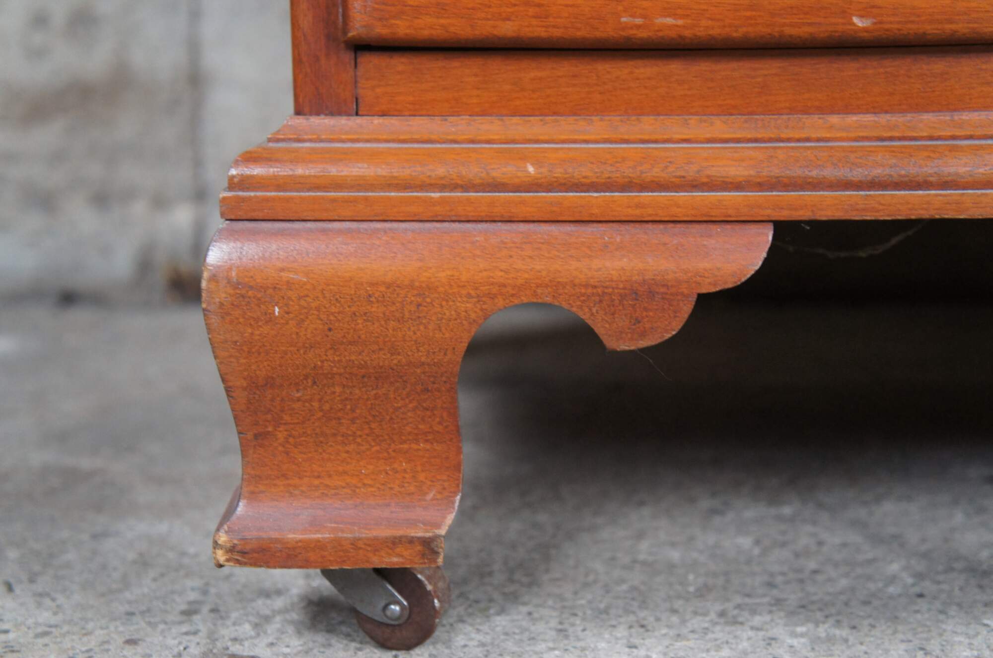 Antique Lammerts Furniture tallboy chest of drawers or dresser. Made of maple featuring seven drawers with Chippendale styling, brass hardware and bracket feet with castors.