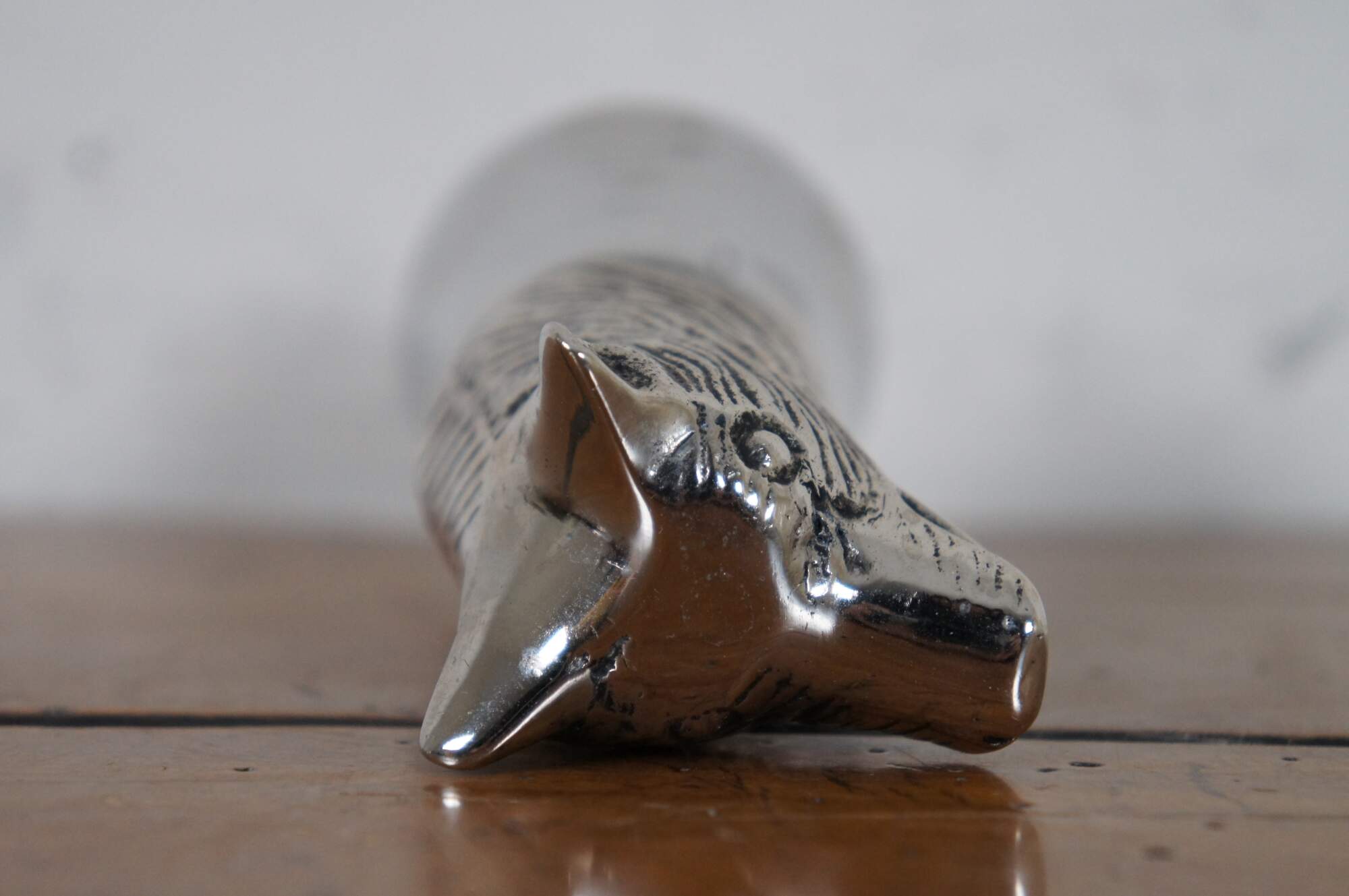 Vintage mid 20th century silver plate bar jigger / shot glass with a wolf’s head base.