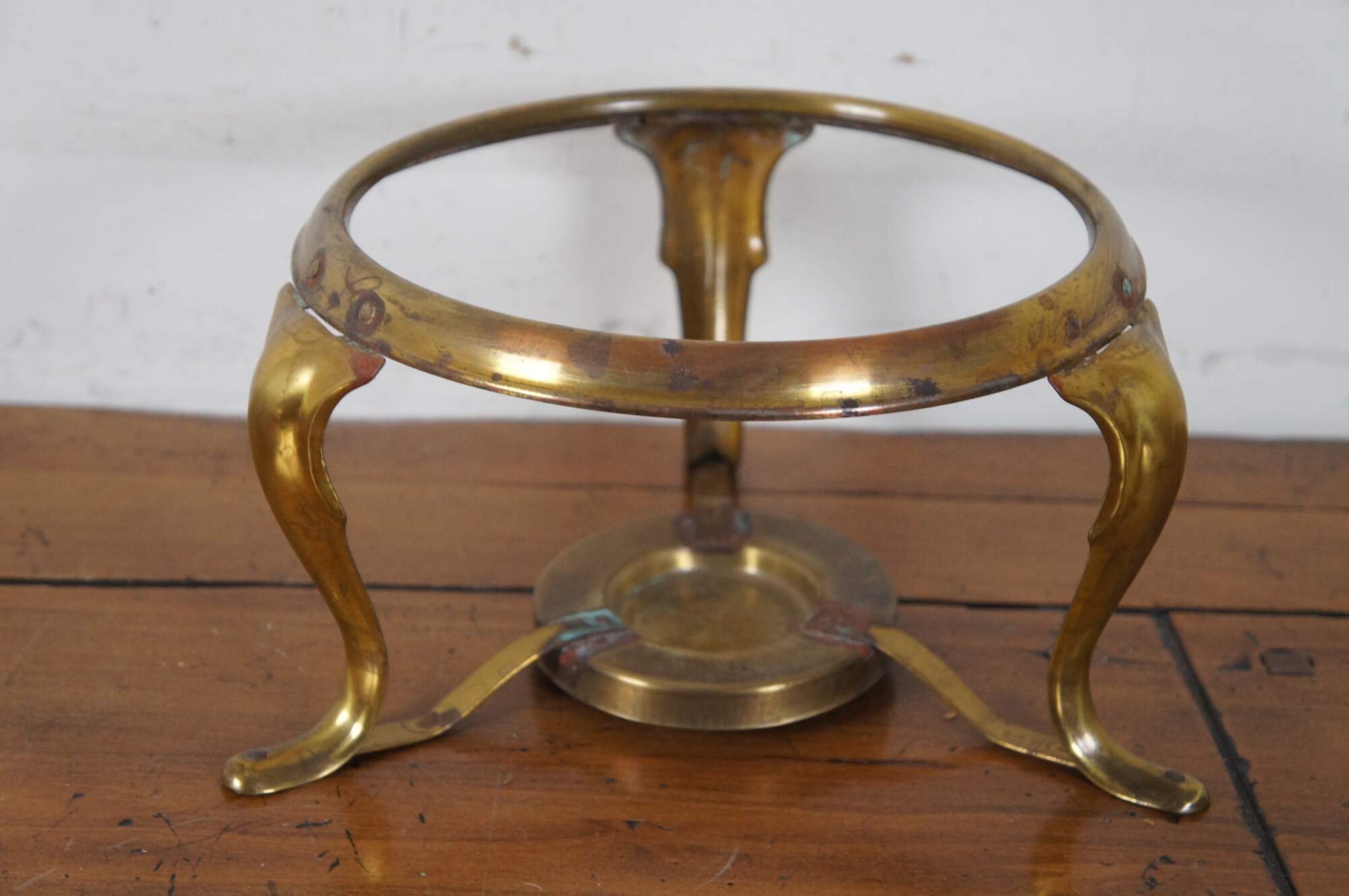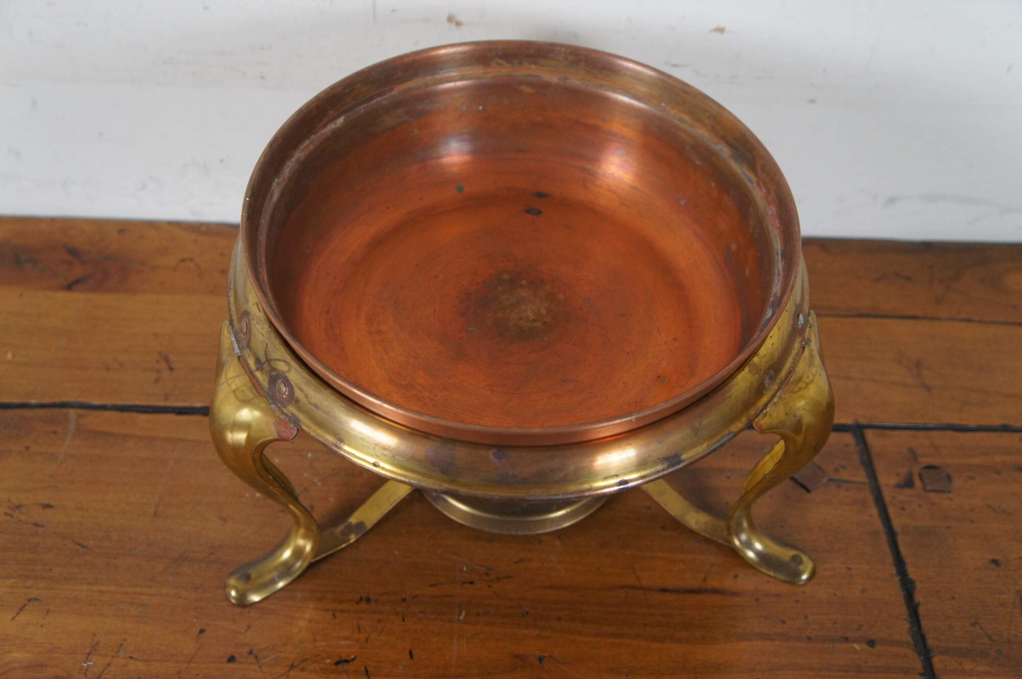 Vintage five piece copper and brass chafing dish / warming pan set with turned wood handle.